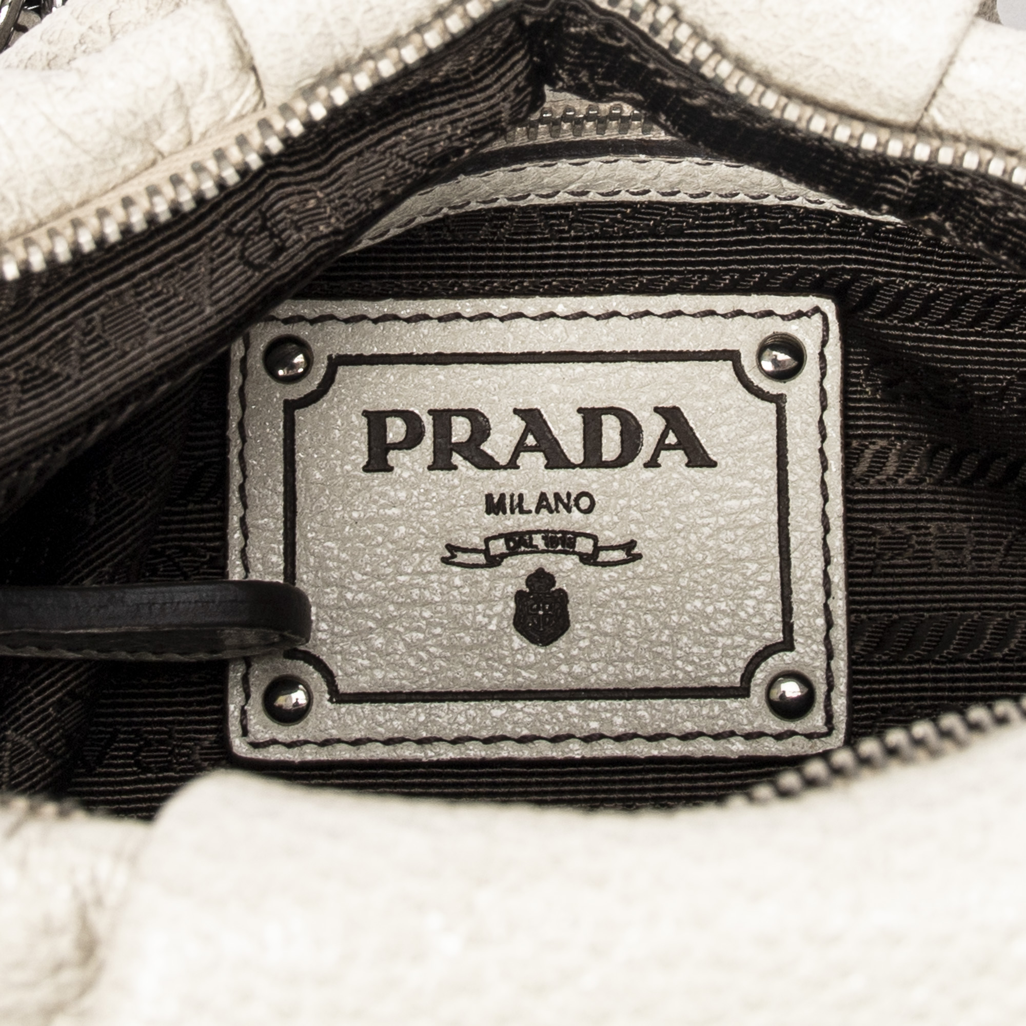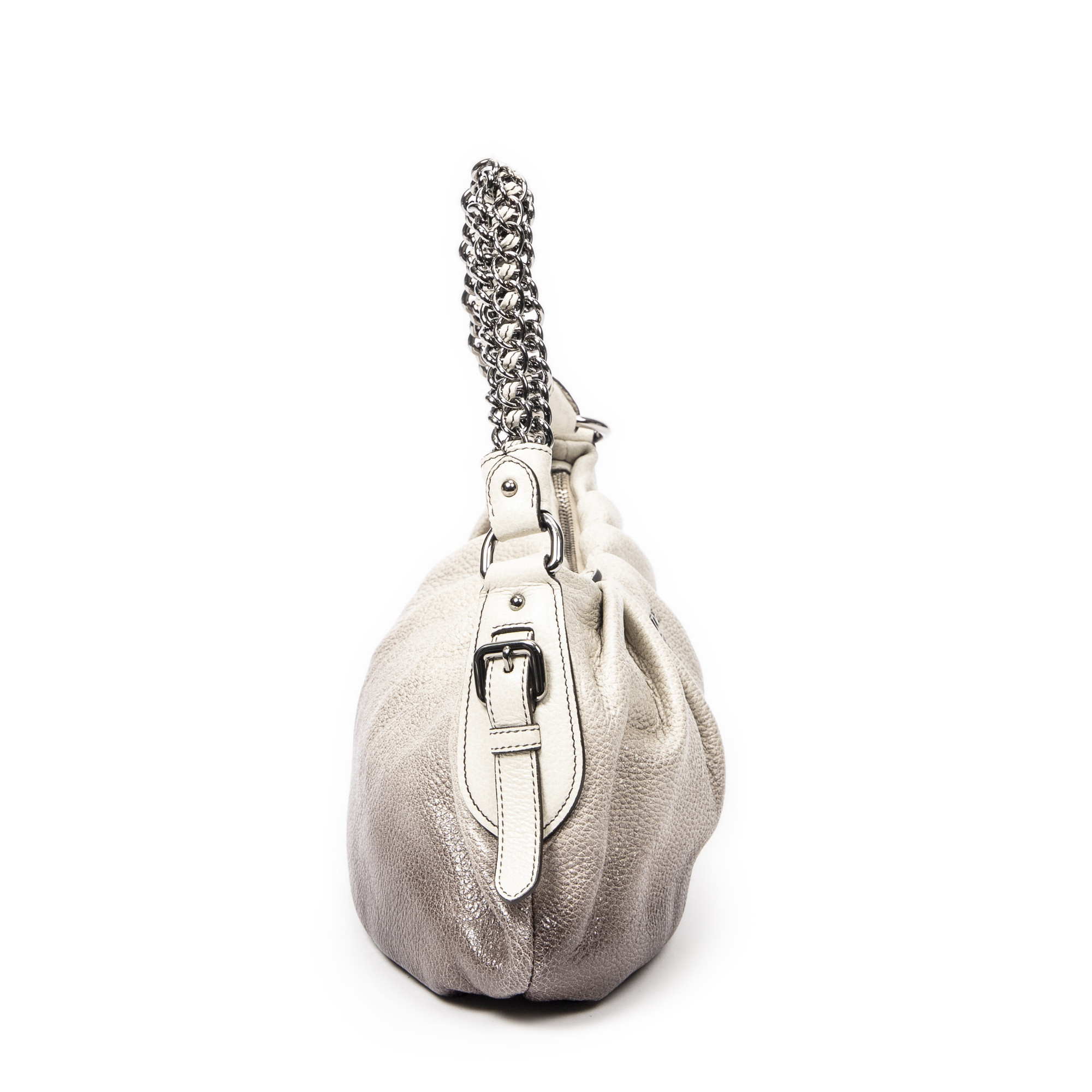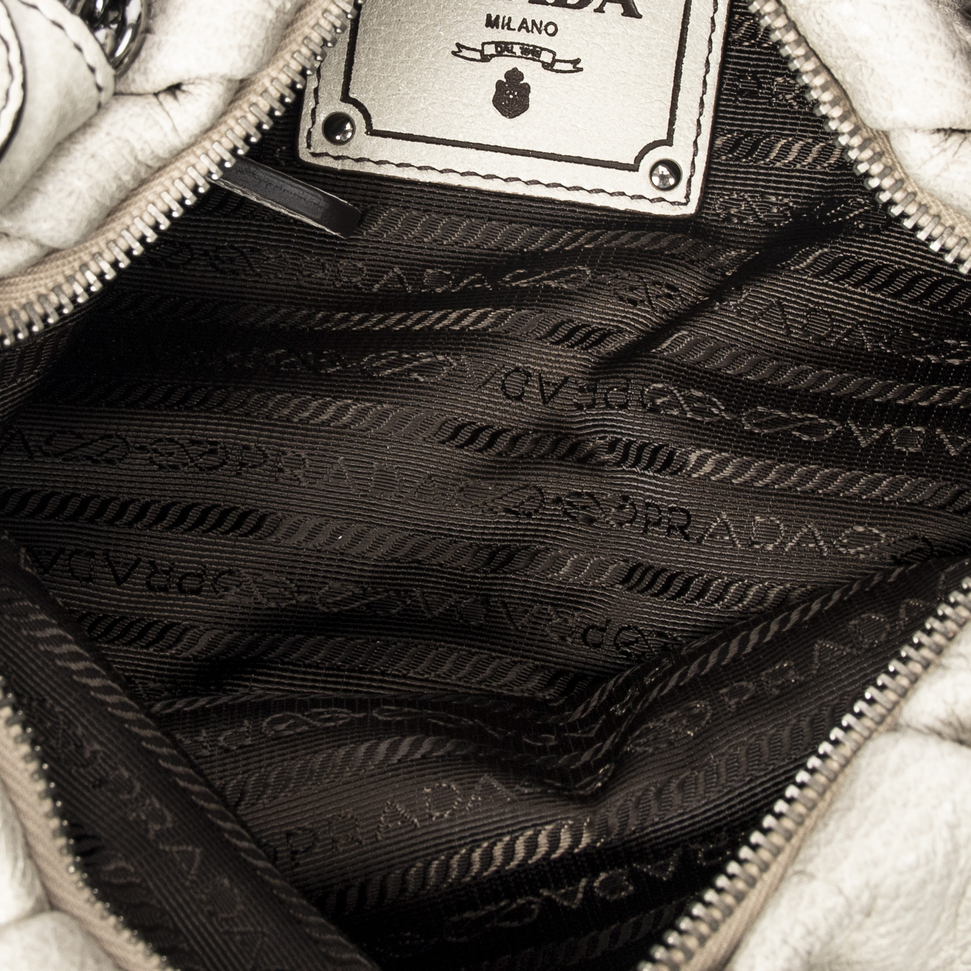 Prada Sac à bandoulière Ombre Pleated Chain Strap en Blanc/Gris et Argent. Le produit est en Excellent état (A).
