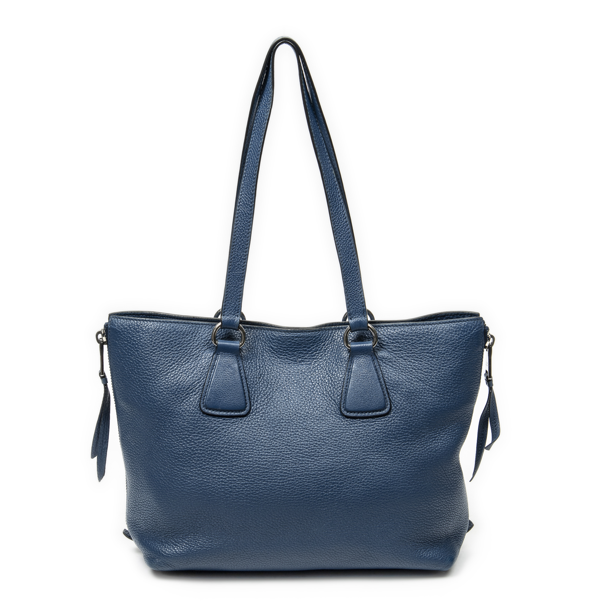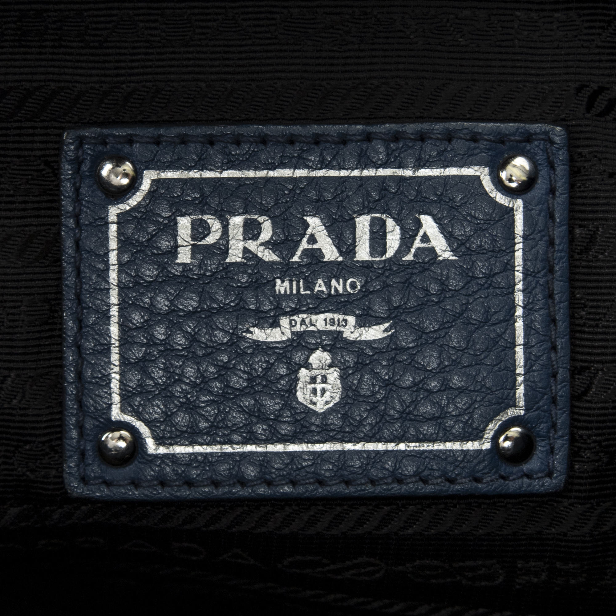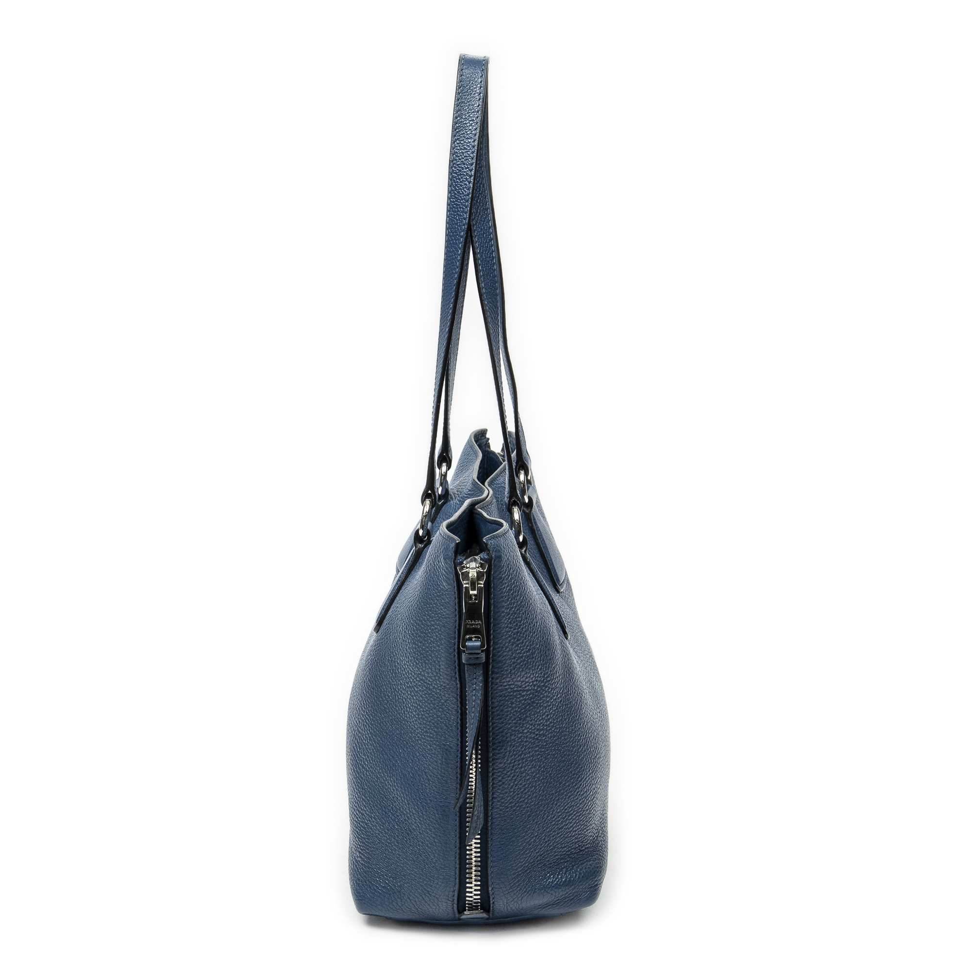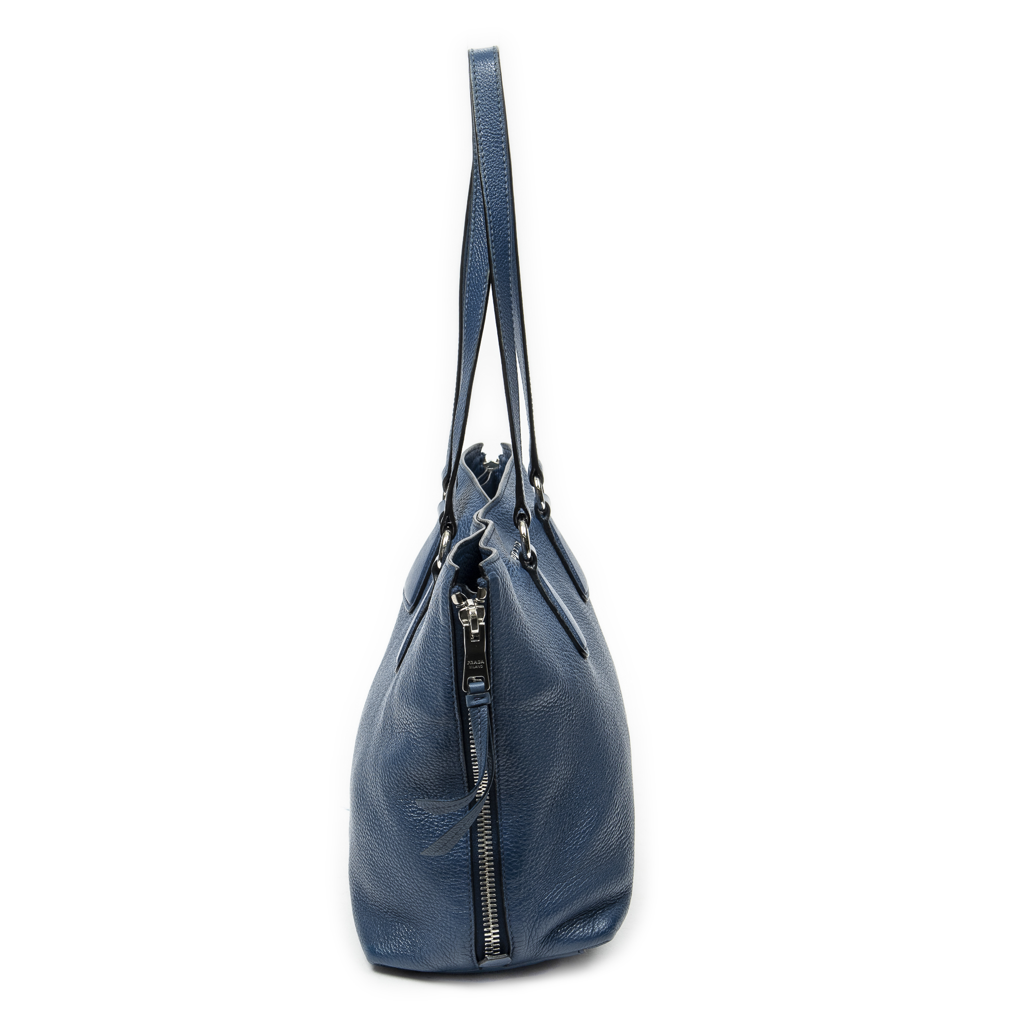 Prada Sac à bandoulière Side Zip Tote en Marine et Argent. Le produit est en Excellent état (A).