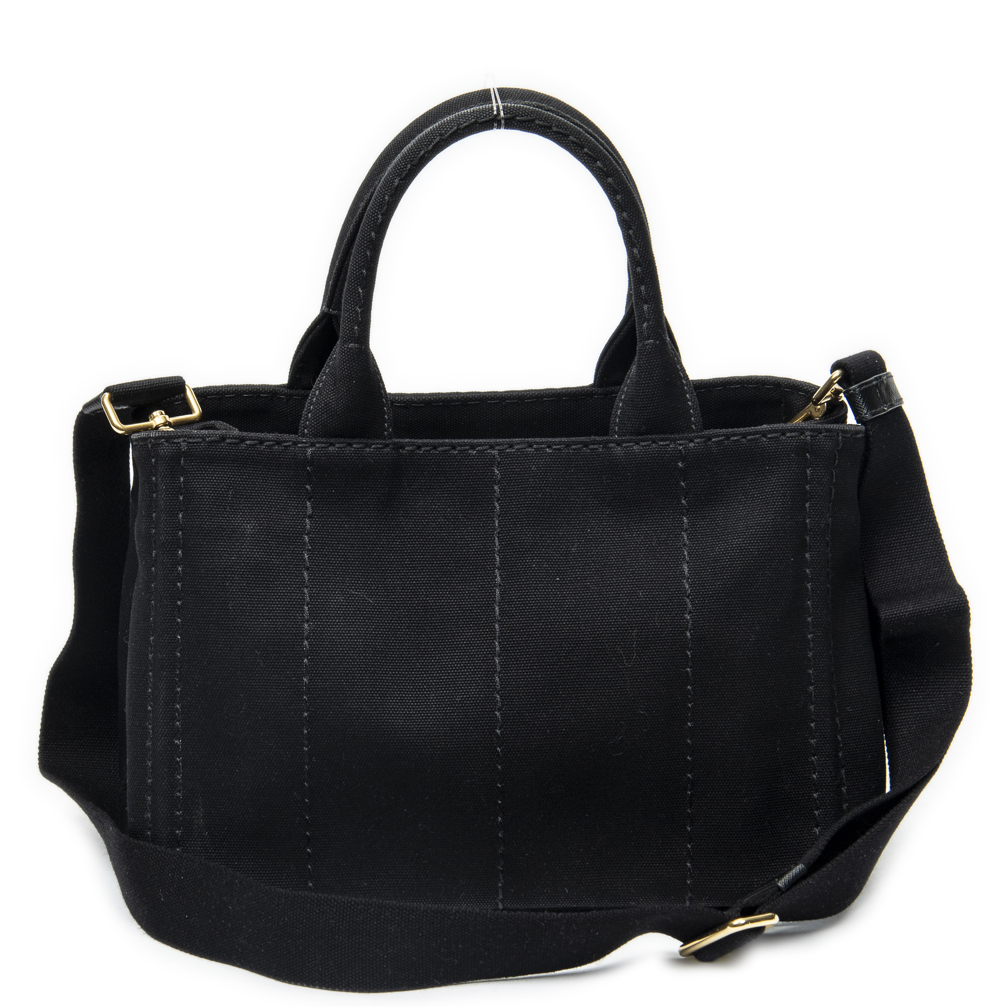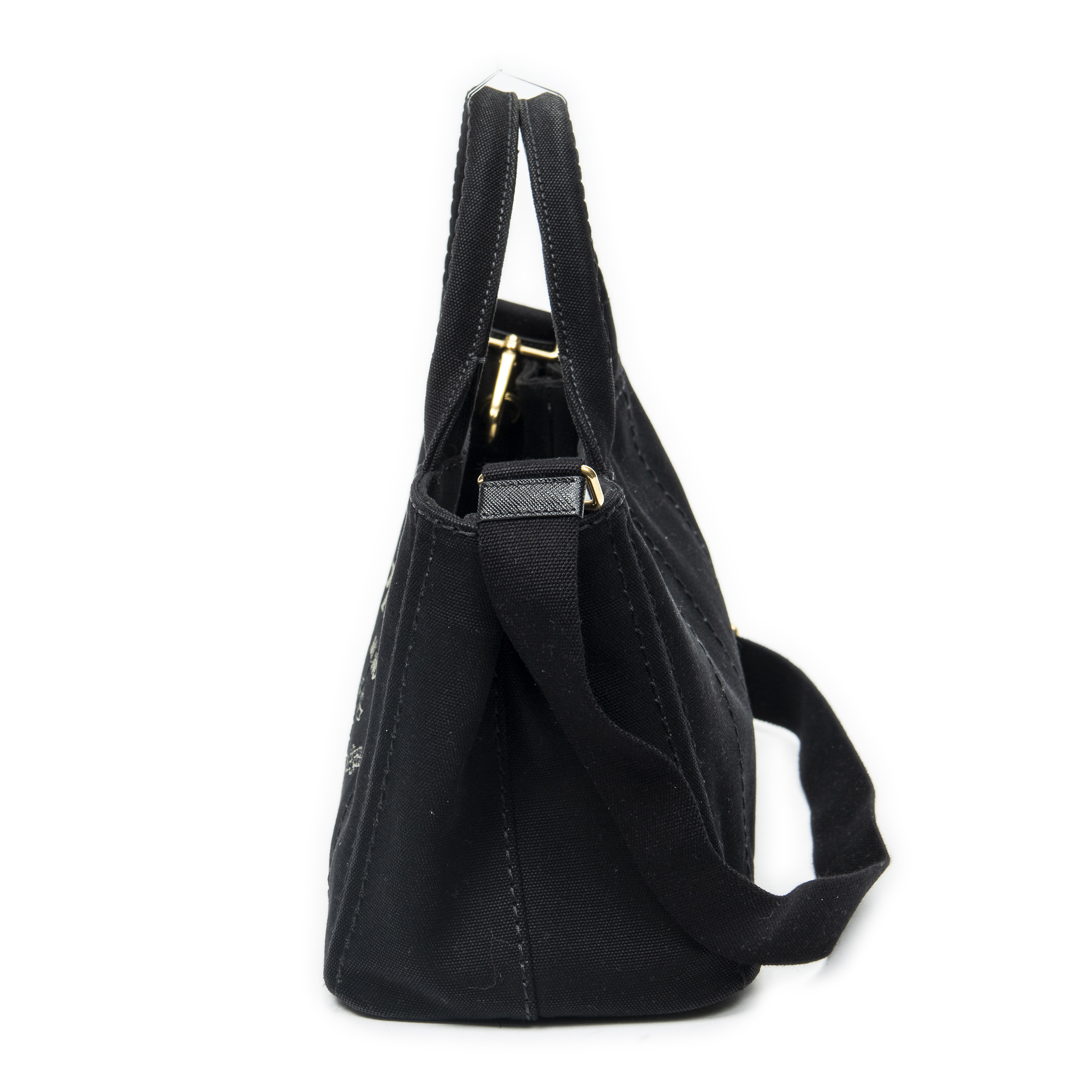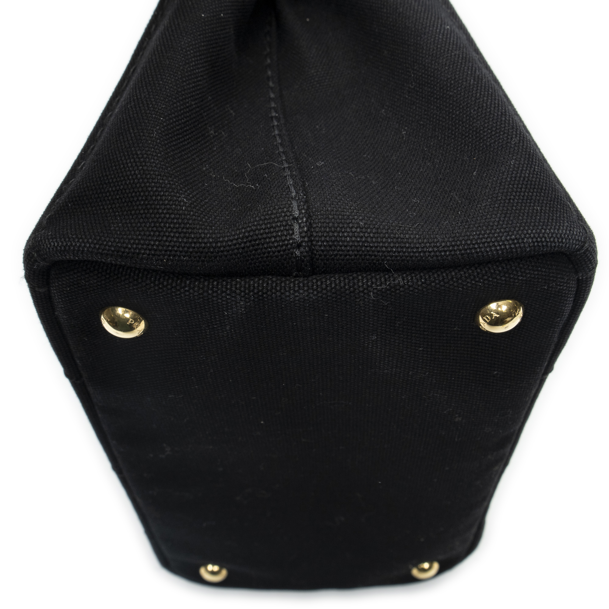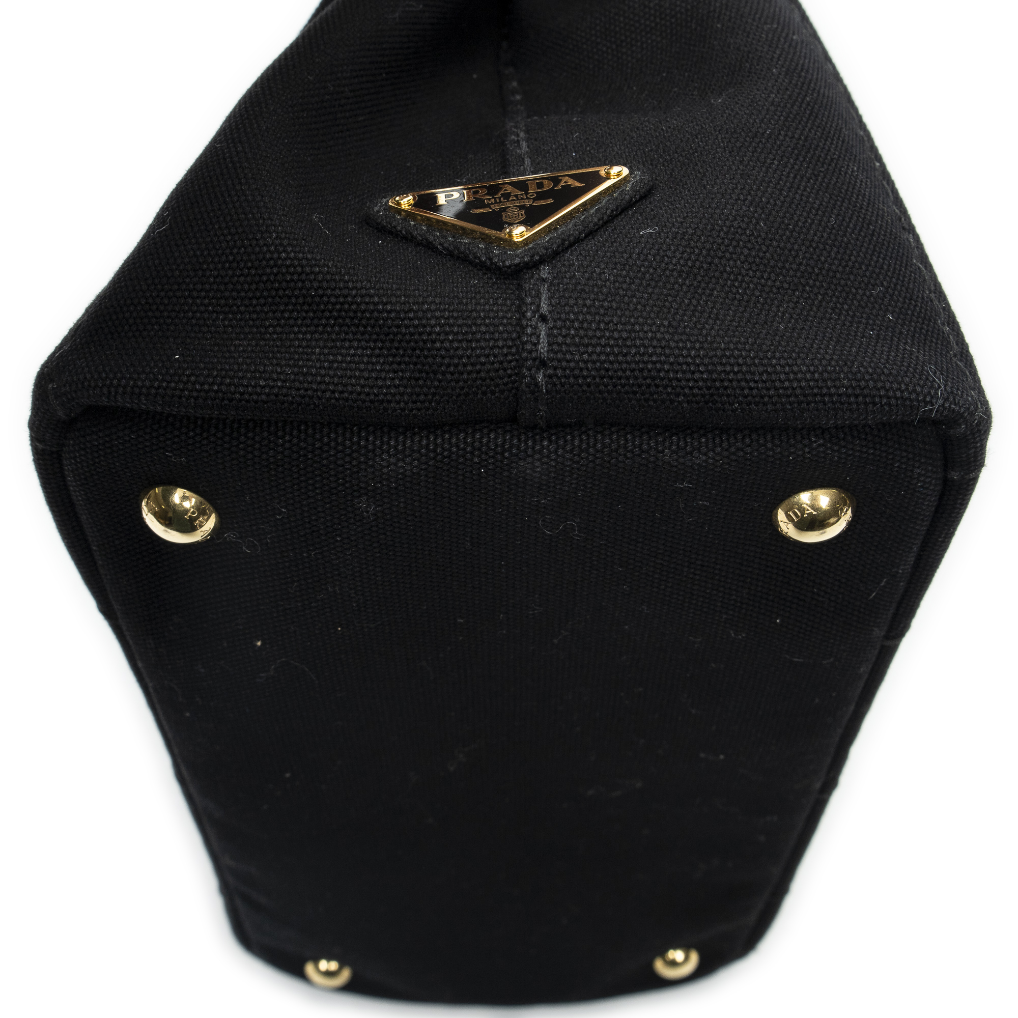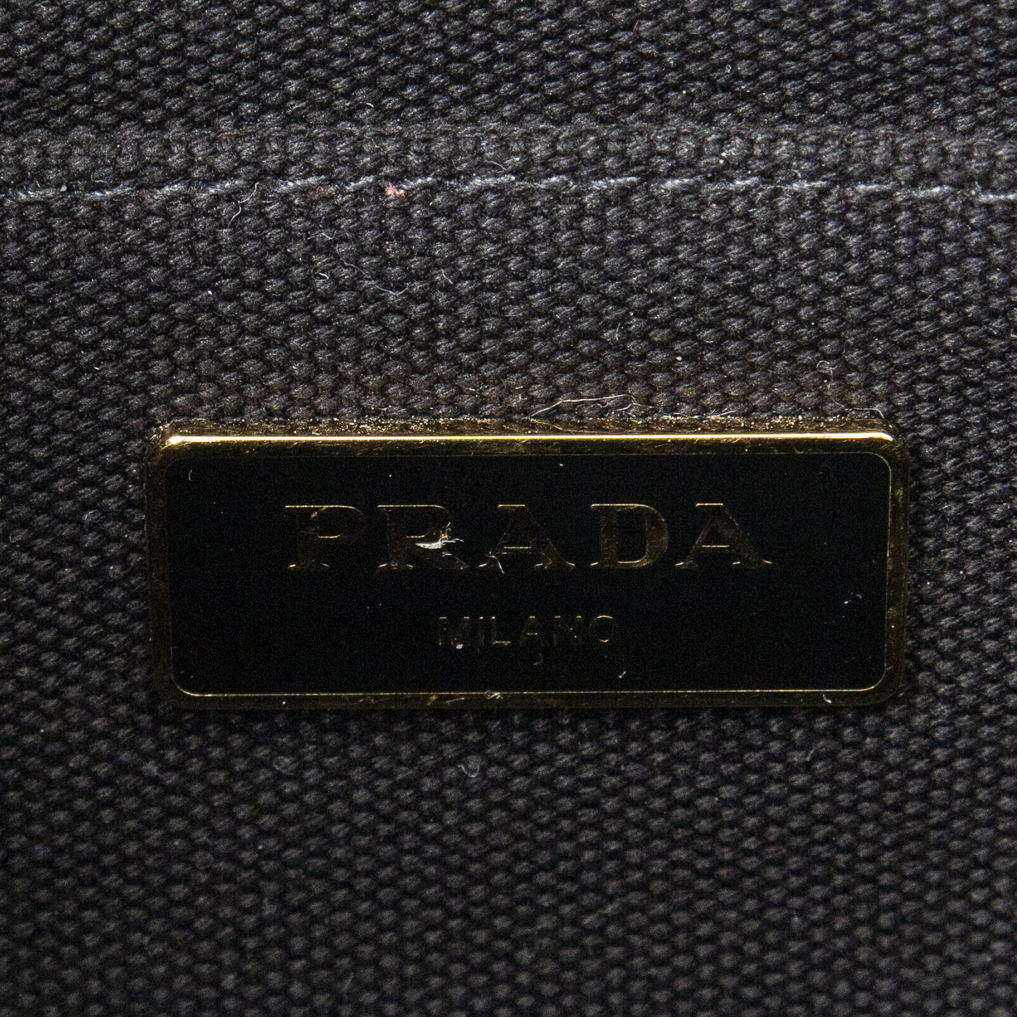 Prada Sac à bandoulière Small Canapa Tote en Black et Gold. Le produit est en Excellent état (A).