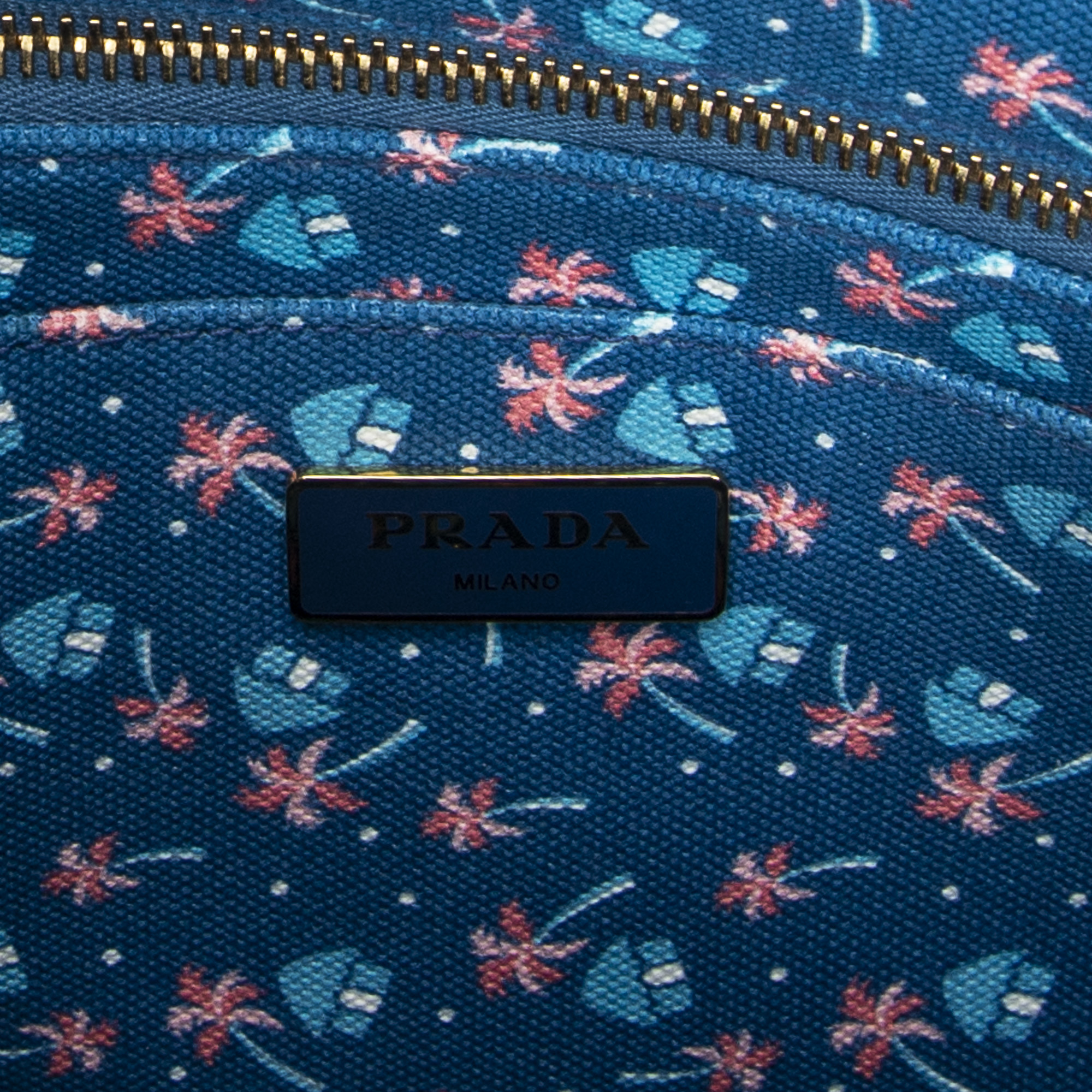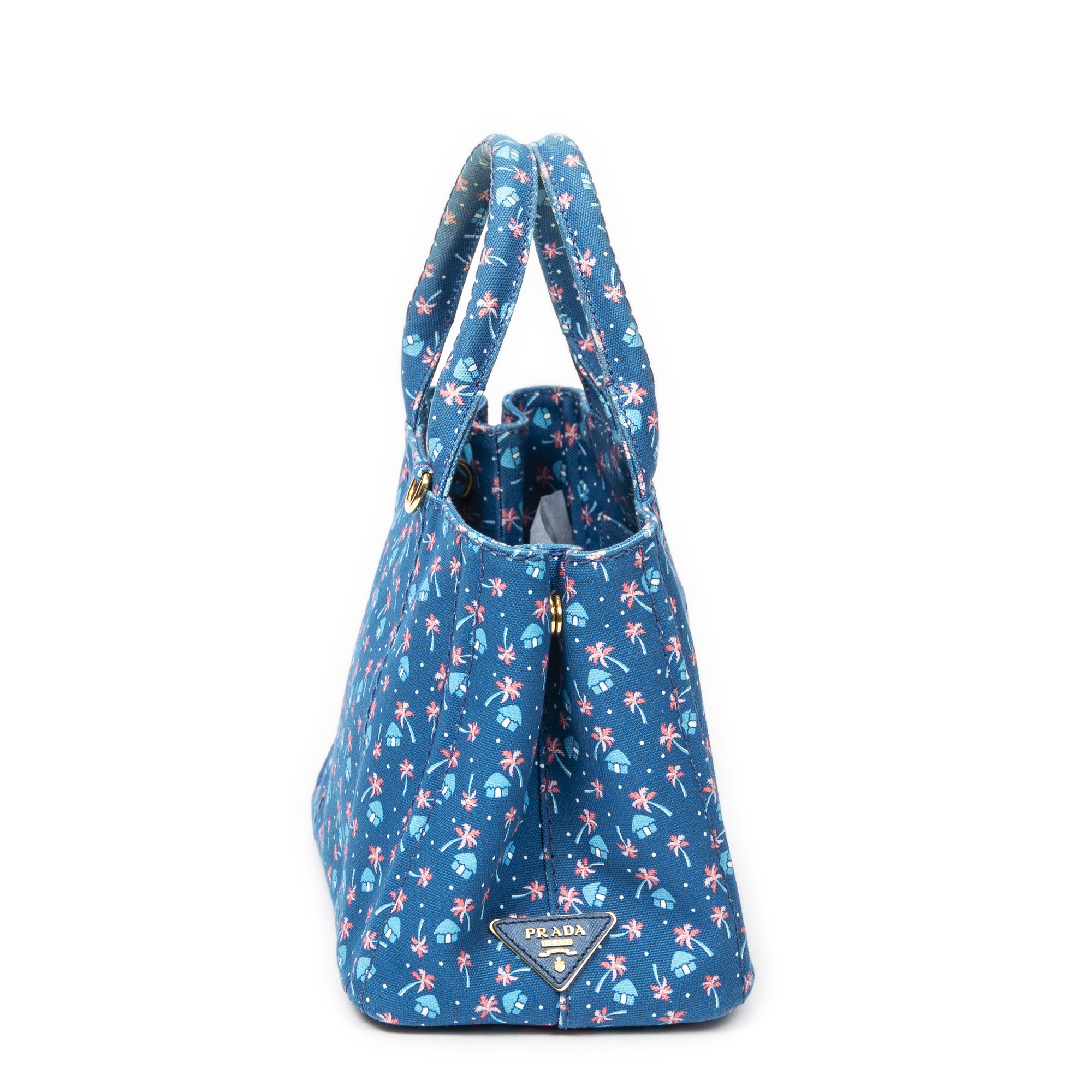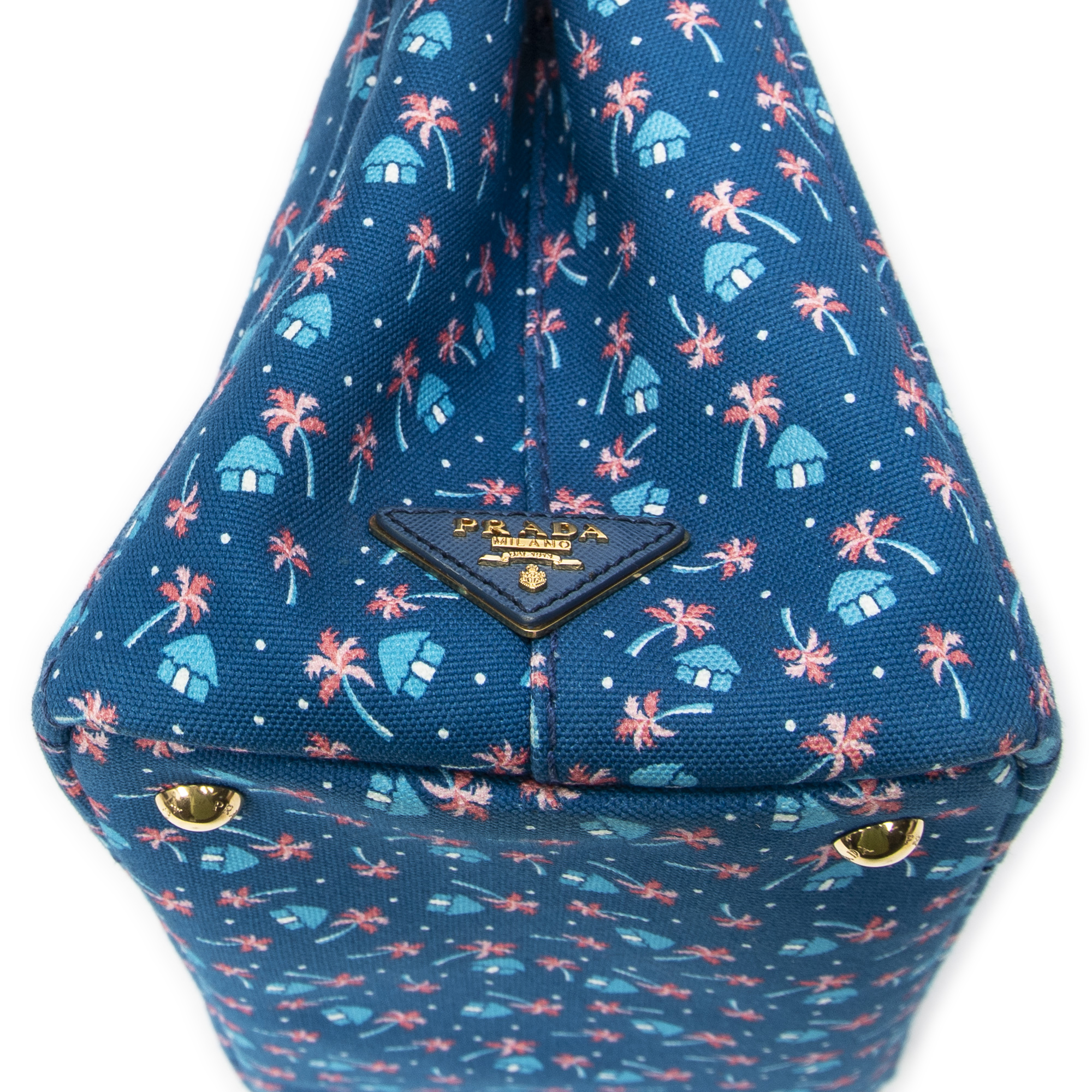 Prada Sac à bandoulière Small Canapa Tote en Blue et Gold. Le produit est en Excellent état (A).