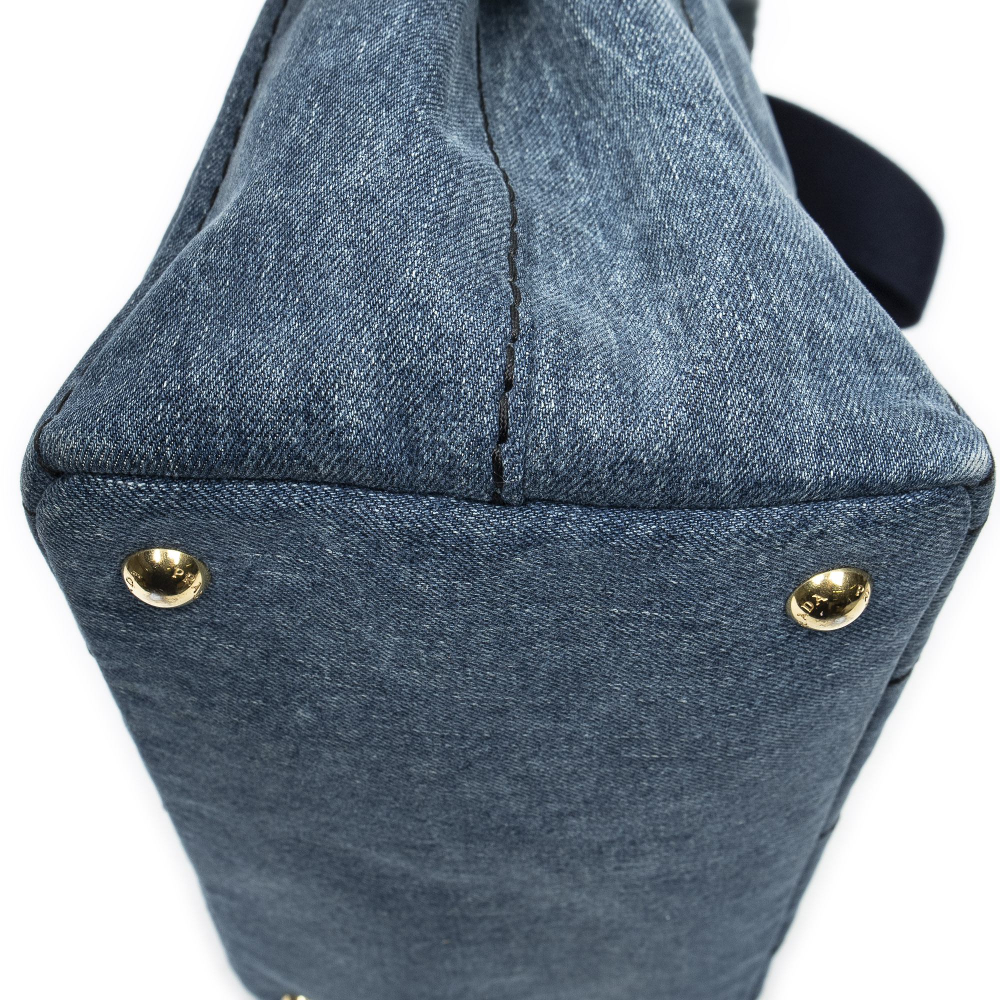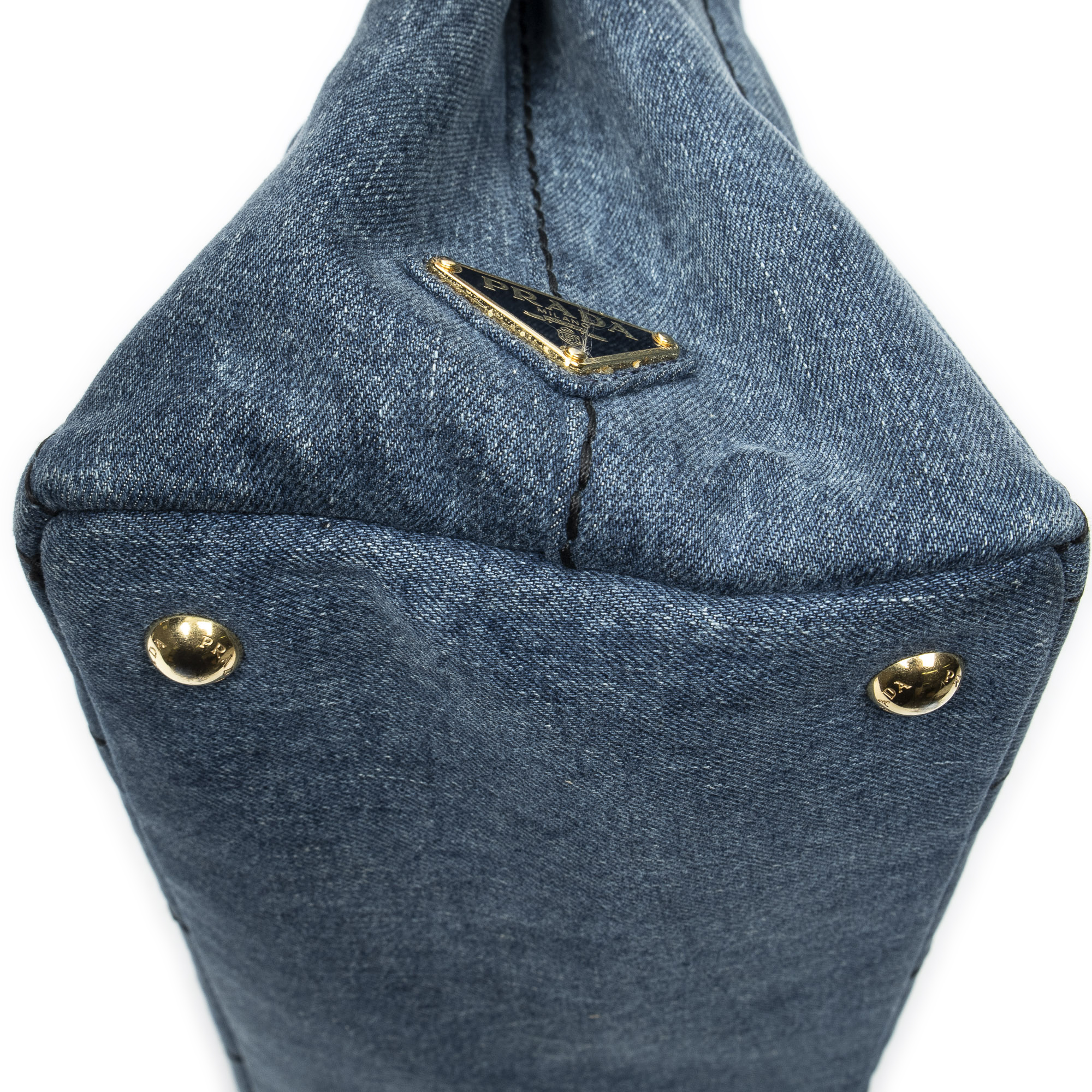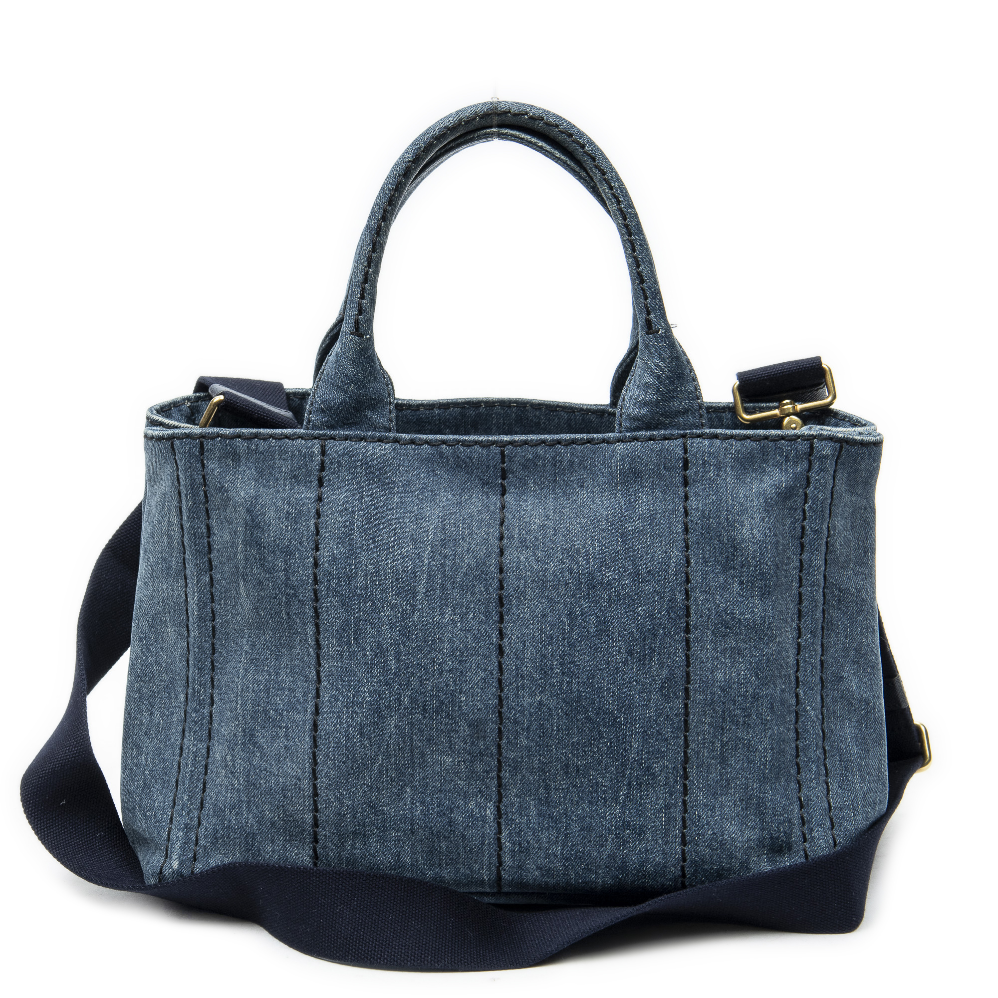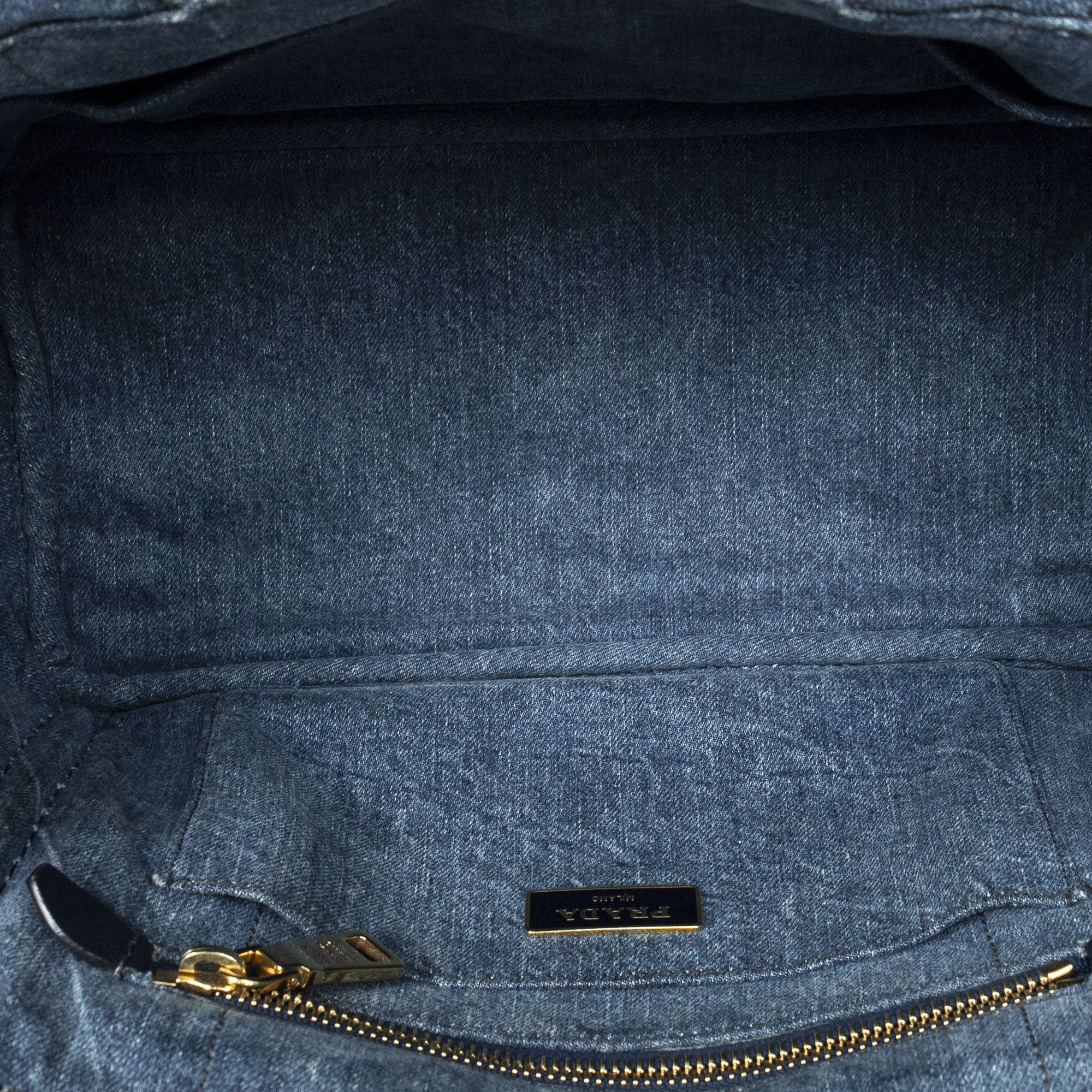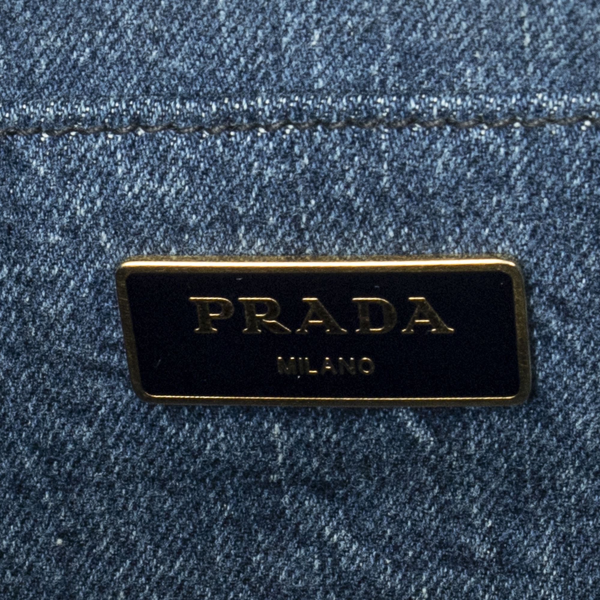 Prada Sac à bandoulière Small Canapa Tote en Blue et Gold. Le produit est en Excellent état (A).
