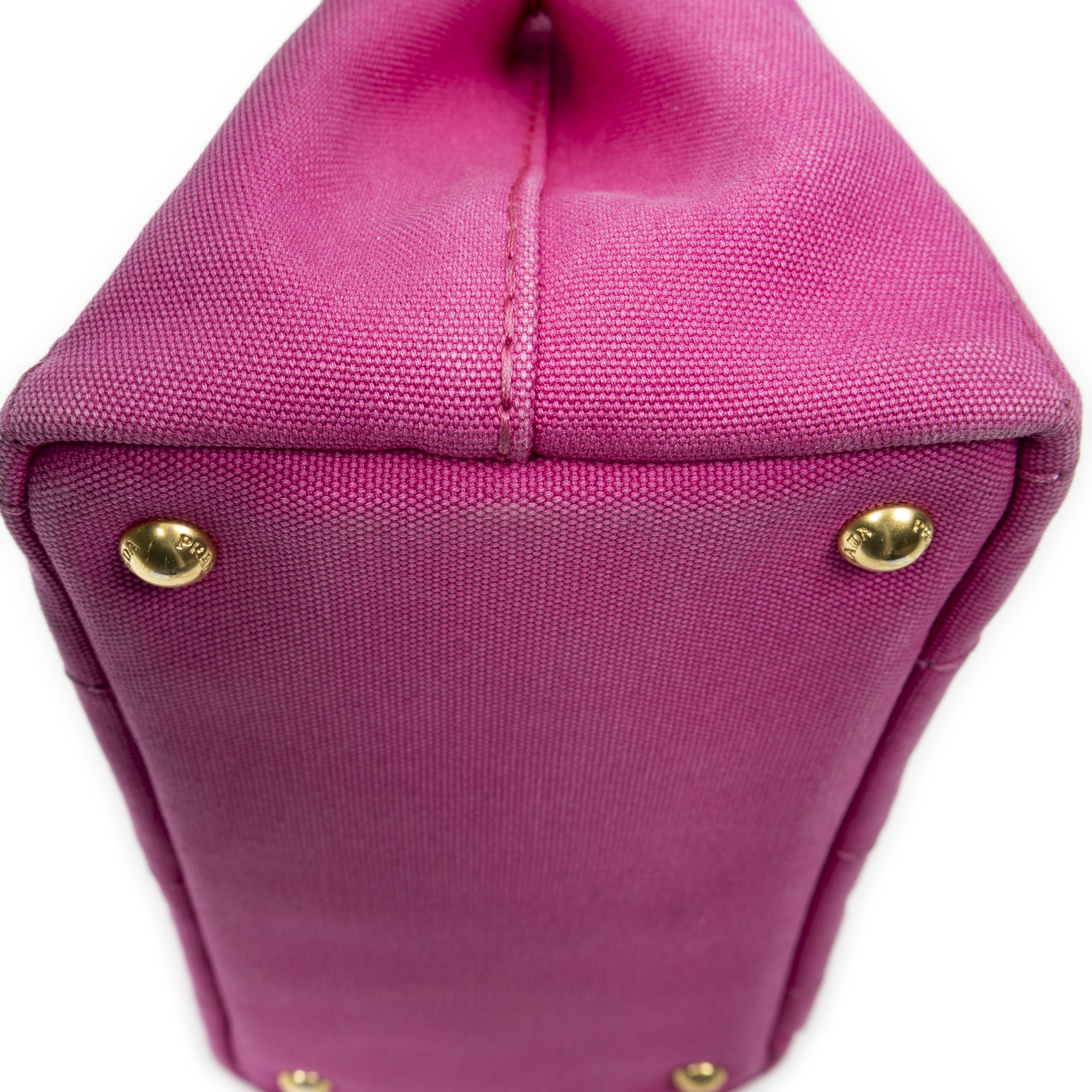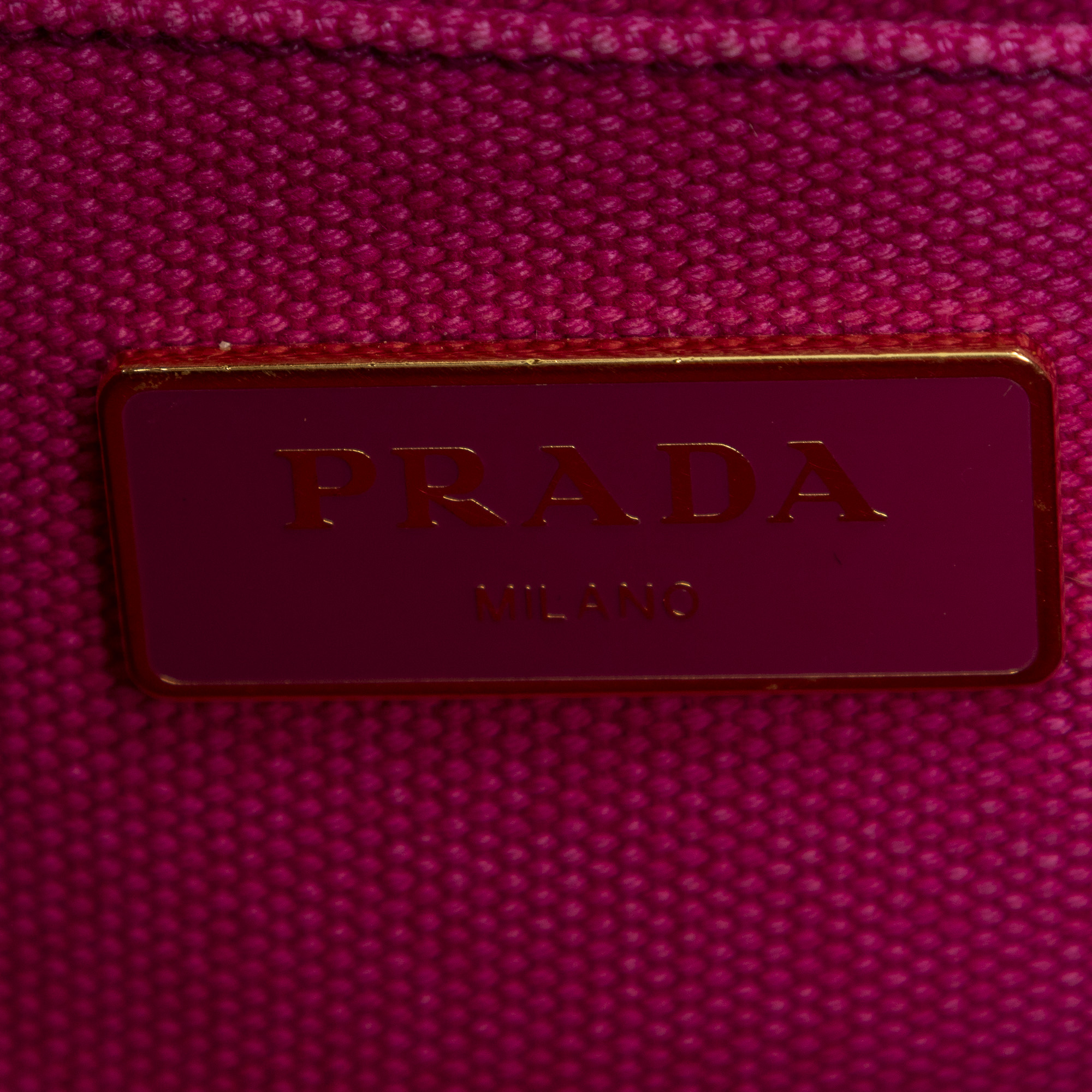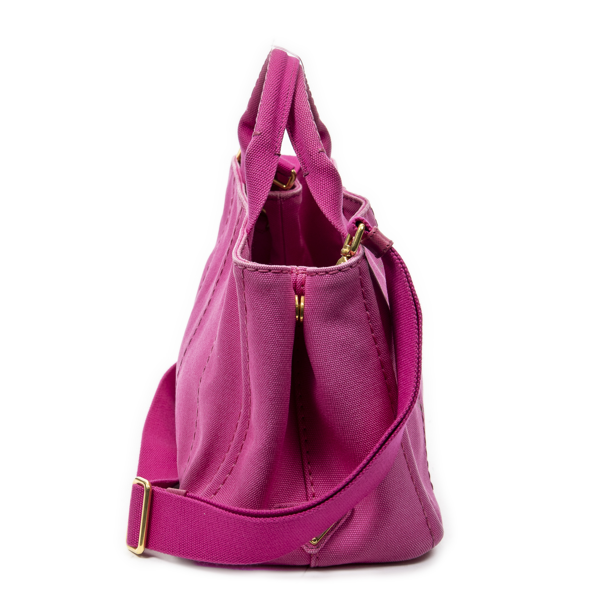 Prada Sac à bandoulière Small Canapa Tote en Fuchsia et Gold. Le produit est en Très Bon état (AB).