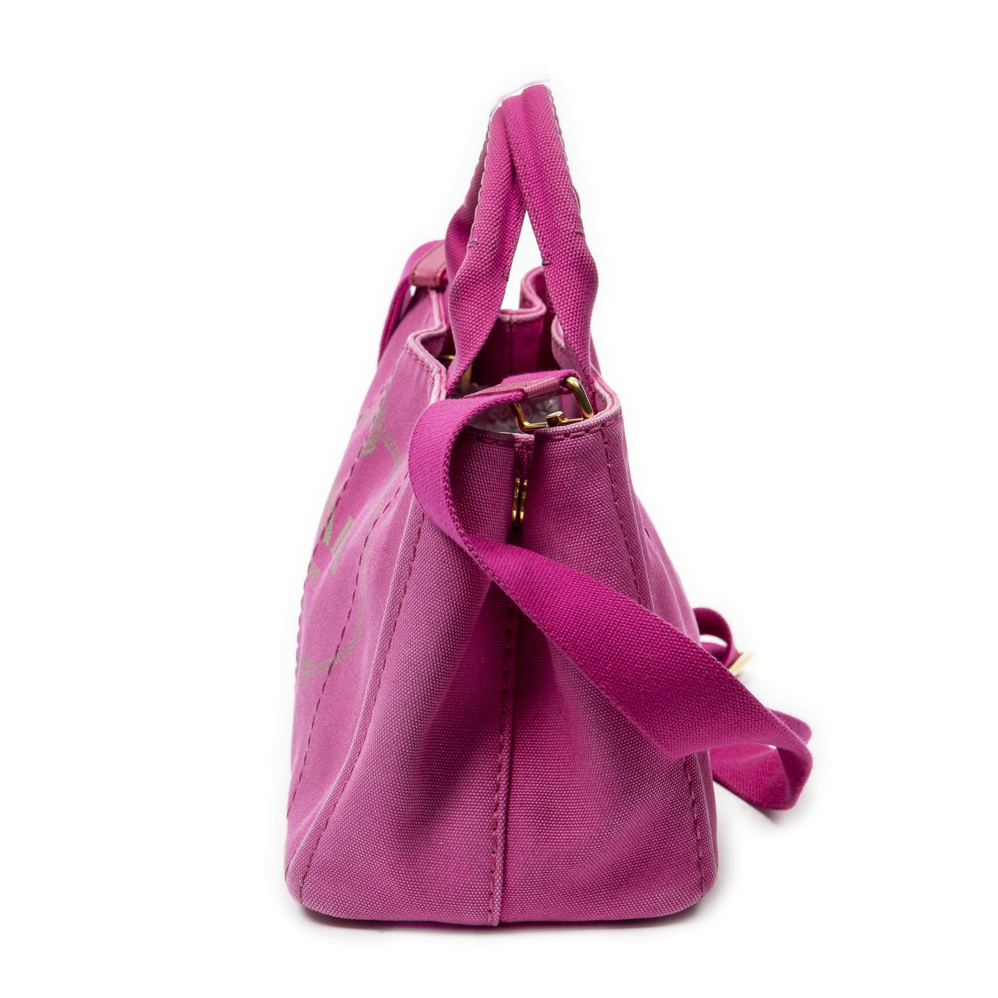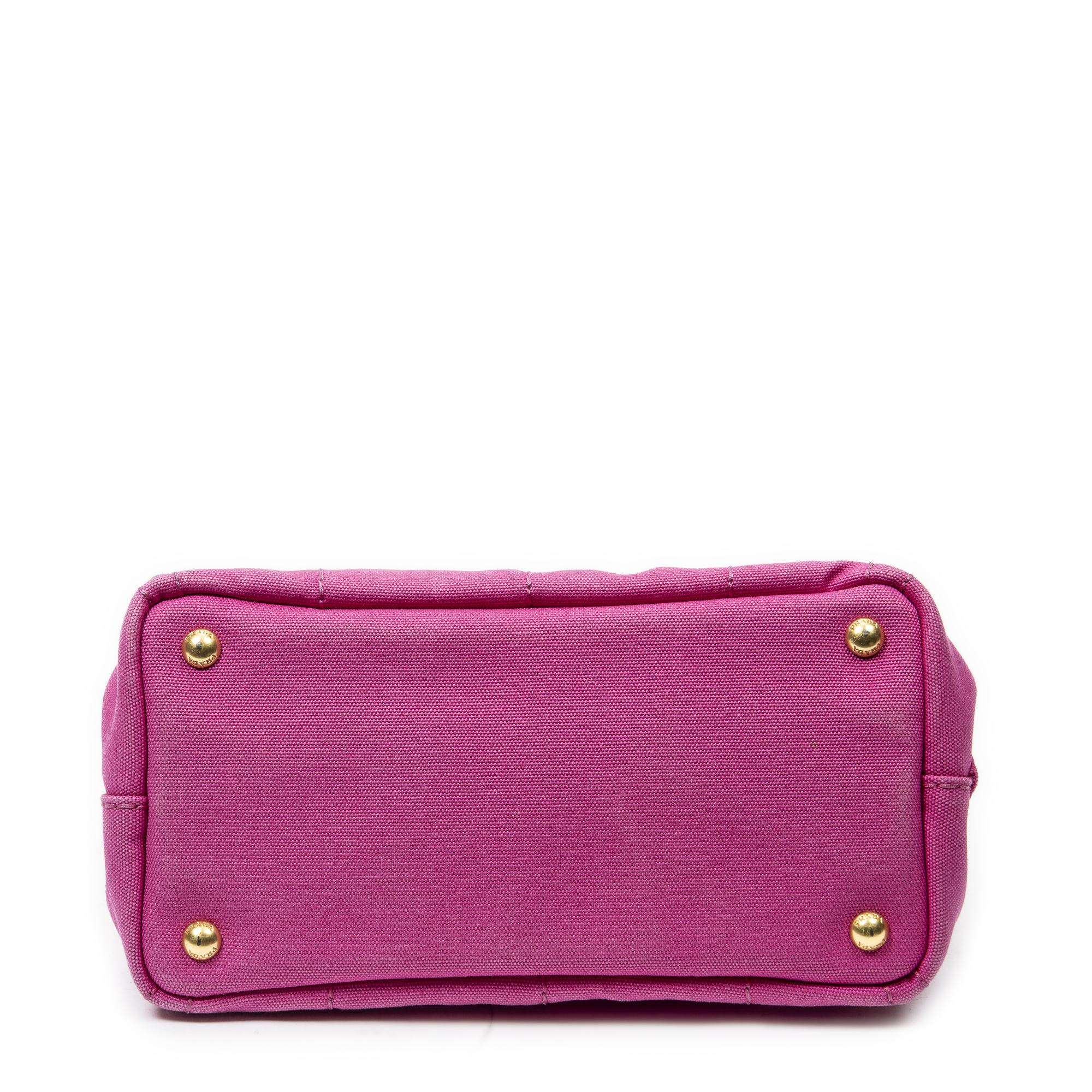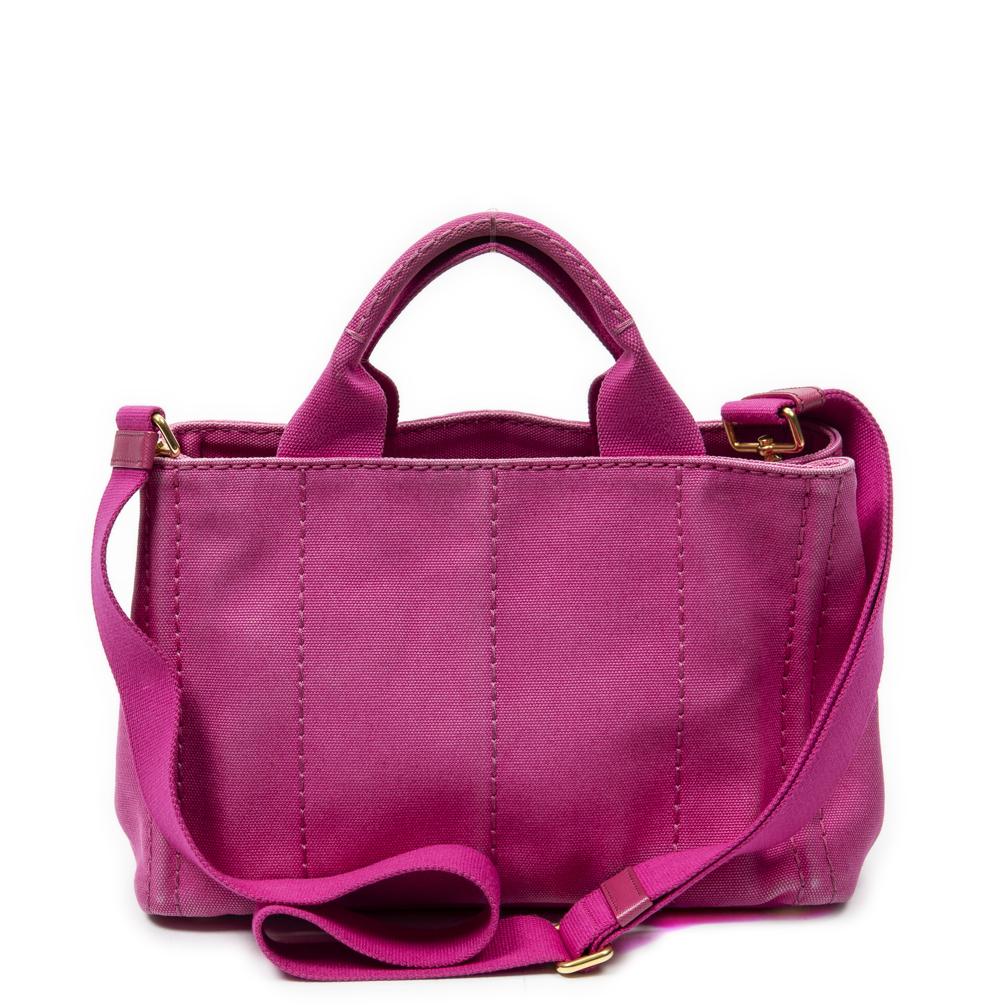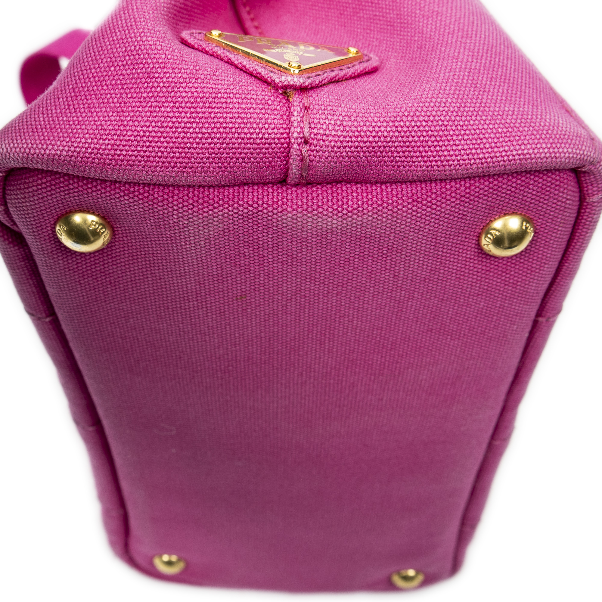 Prada Sac à bandoulière Small Canapa Tote en Fuchsia et Gold. Le produit est en Très Bon état (AB).