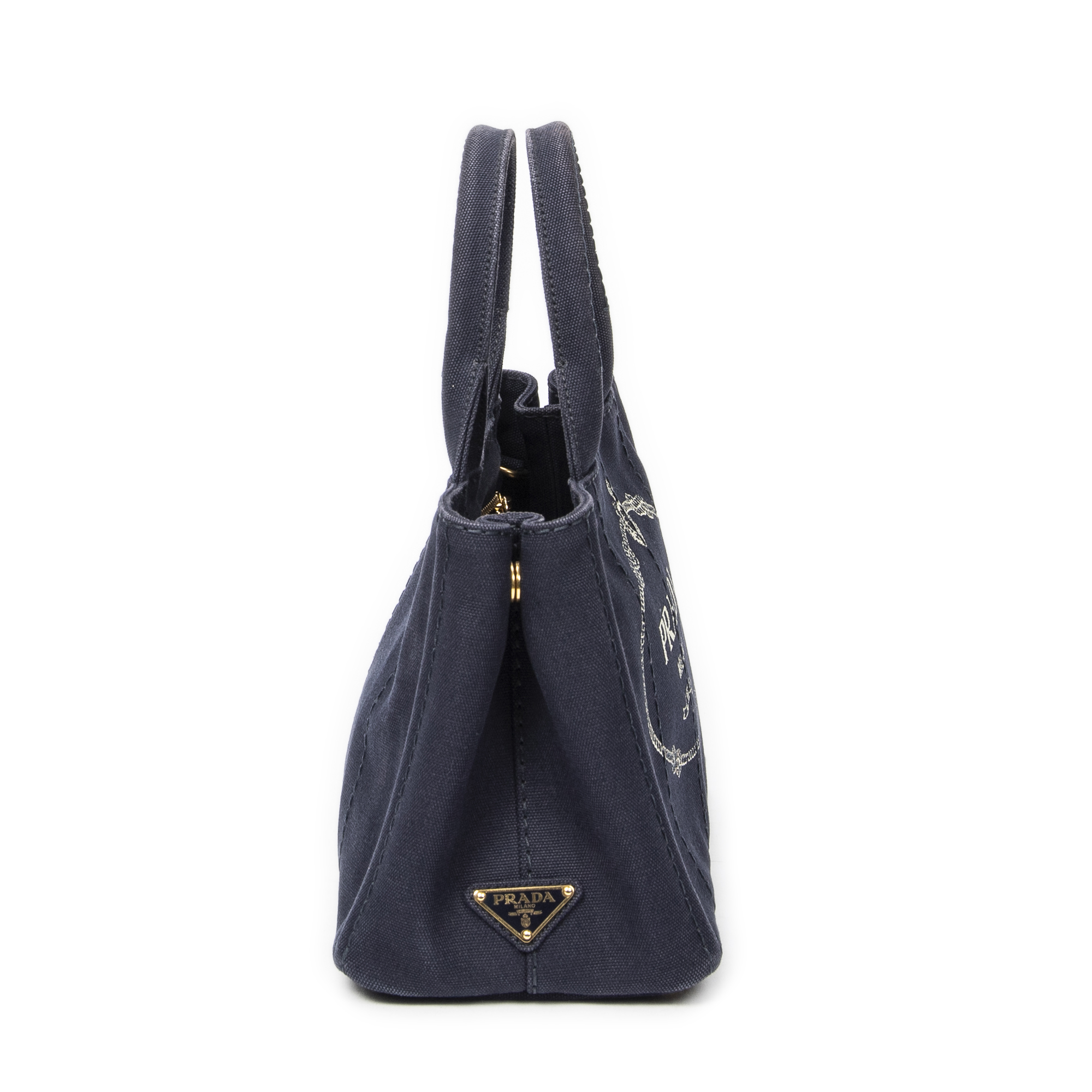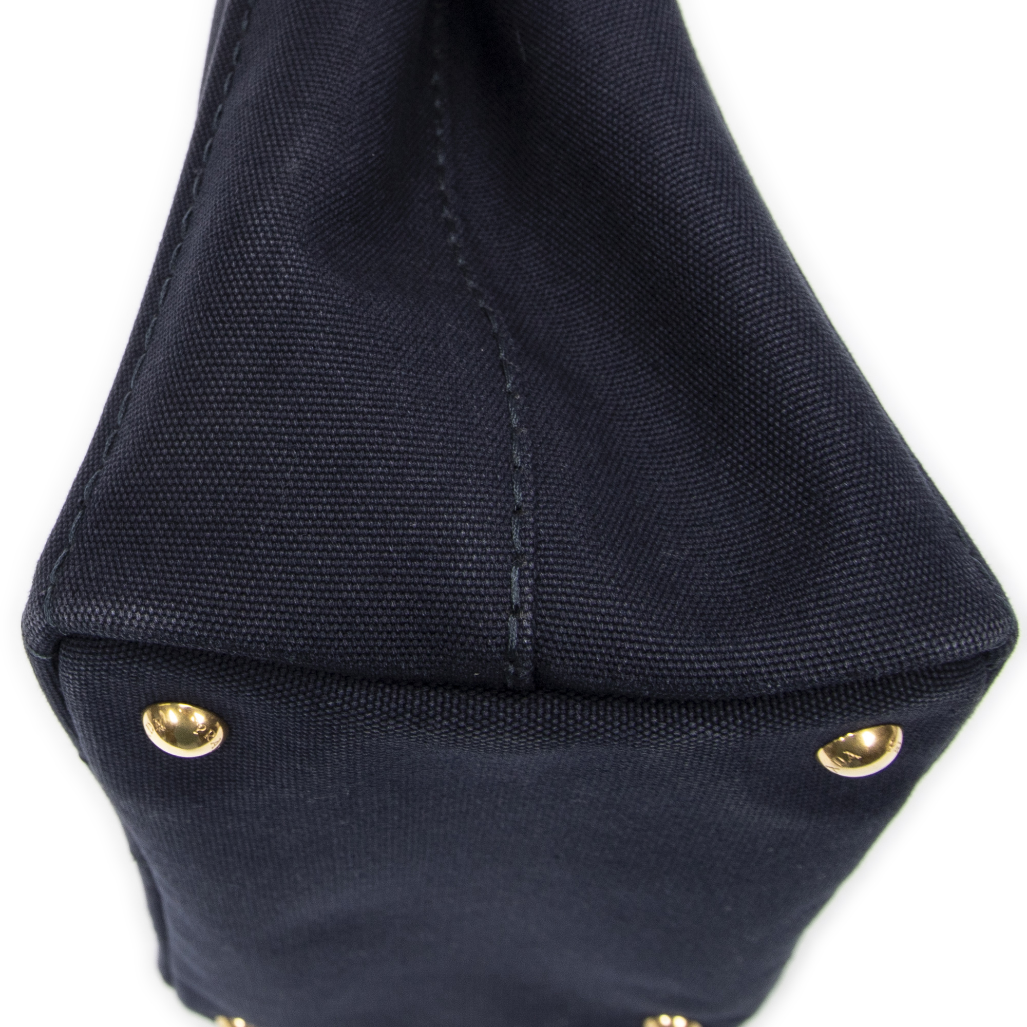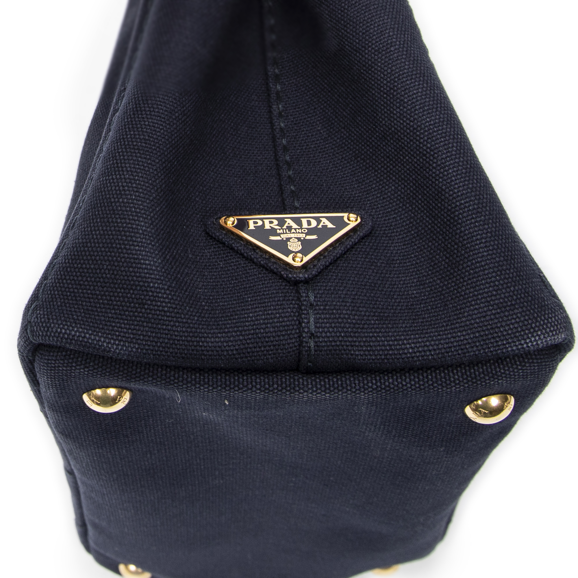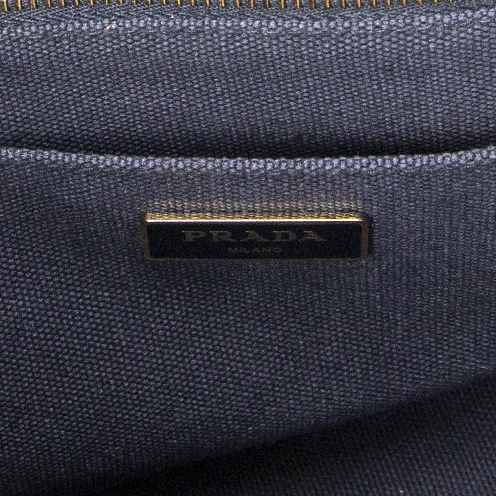 Prada Sac à bandoulière Small Canapa Tote en Marine et Gold. Le produit est en Excellent état (A).