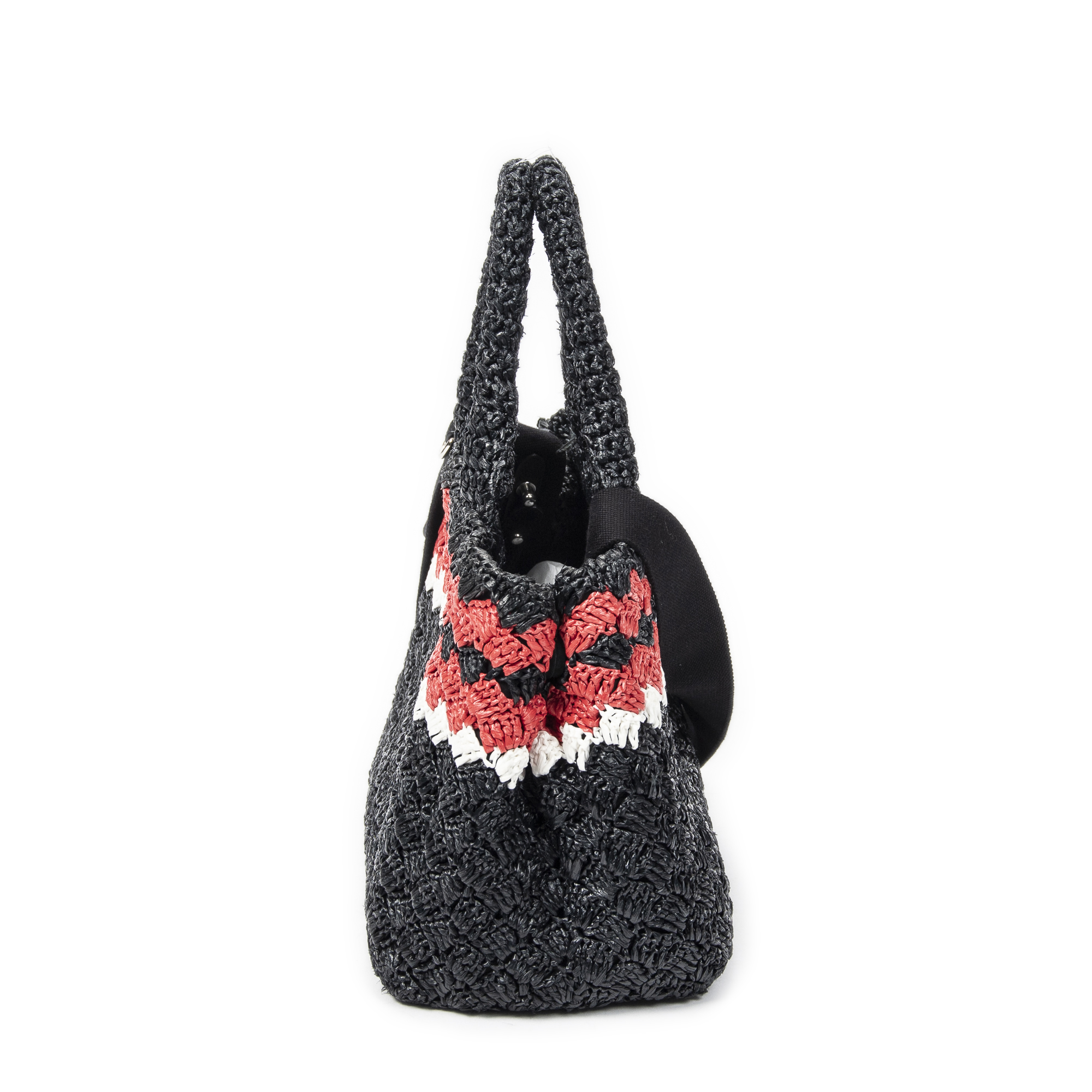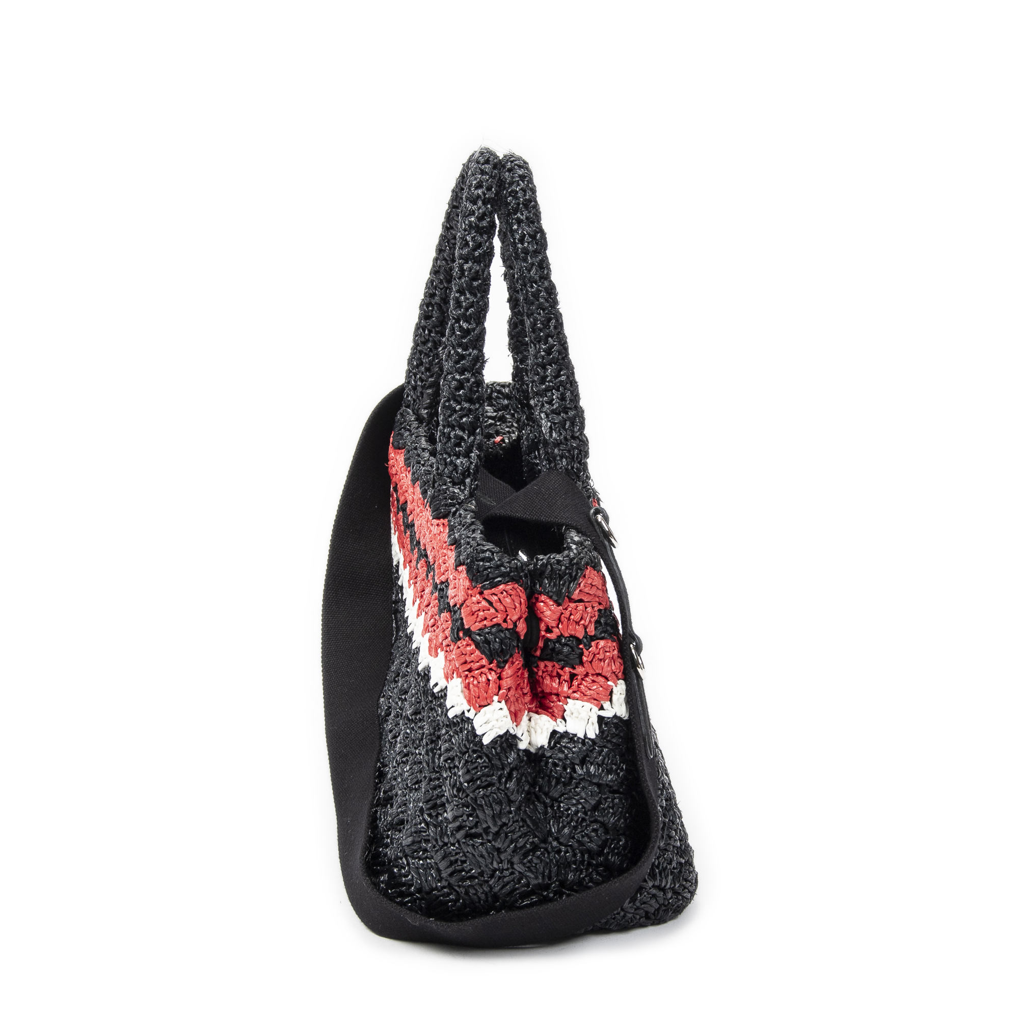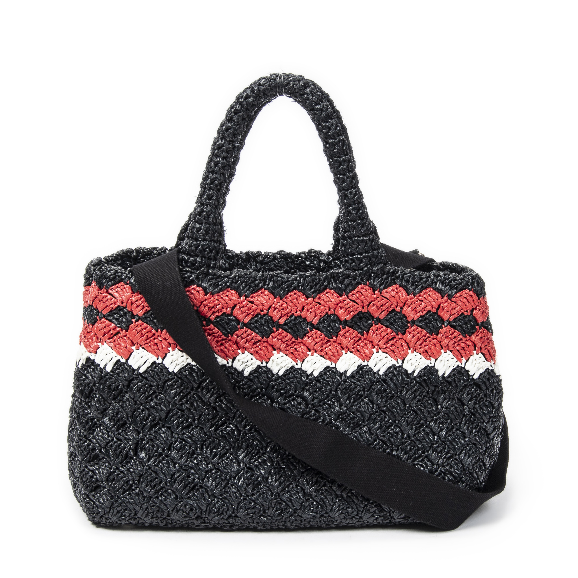 Prada Sac à bandoulière Small Canapa Tote en Noir/Rouge et Argent. Le produit est en Parfait état (AA).
