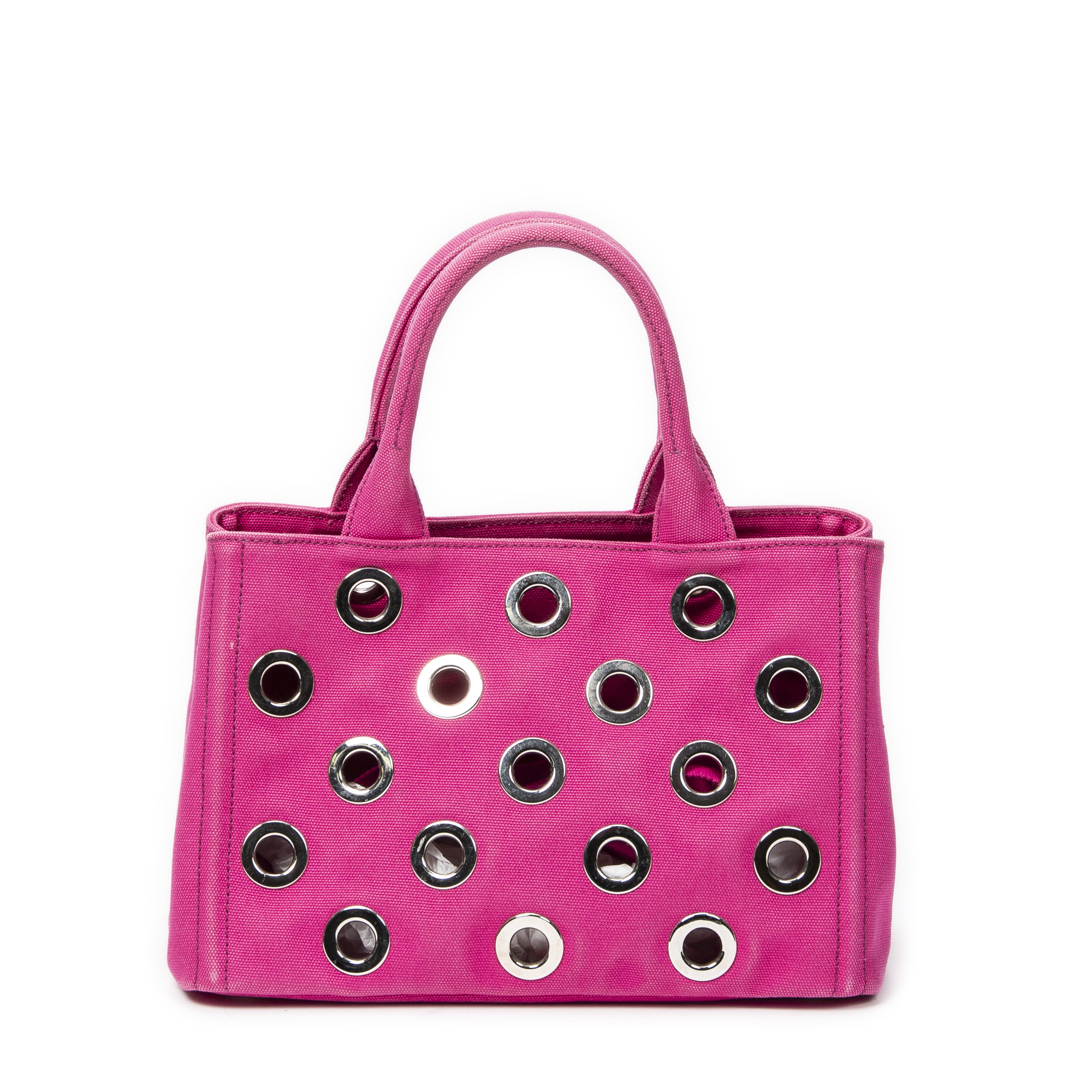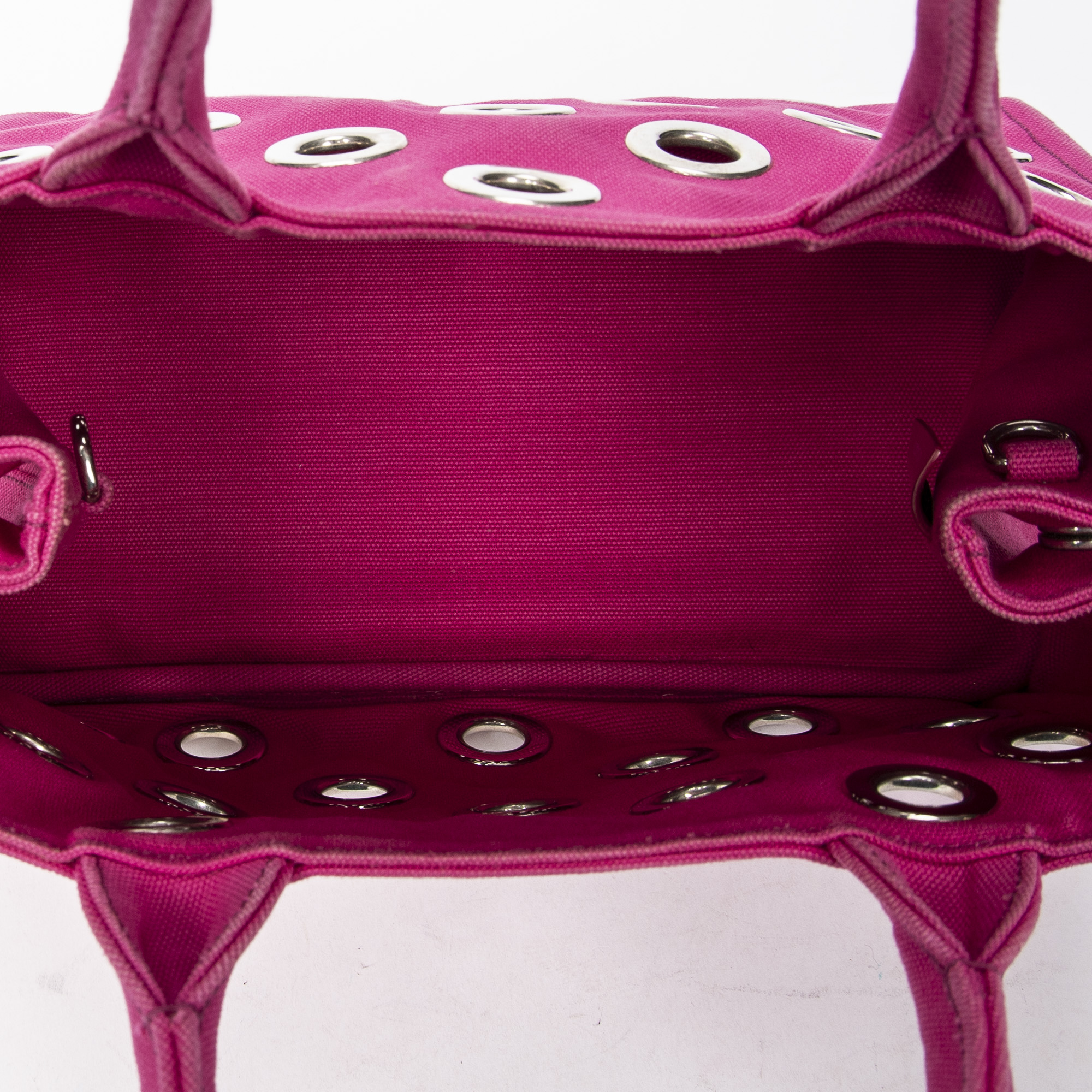 Prada Sac à bandoulière Small Grommet Canapa Tote en Rose fuchsia et Argent. Le produit est en Excellent état (A).