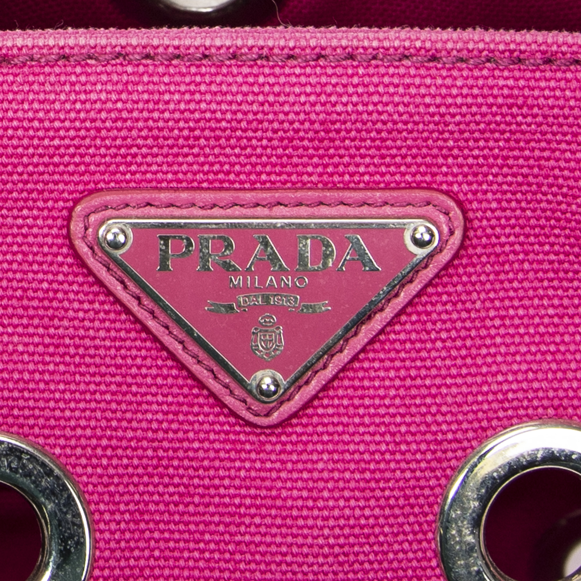 Prada Small Grommet Canapa Tote en Rose fuchsia