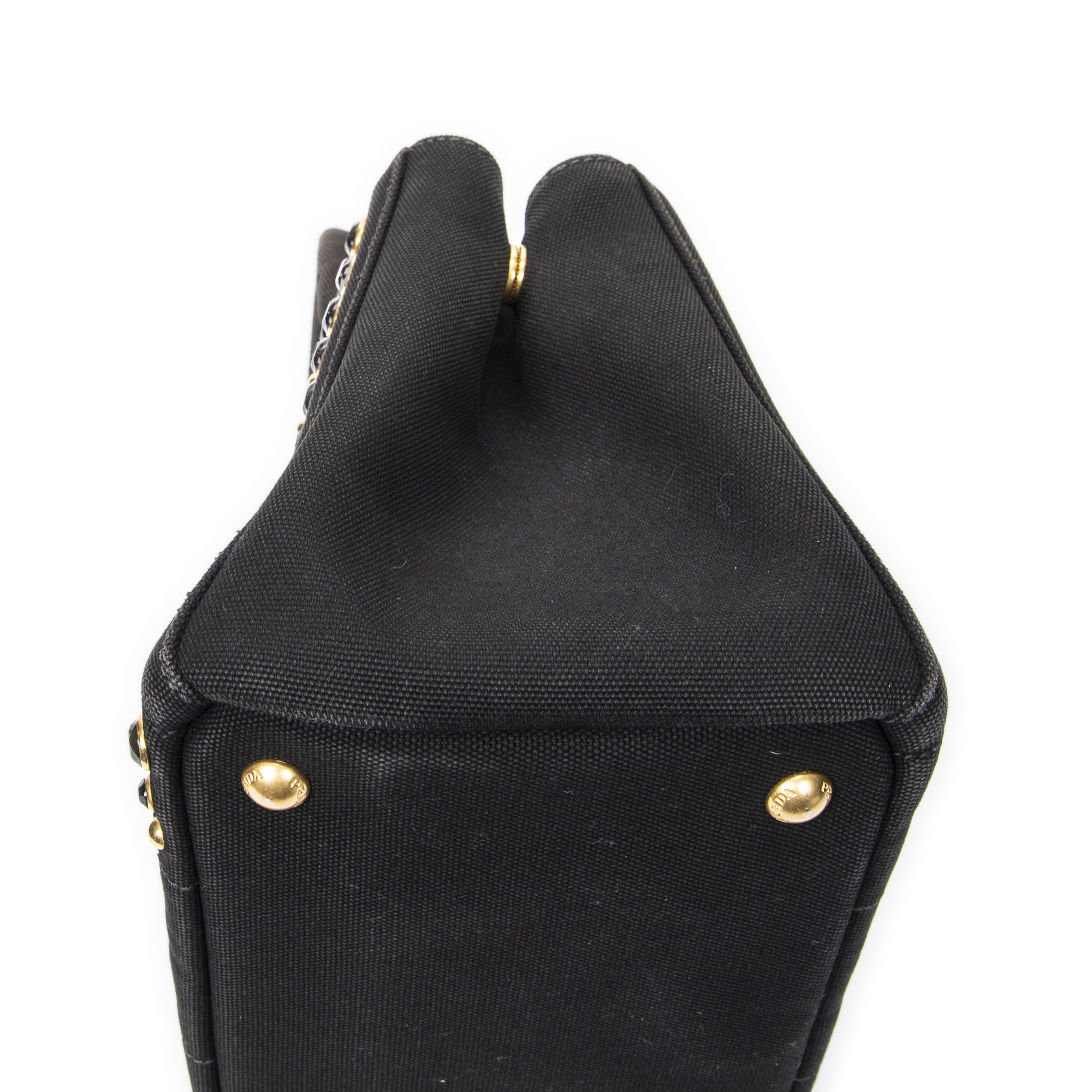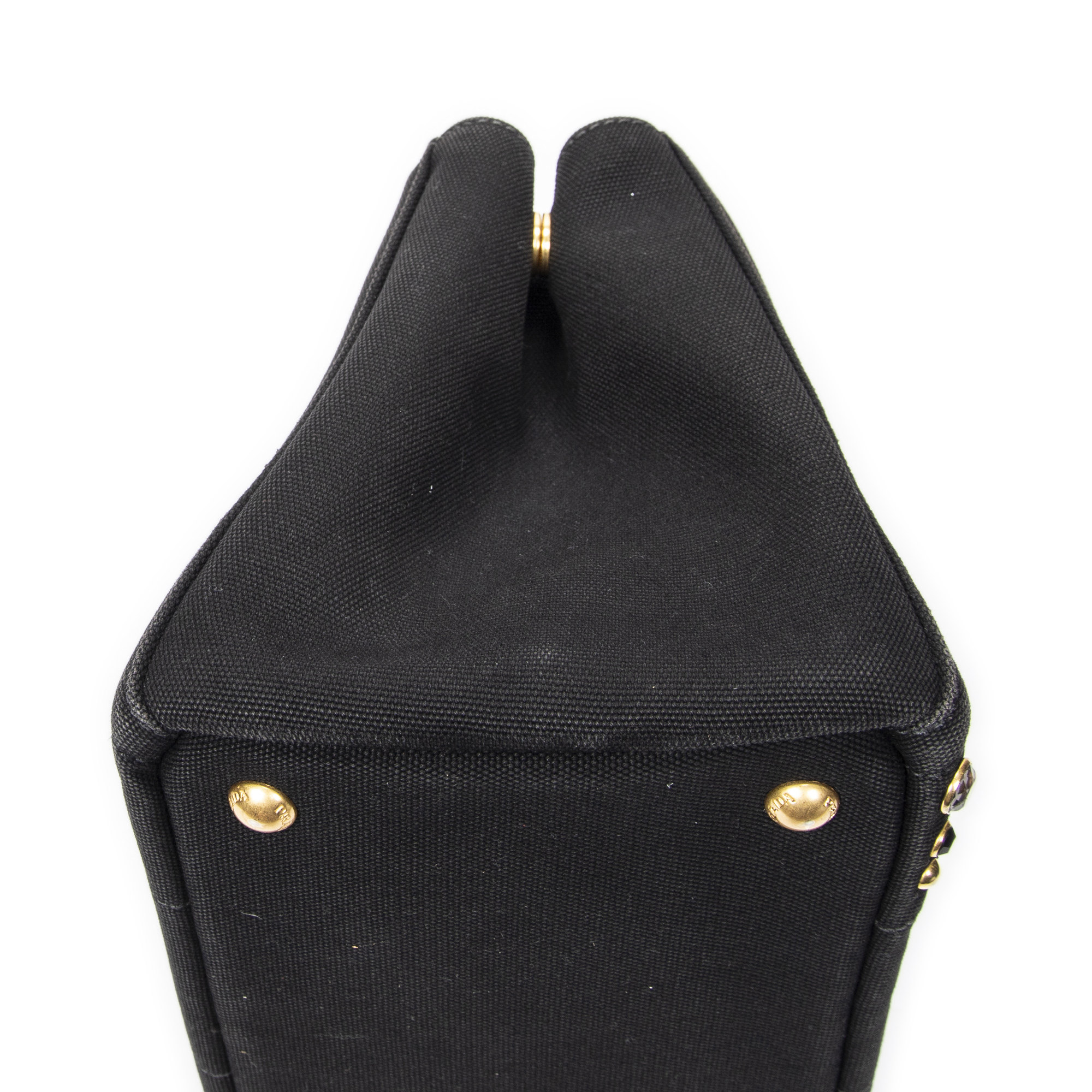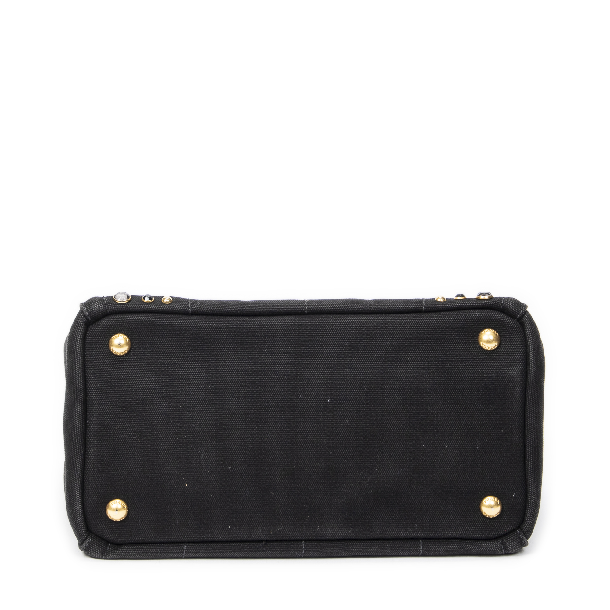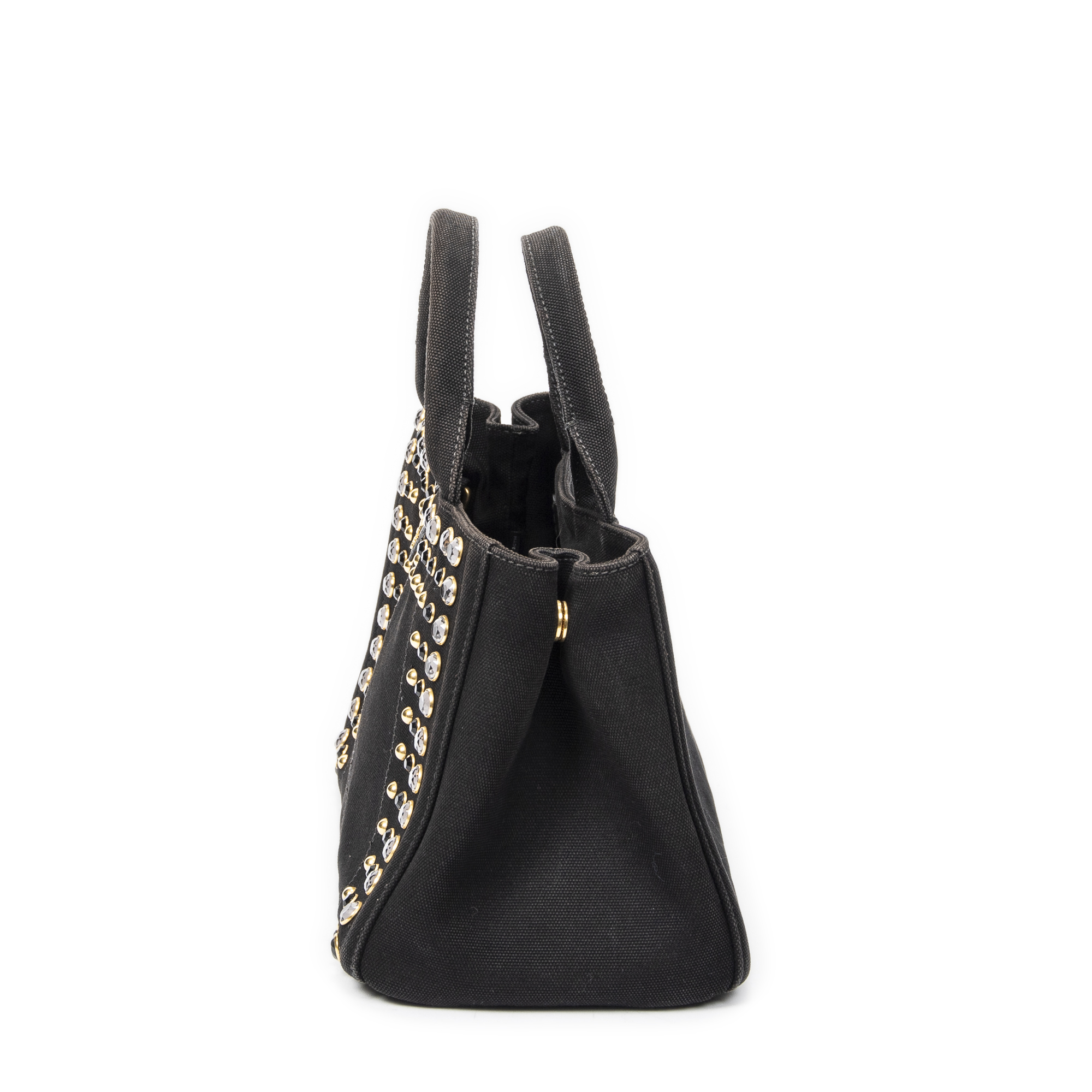 Prada Sac à bandoulière Small Rhinestone Canapa Tote en Black et Gold. Le produit est en Excellent état (A).