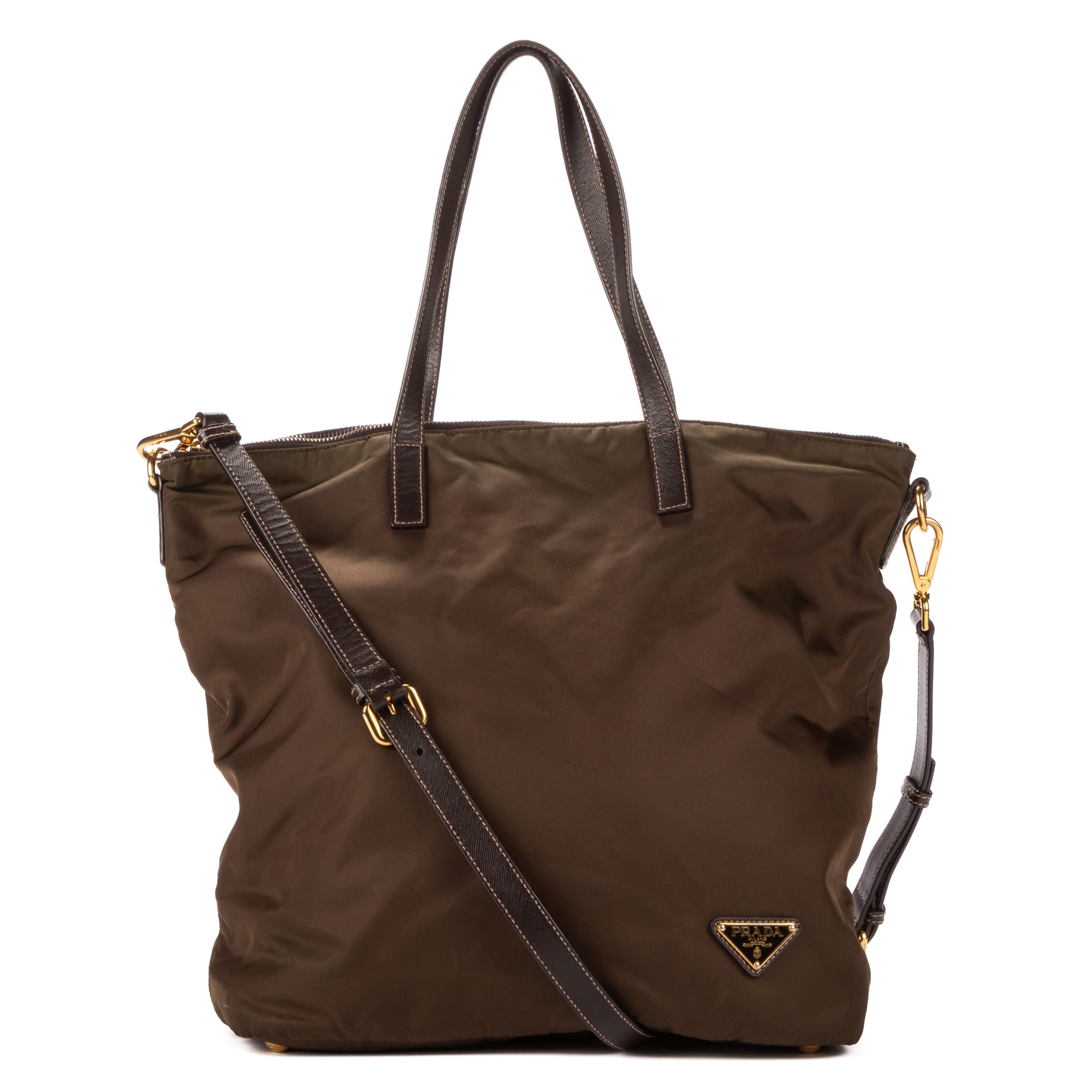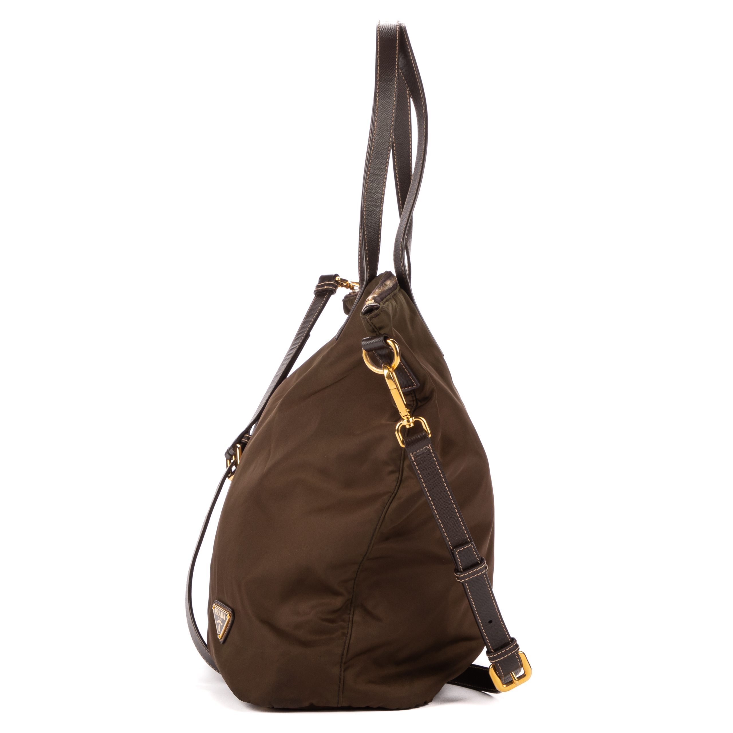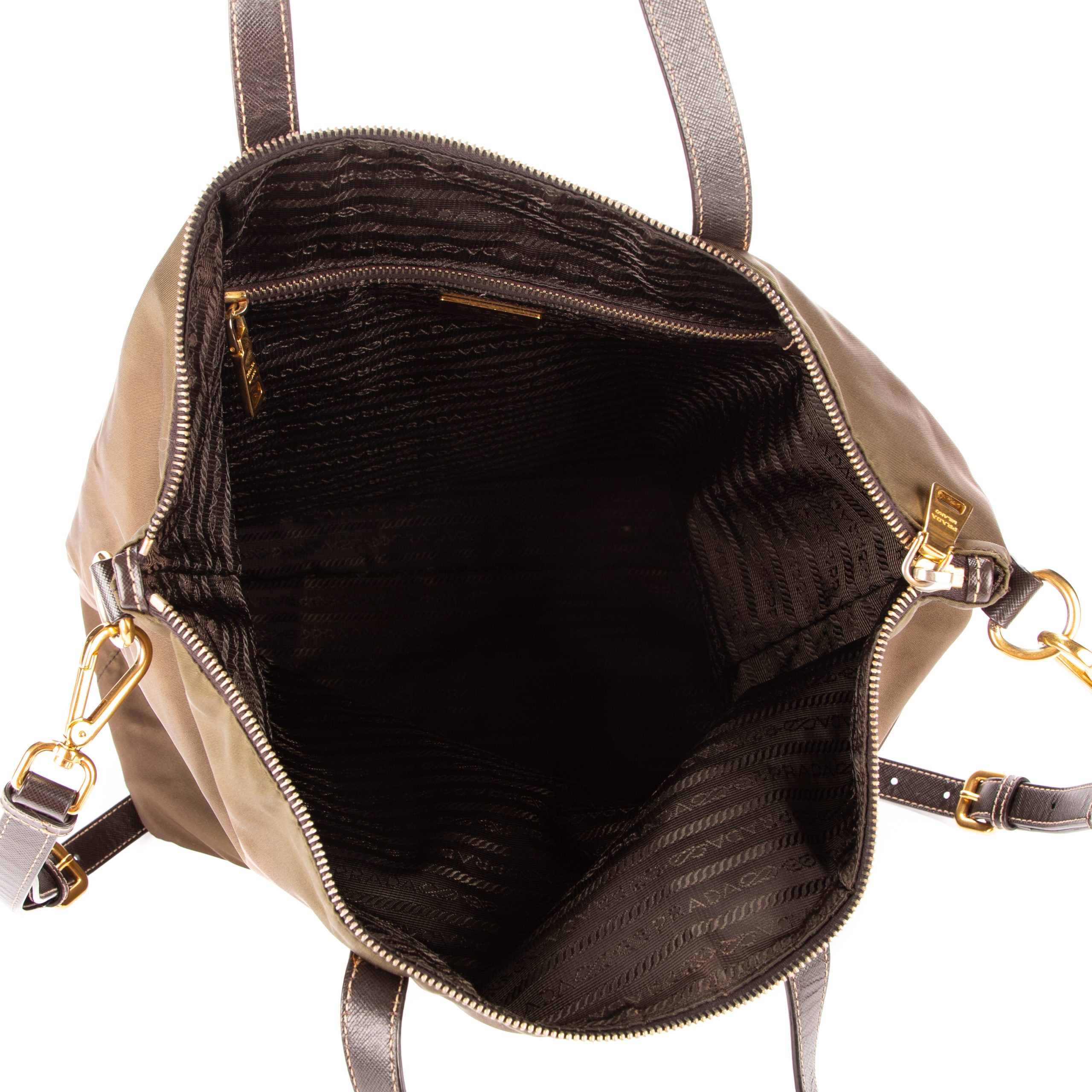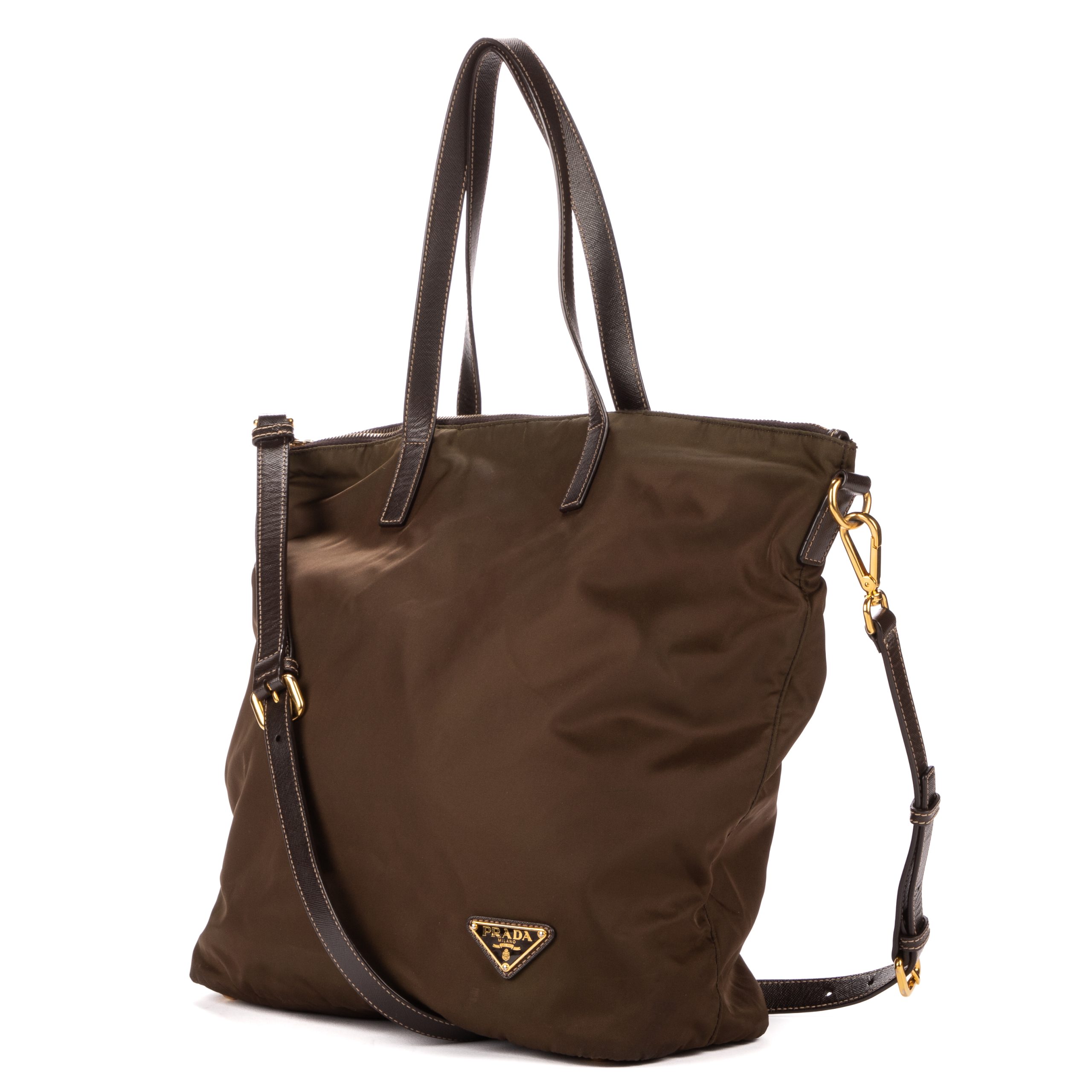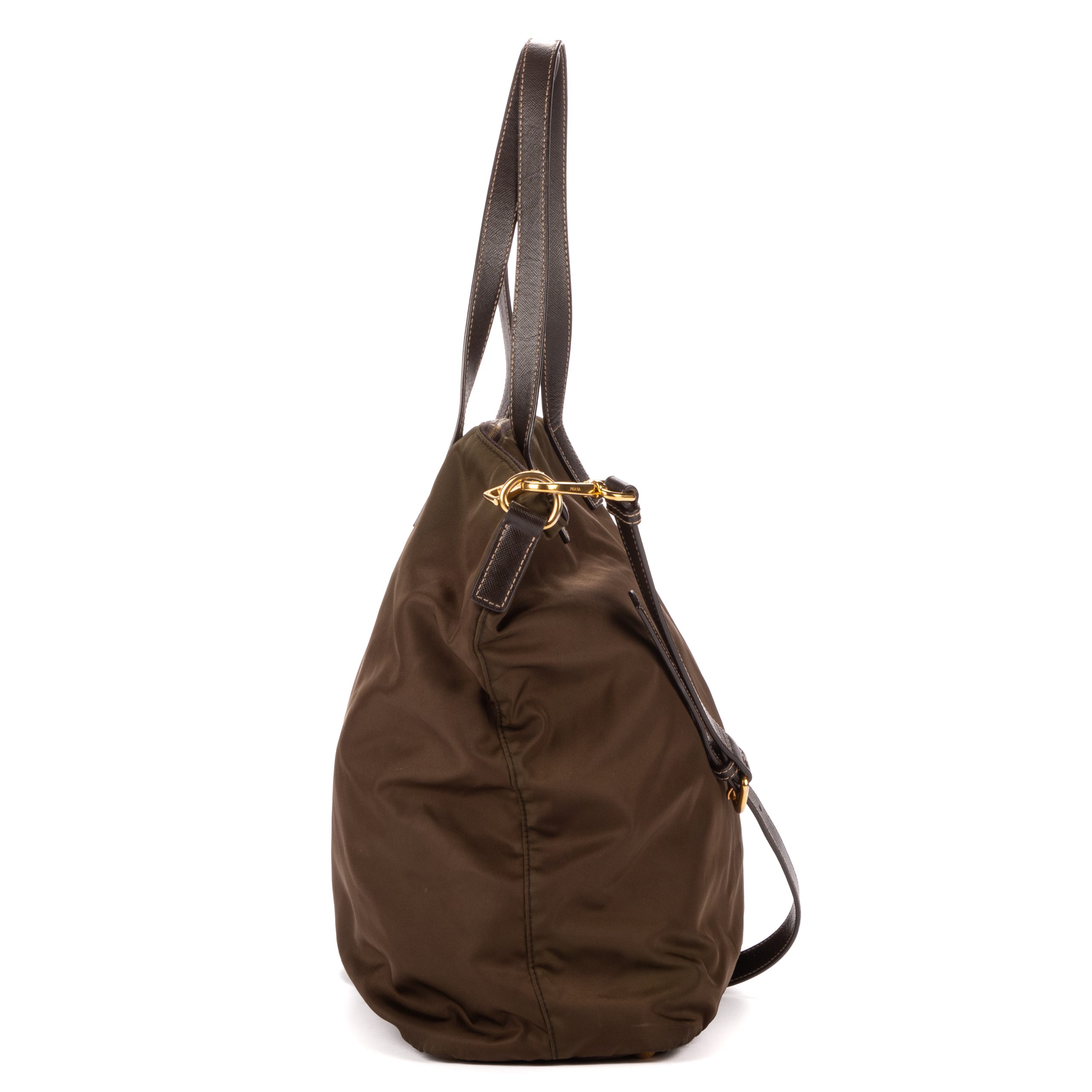 Prada Sac à bandoulière Tote Right Prada en Khaki et Gold. Le produit est en Excellent état (A).