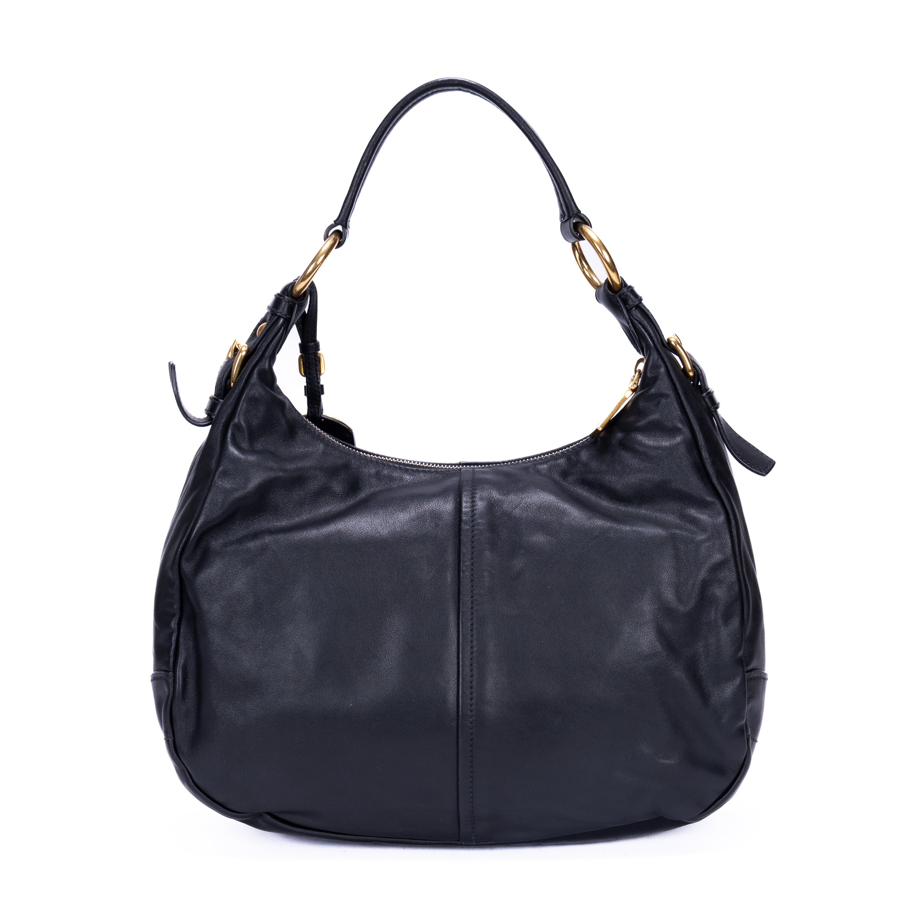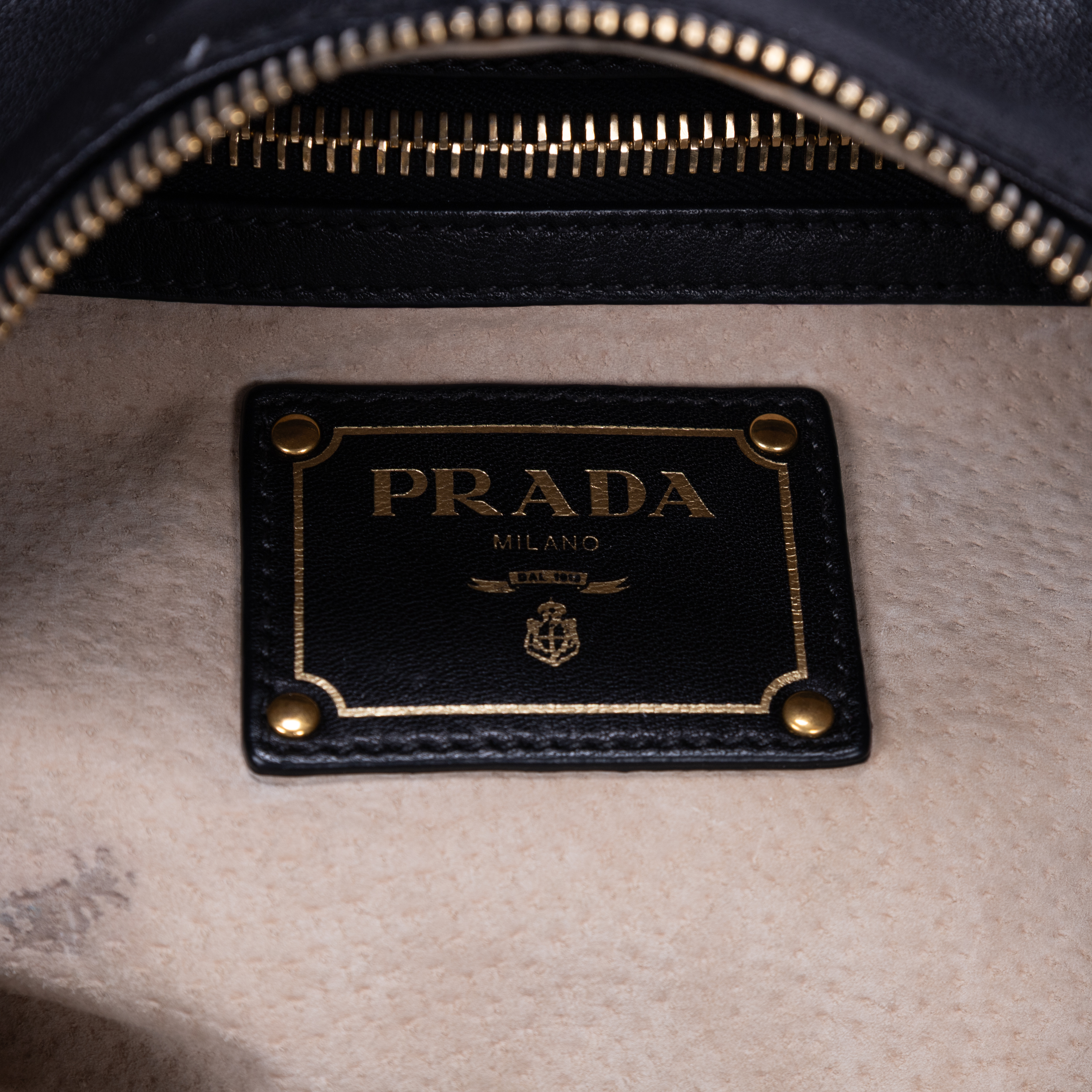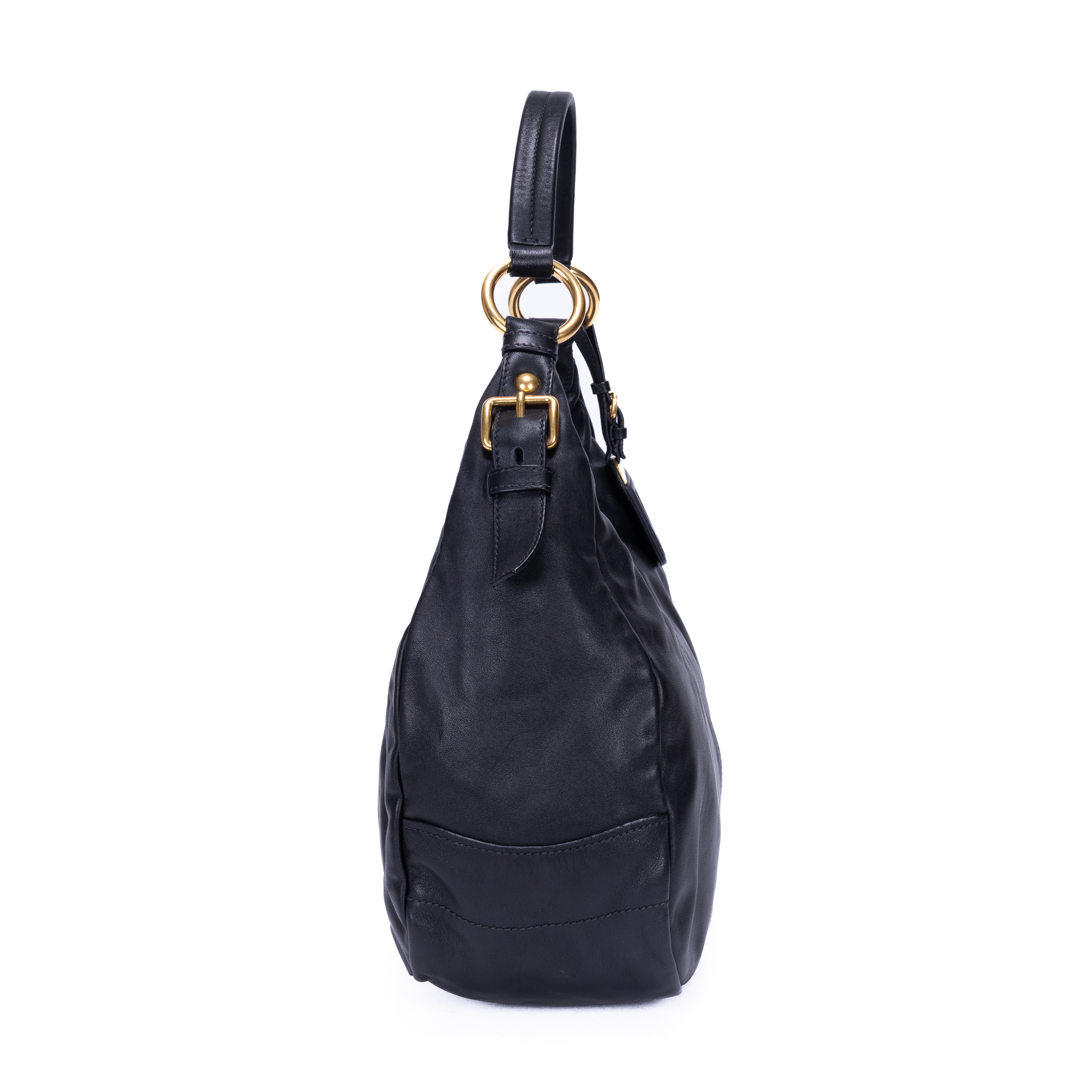Prada Sac à bandoulière Vitello Daino Hobo en Black et Gold. Le produit est en Parfait état (AA).
