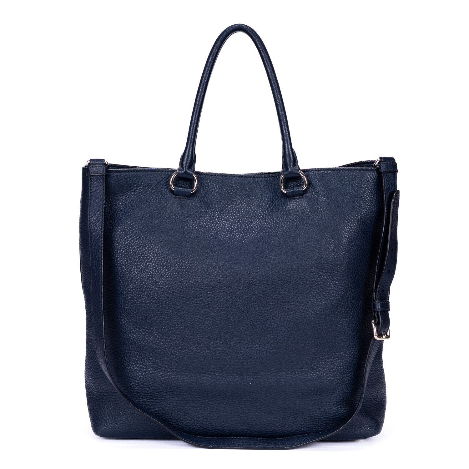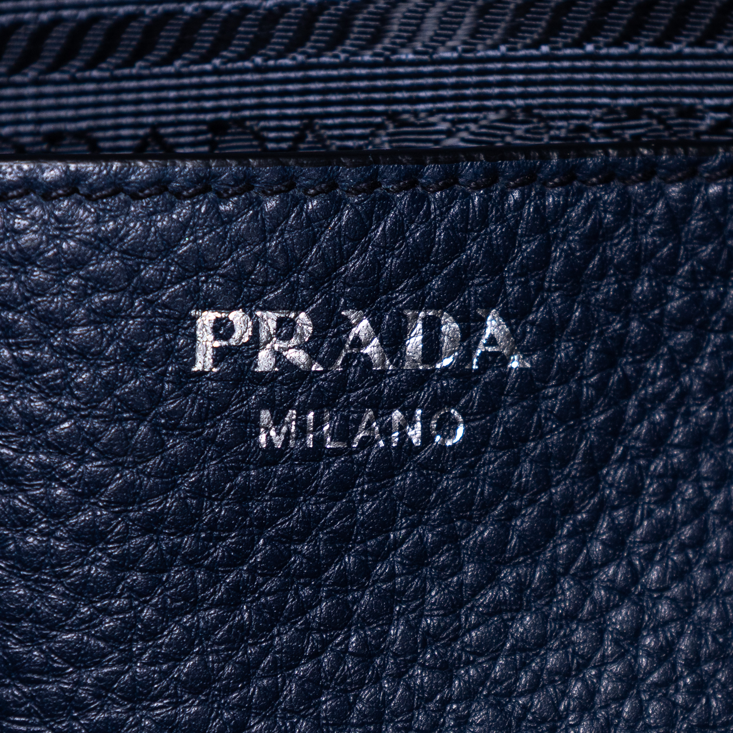 Prada Sac à bandoulière Vitello Daino Tote en Marine et Argent. Le produit est en Excellent état (A).