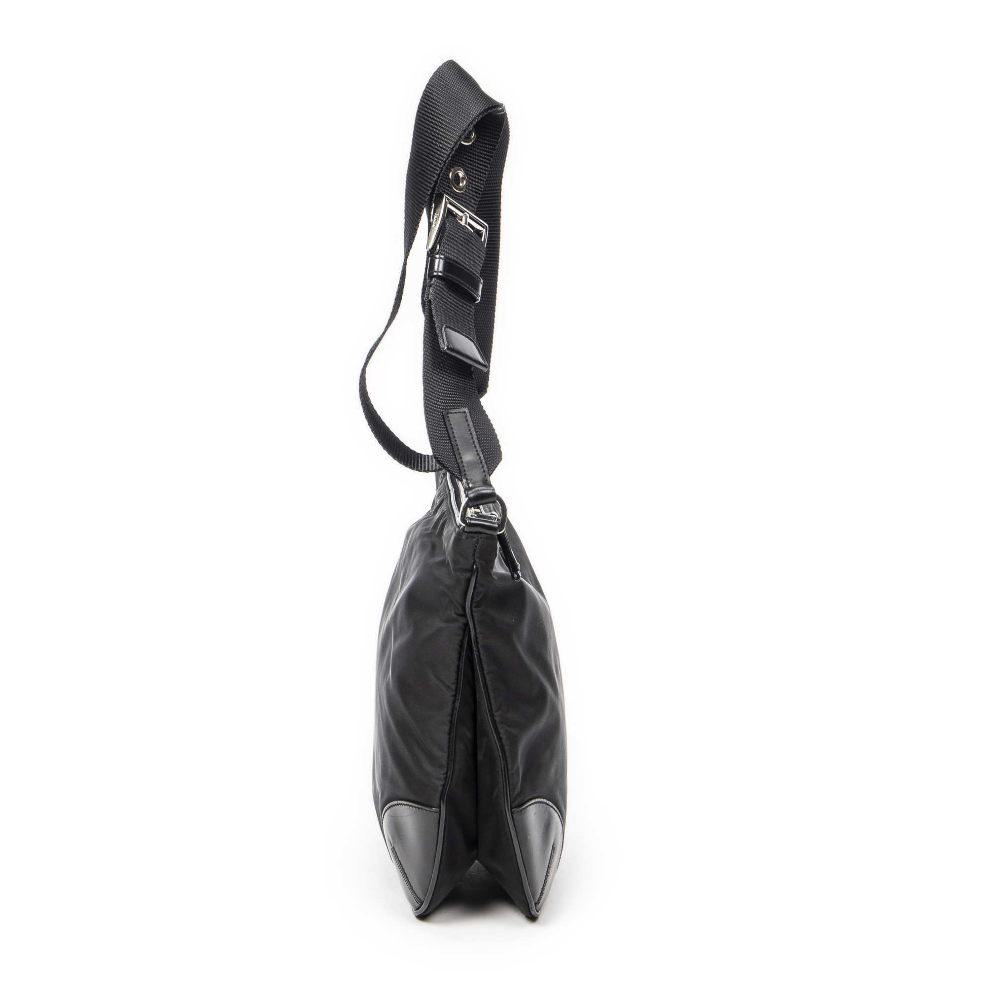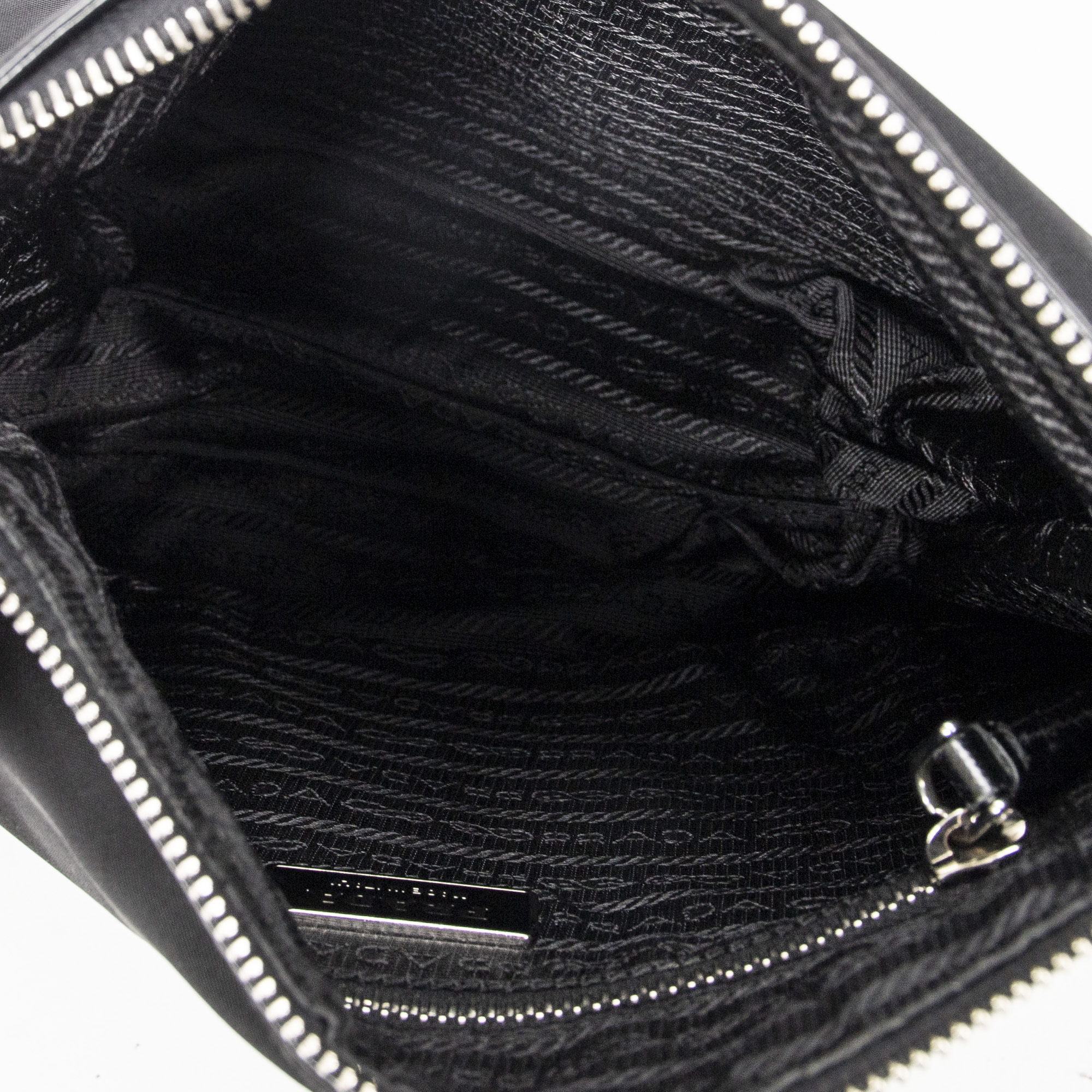 Prada Sac à bandoulière Zip Crossbody en Noir et Argent. Le produit est en Excellent état (A).