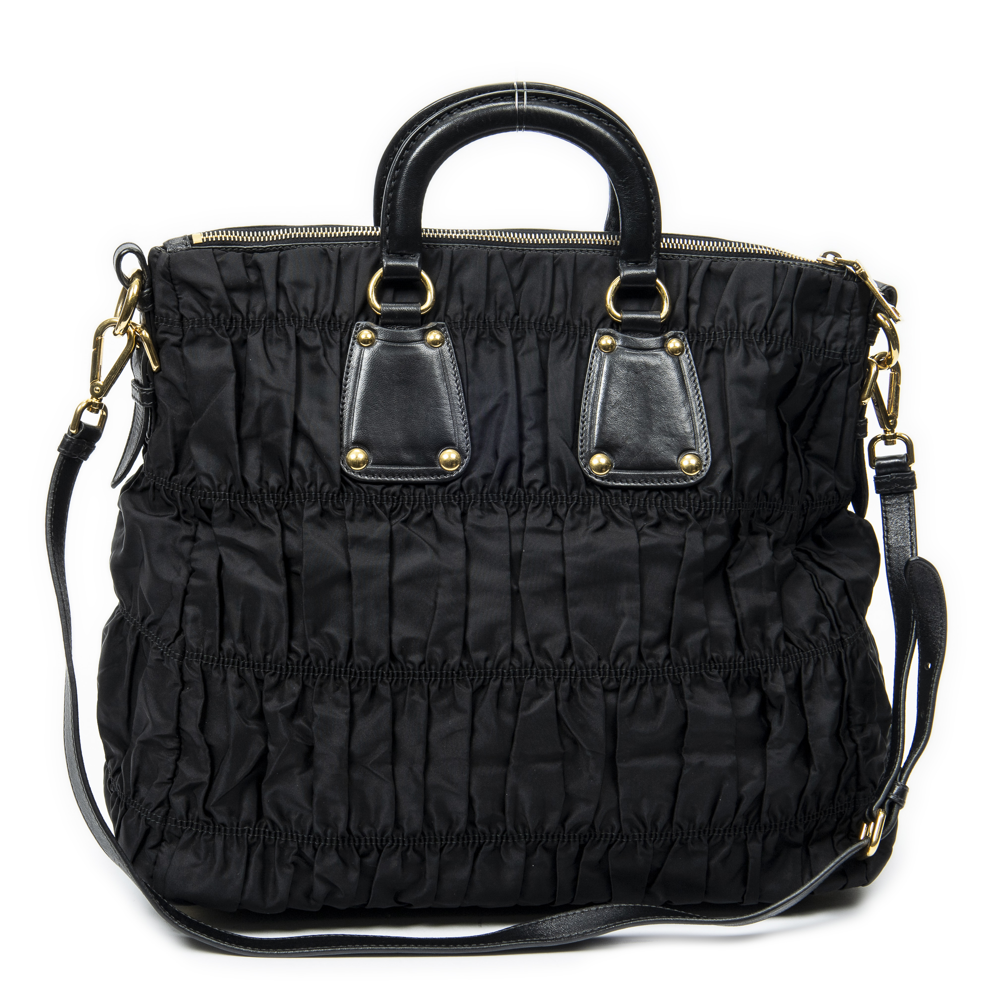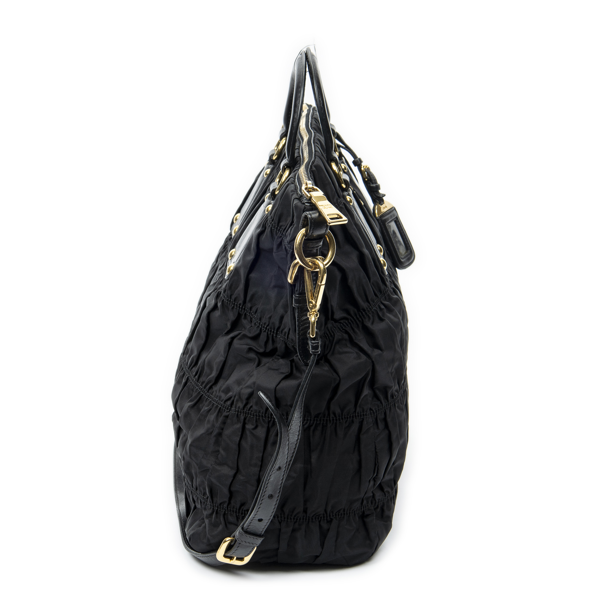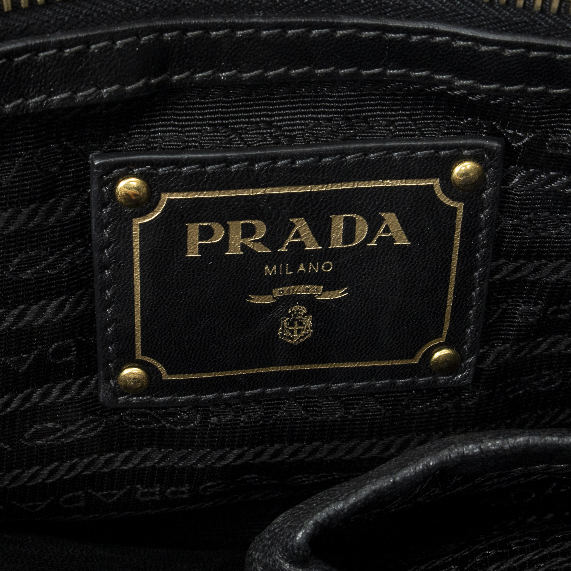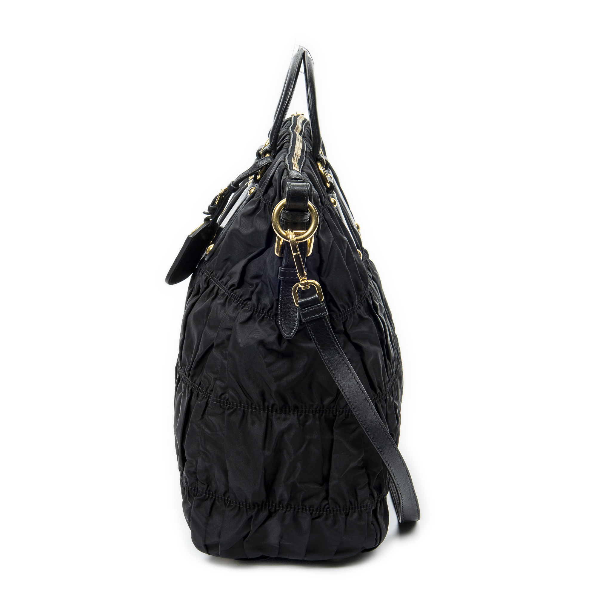 Prada Sac à bandoulière Zip Shopping Tote en Black et Gold. Le produit est en Excellent état (A).