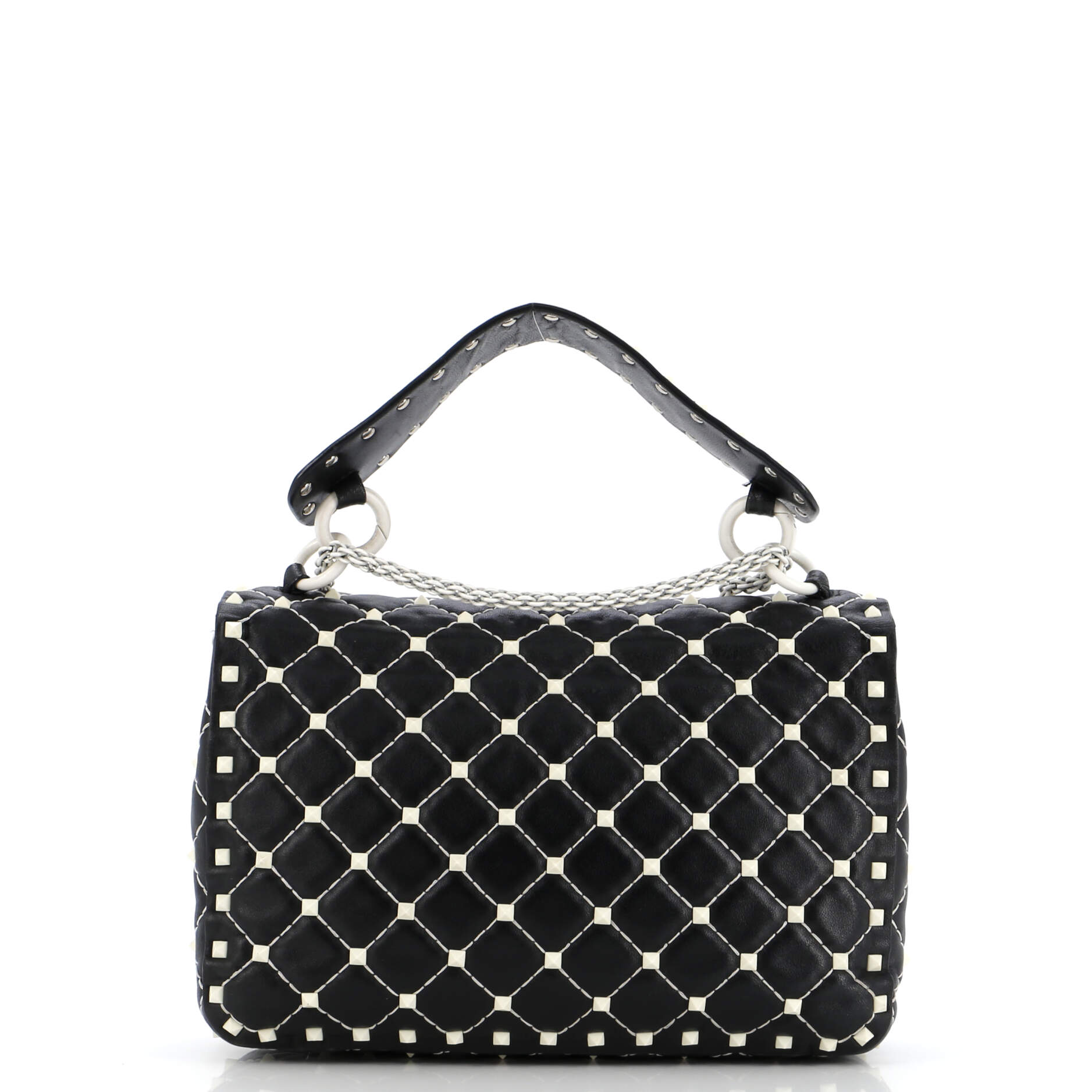 Valentino Sac à bandoulière Rockstud Spike Flap Medium en Du cuir de veau Black et Acétate. Le produit est en Parfait état (AA).
