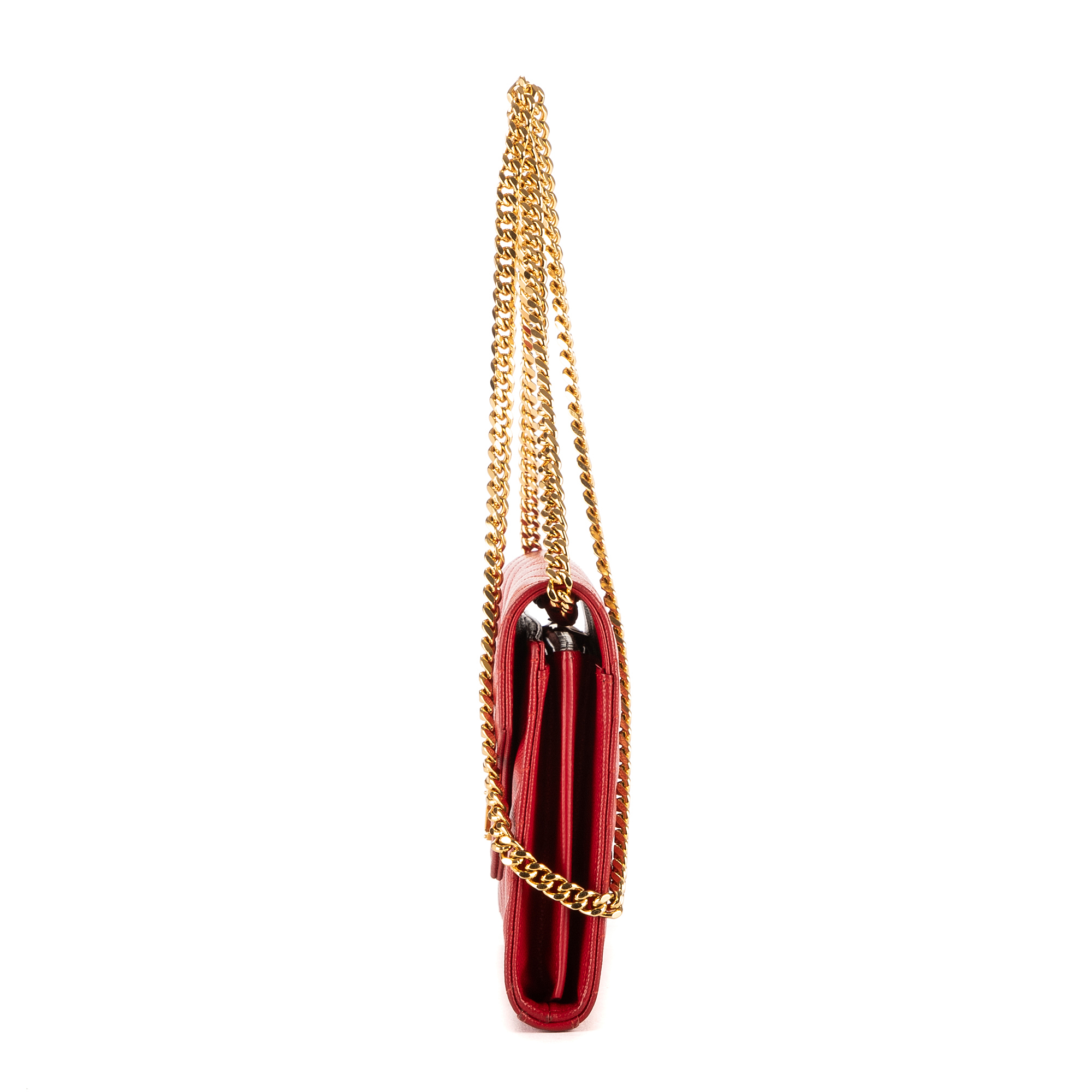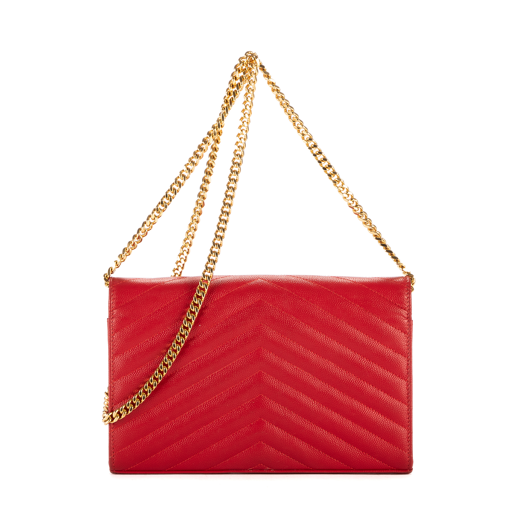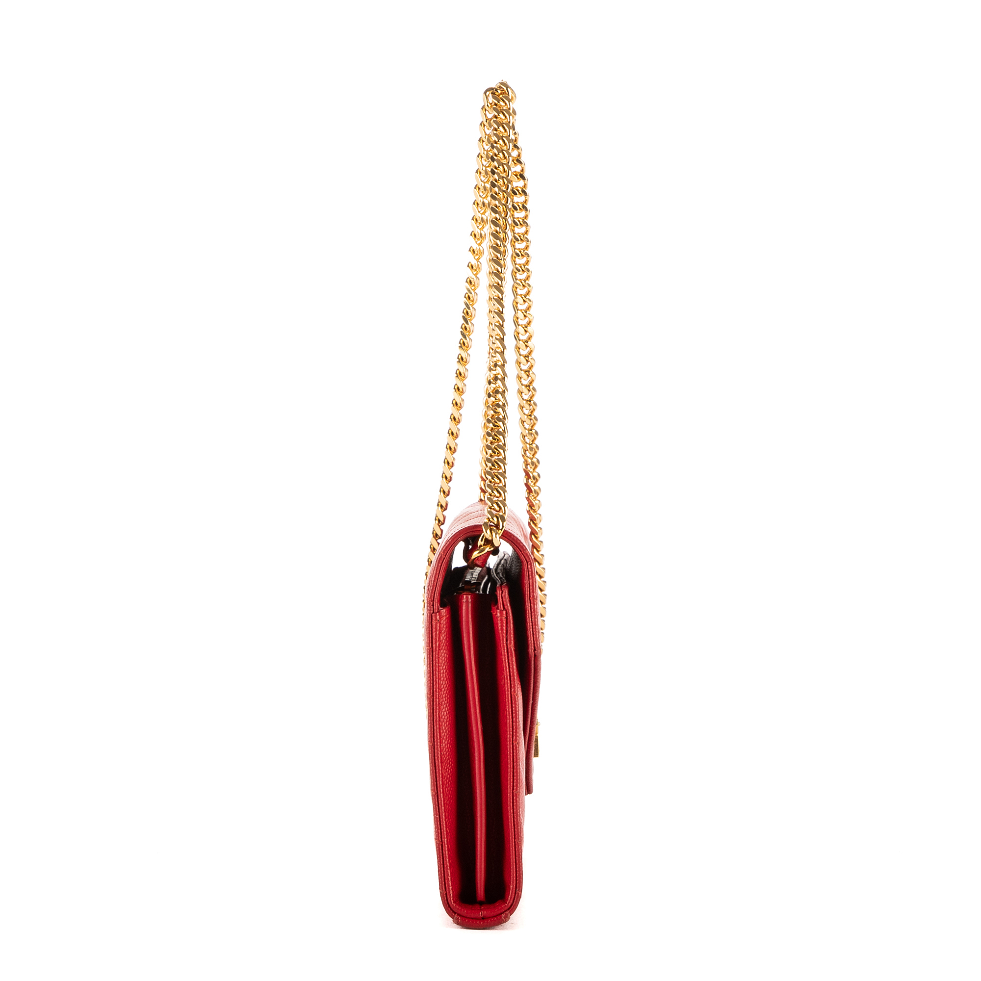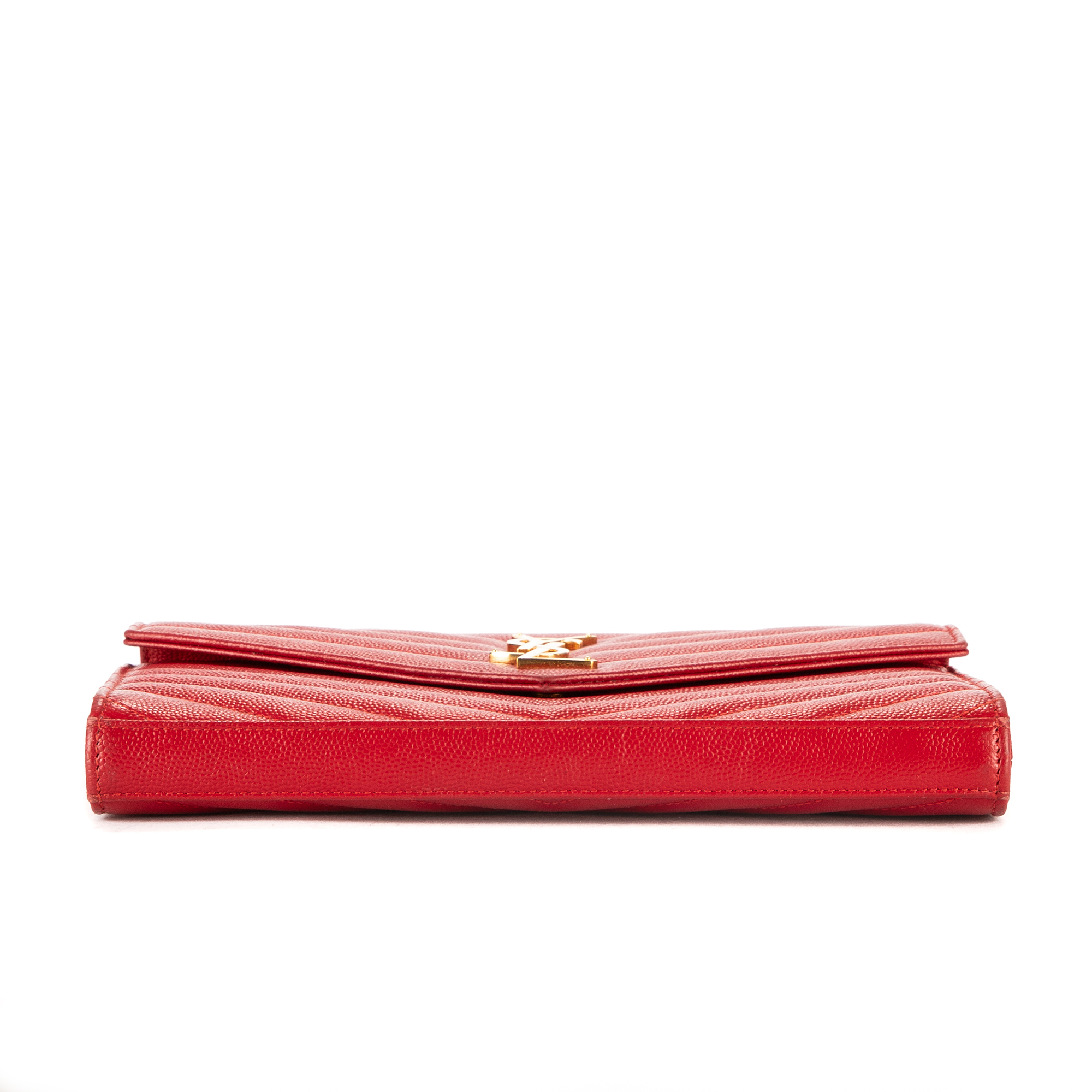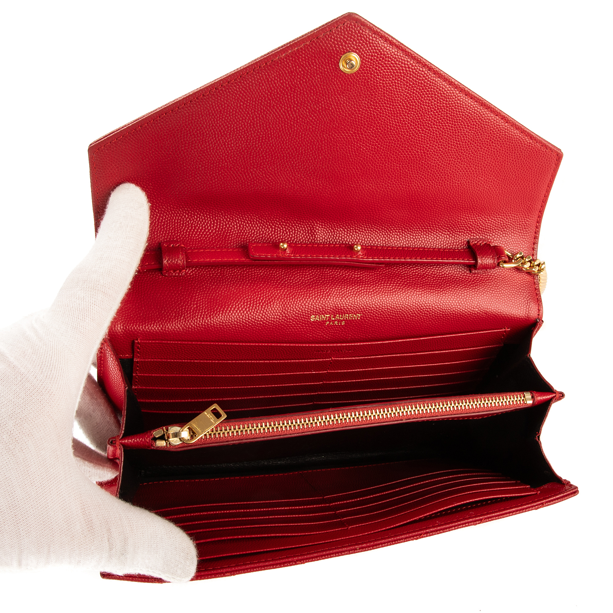 Yves Saint Laurent Sac à bandoulière Envelope Chain Wallet en Rouge et Or. Le produit est en Parfait état (AA).