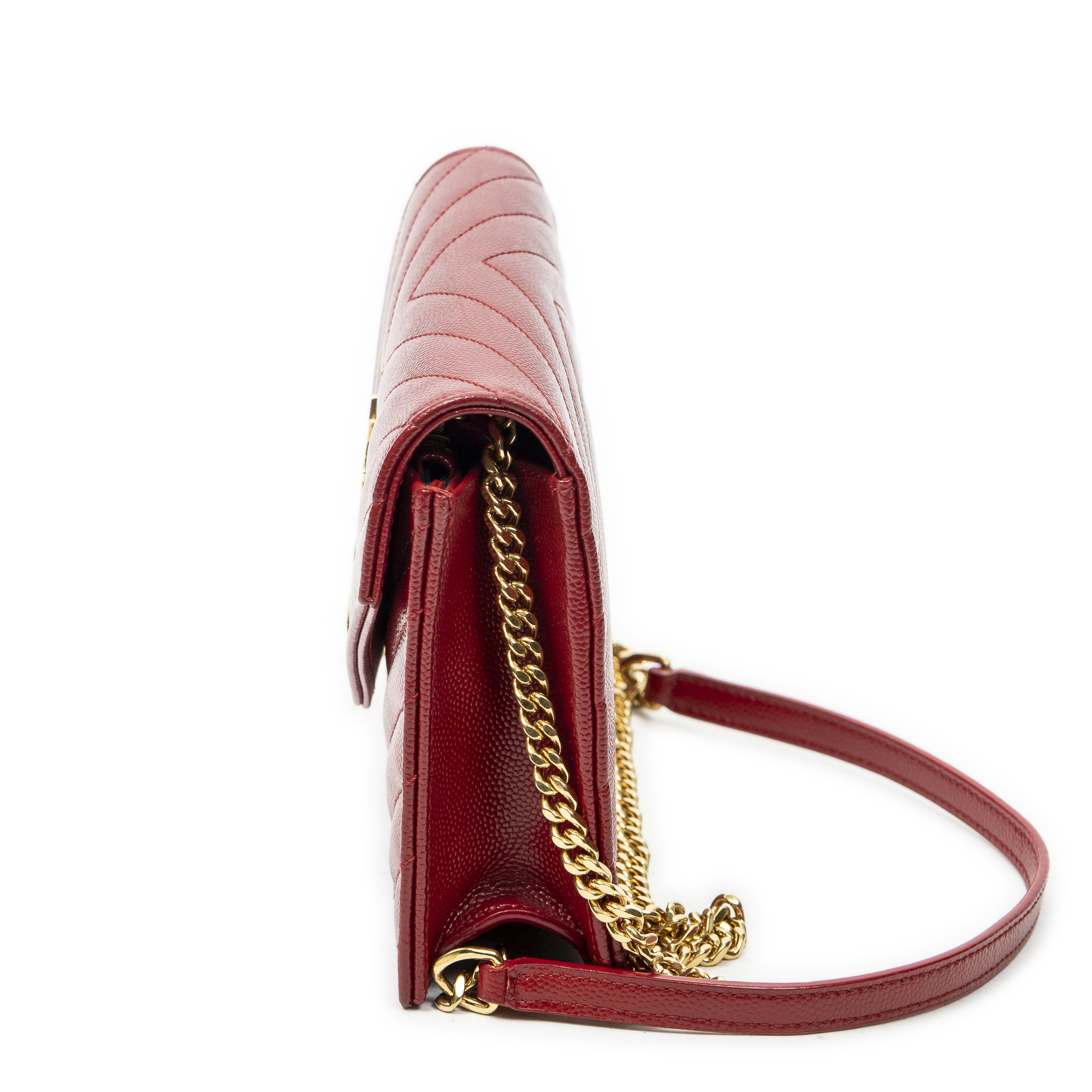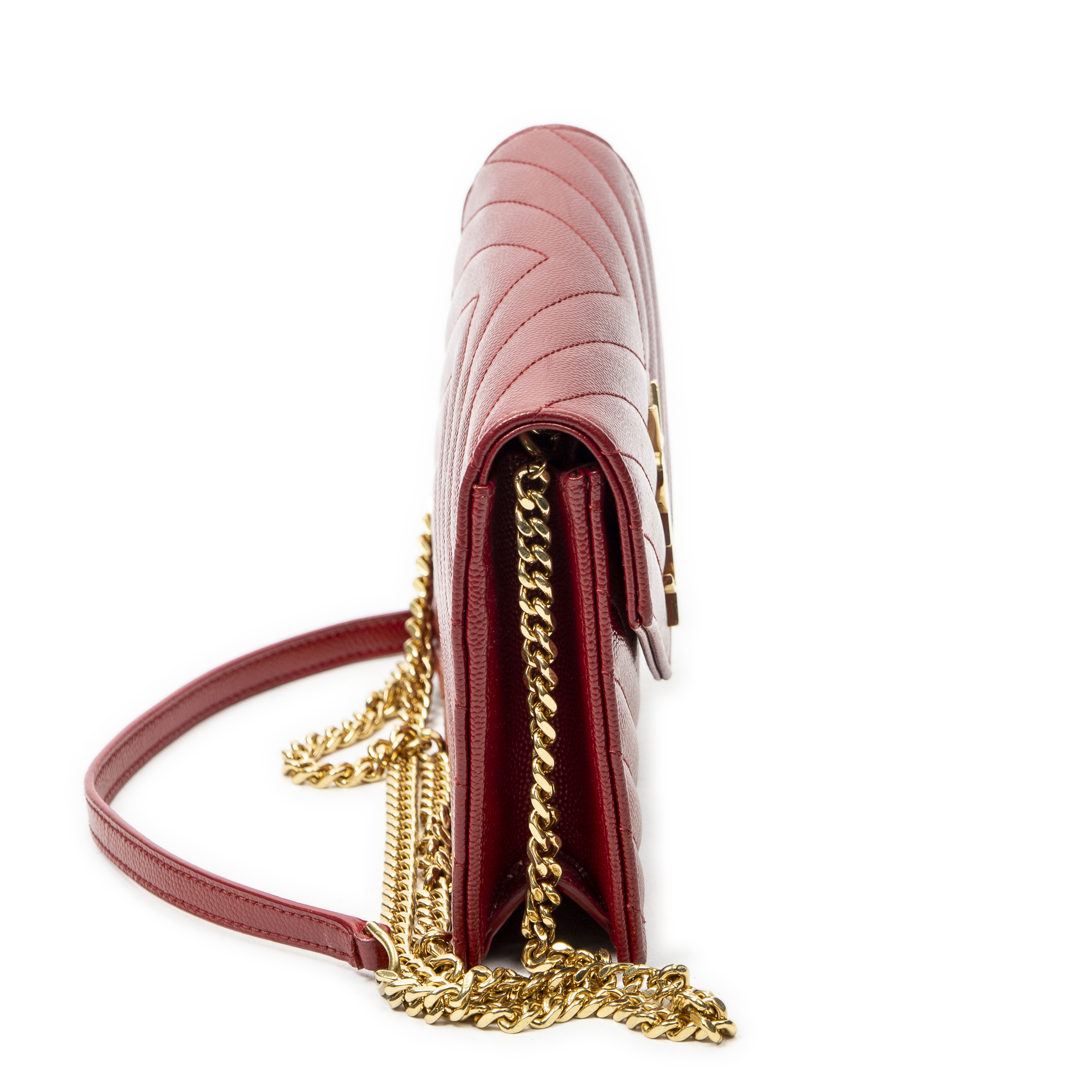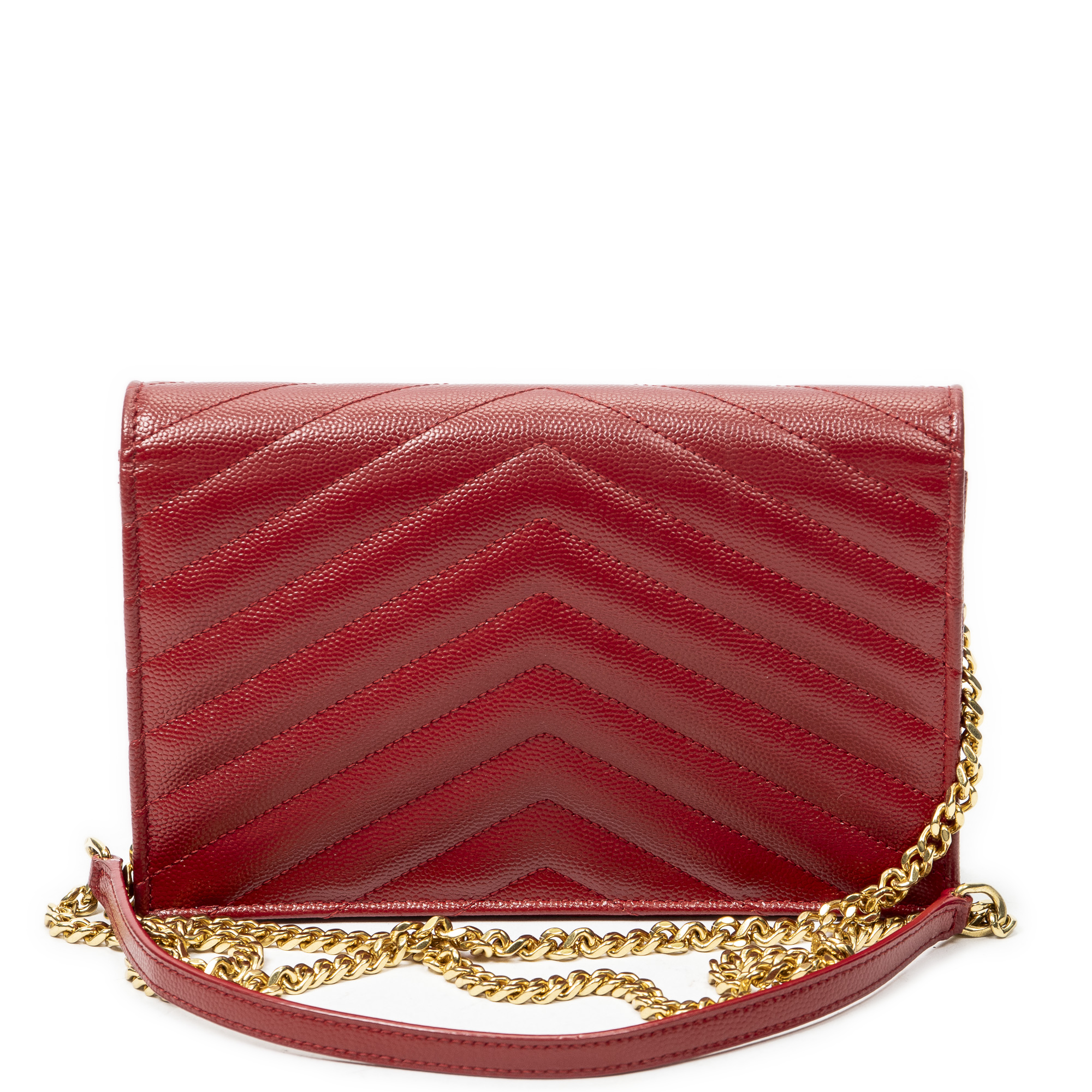 Yves Saint Laurent sac à bandoulière Envelope Wallet On Chain en Red et or. Le produit est en Parfait état (AA).