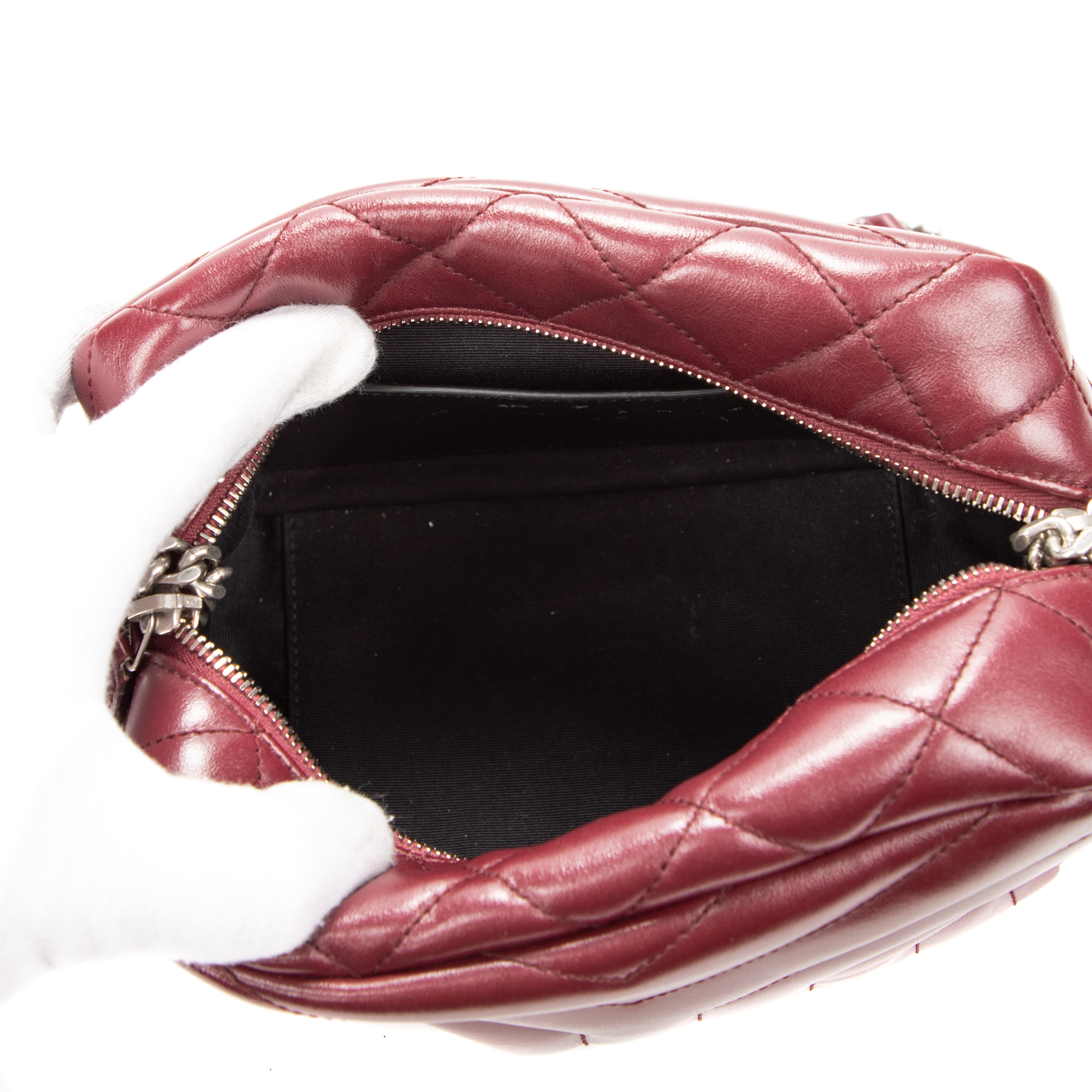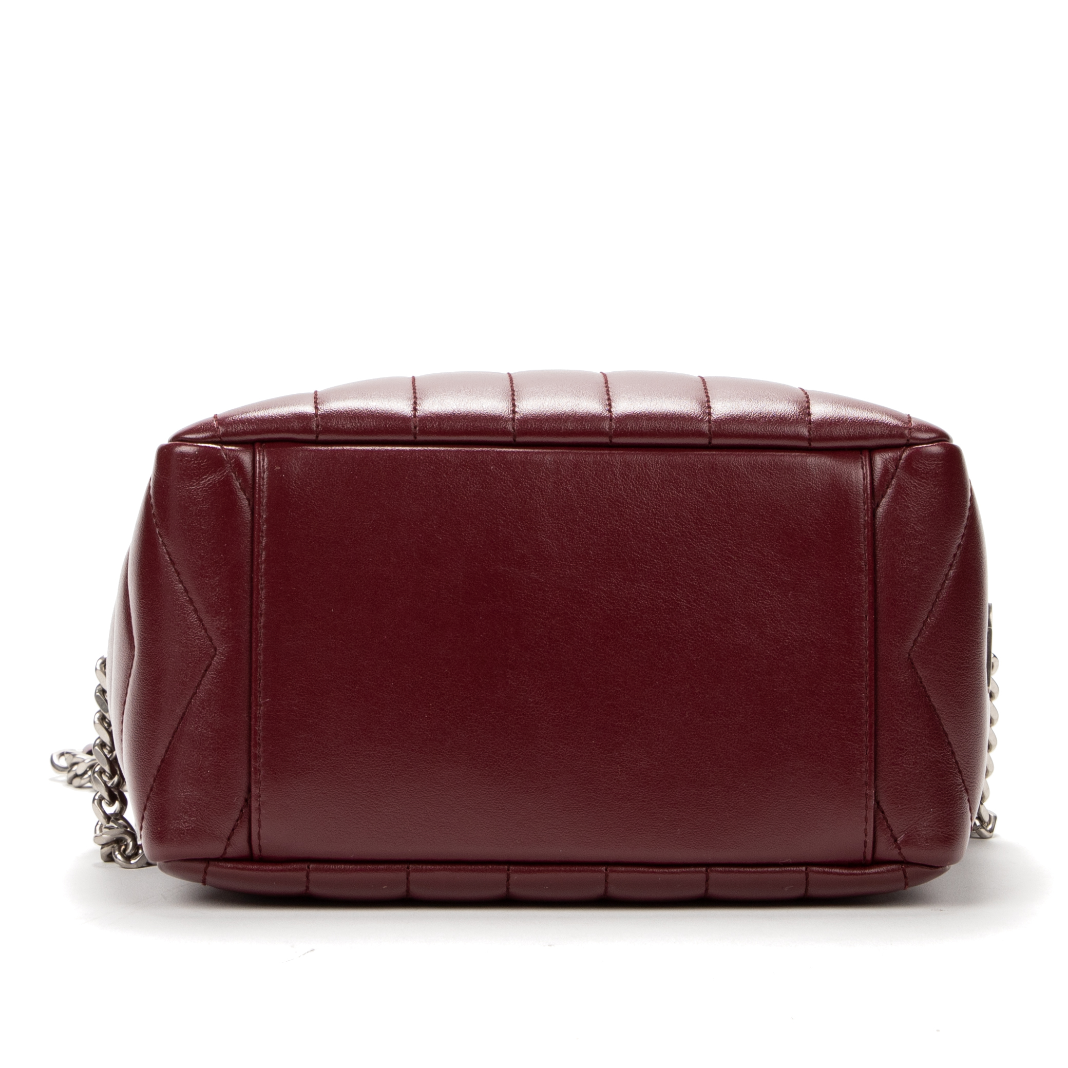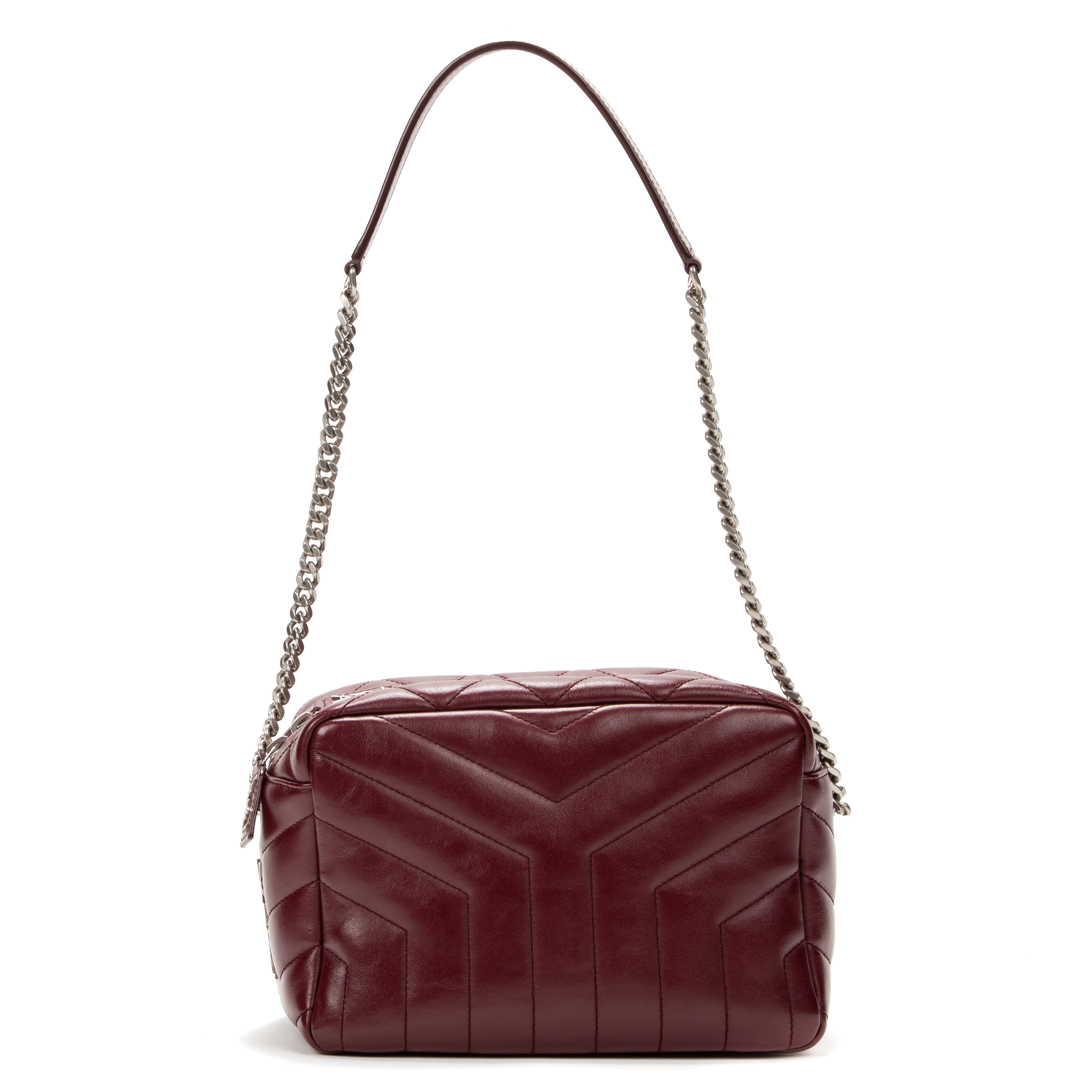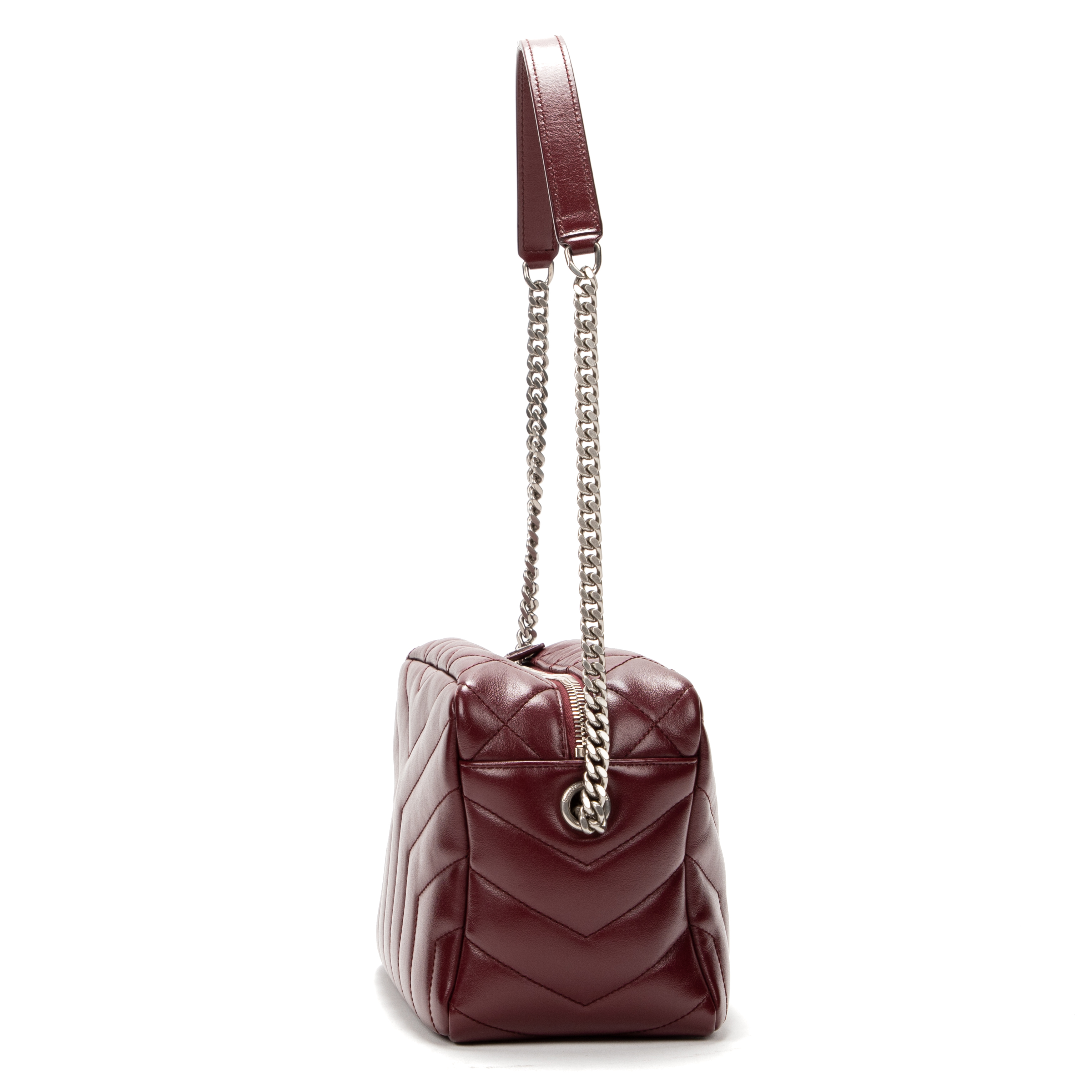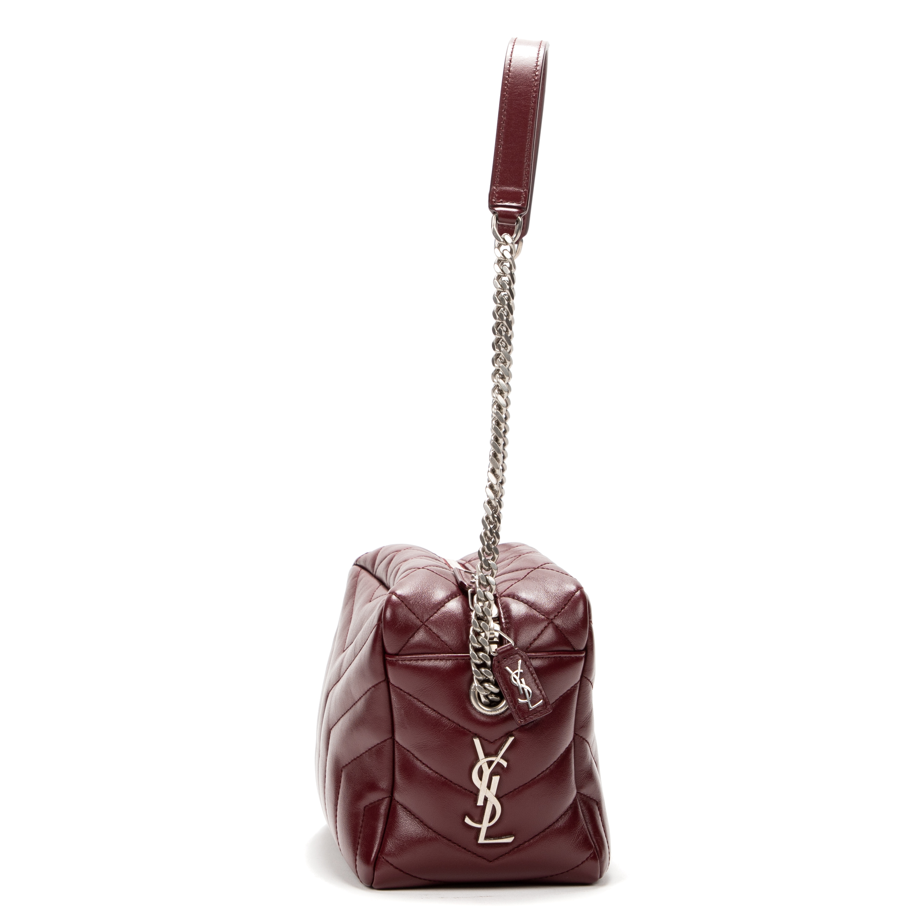 Yves Saint Laurent Sac à bandoulière Forme en Du cuir de veau Bordeaux et Argent. Le produit est en Excellent état (A).