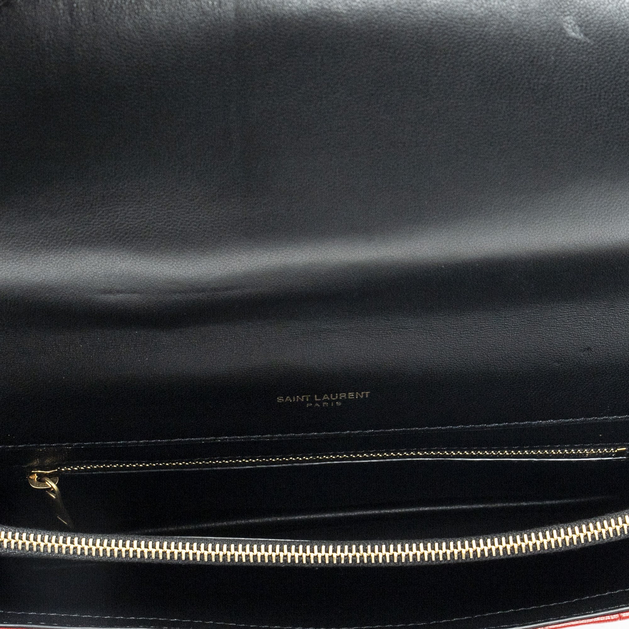 Yves Saint Laurent Sac à bandoulière Gaby Envelope Satchel en Du cuir de veau Rouge/Noir et Gold. Le produit est en Excellent état (A).