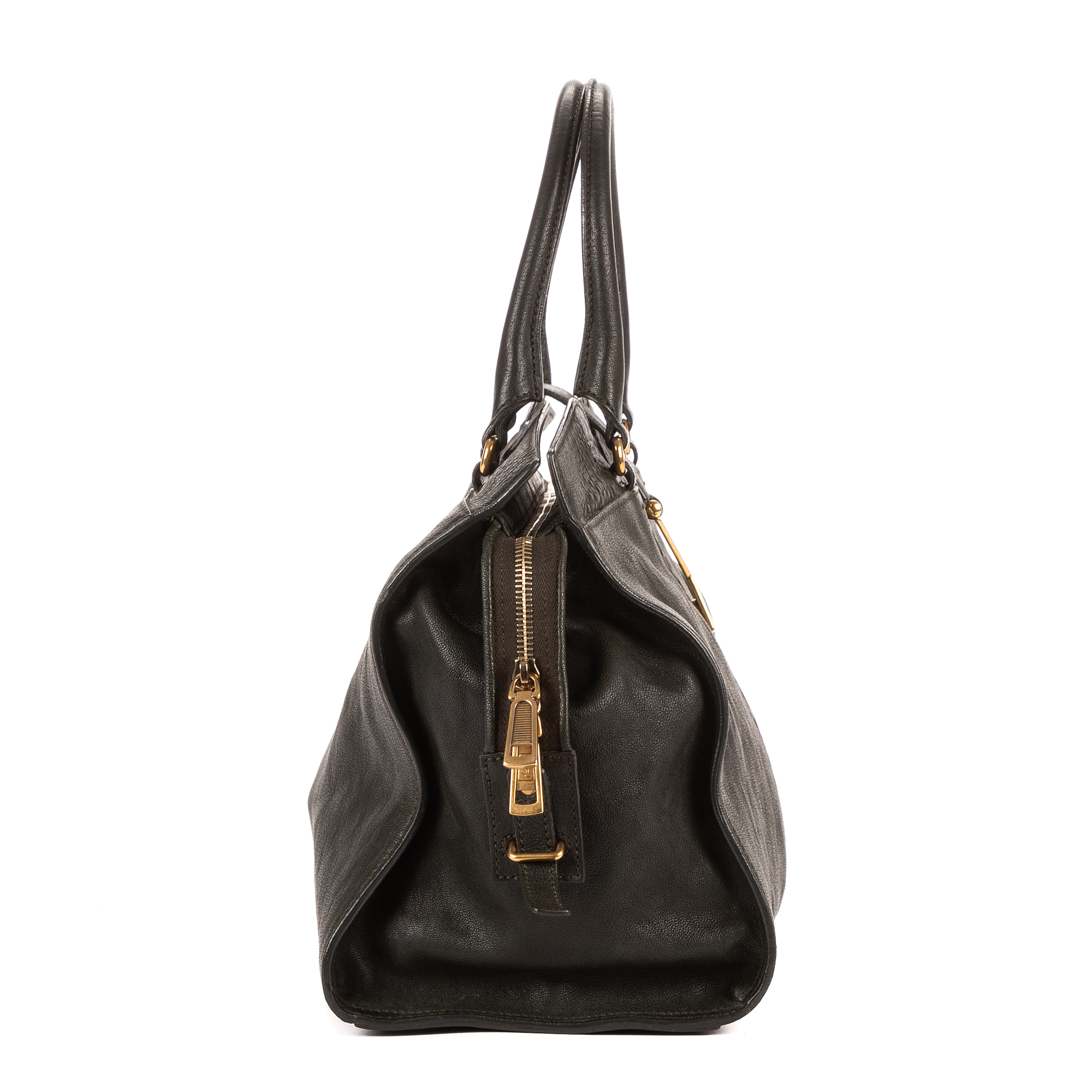 Yves Saint Laurent Sac à bandoulière Medium Cabas Chyc en Vert foncé et Gold. Le produit est en Excellent état (A).
