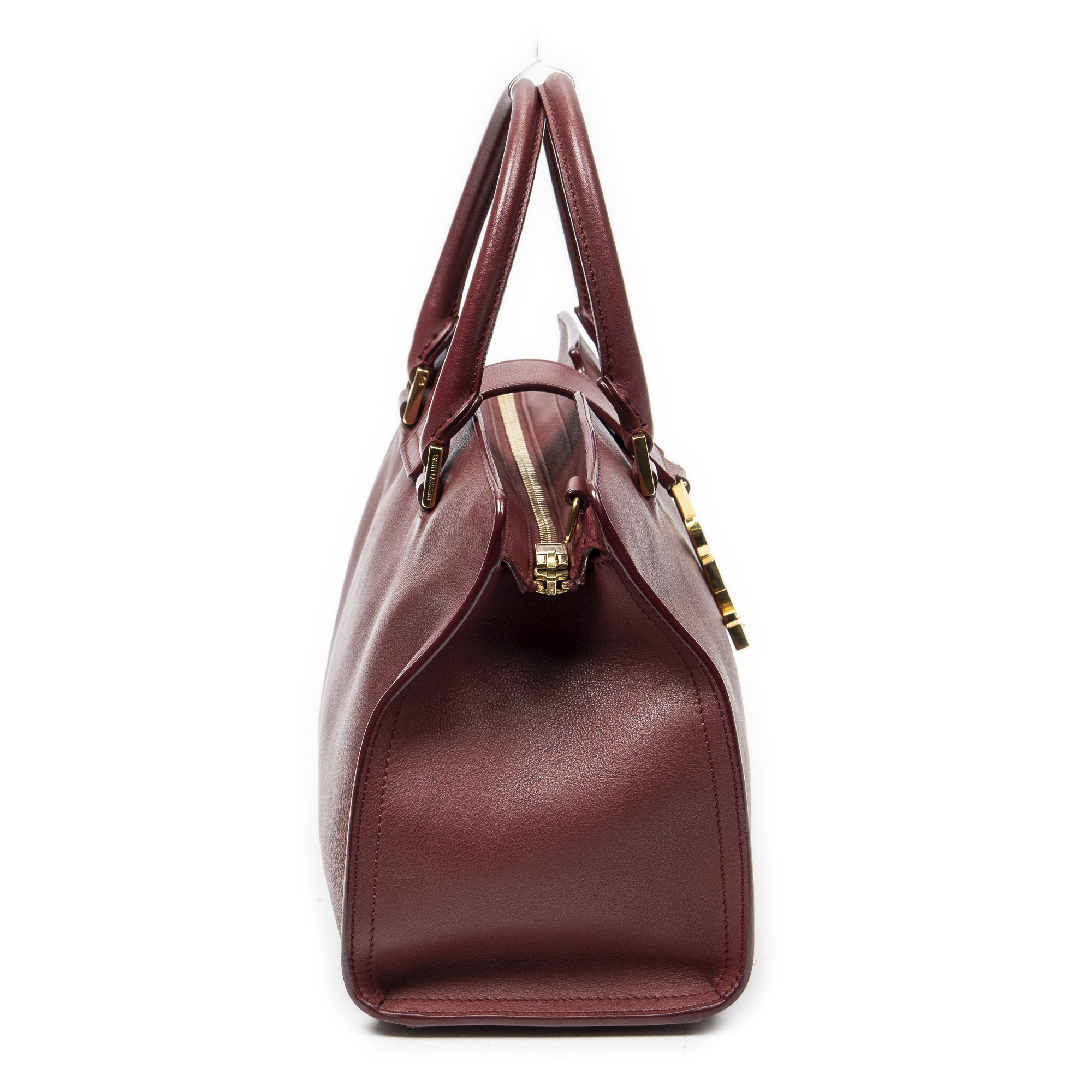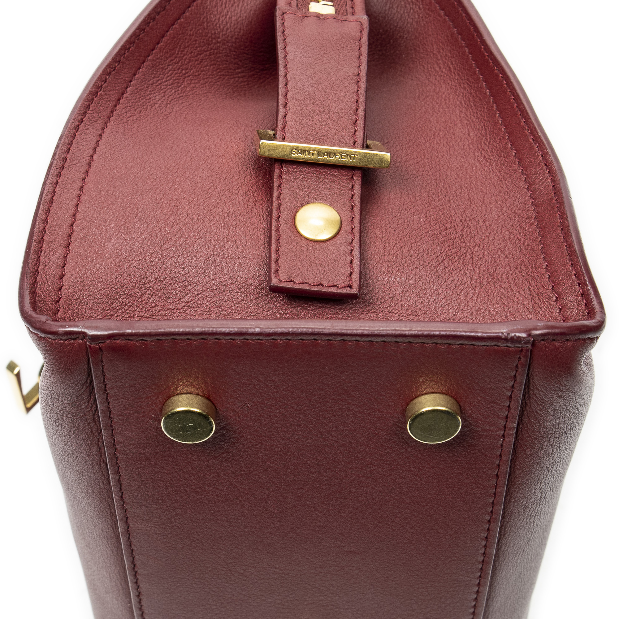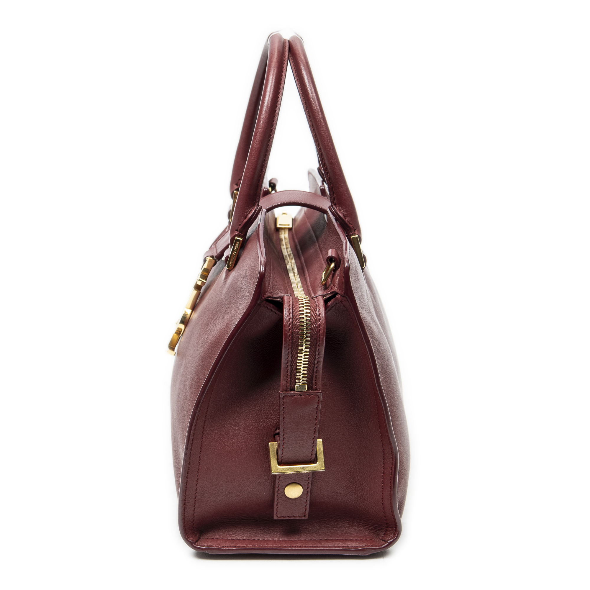 Yves Saint Laurent Sac à bandoulière Monogram Baby Cabas en Du cuir de veau Bourgogne et Gold. Le produit est en Excellent état (A).