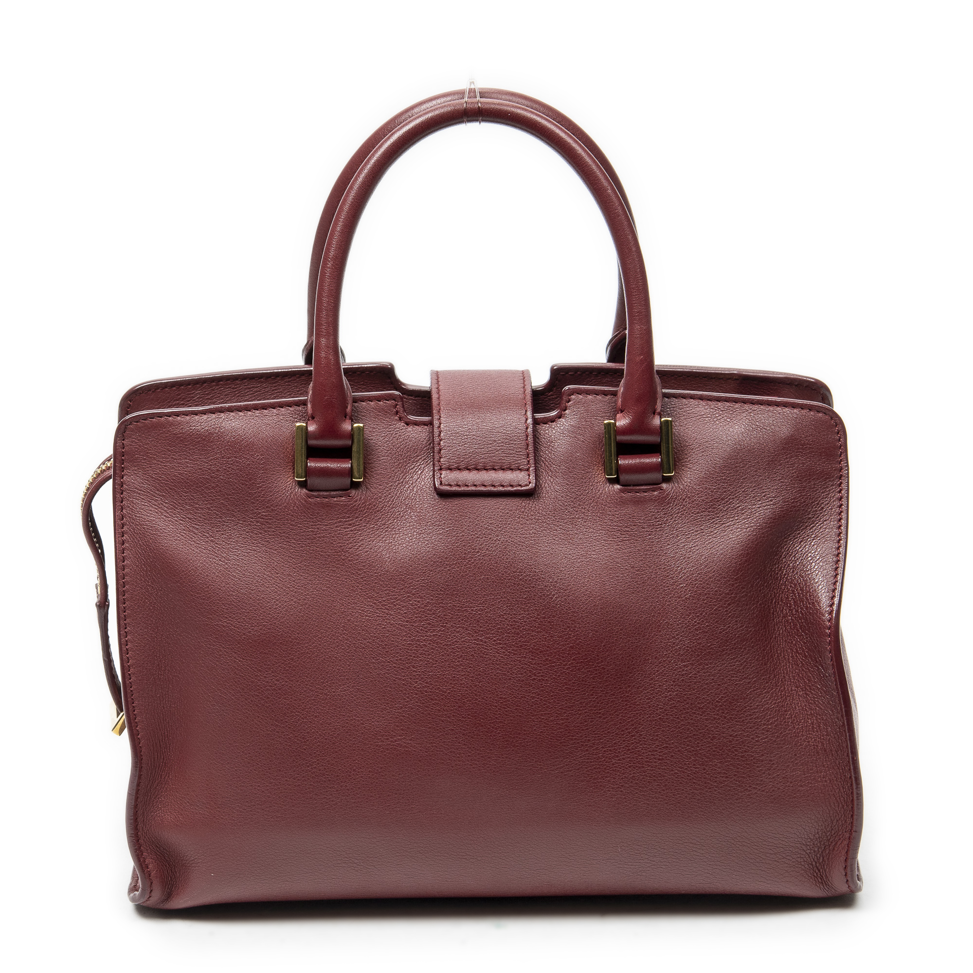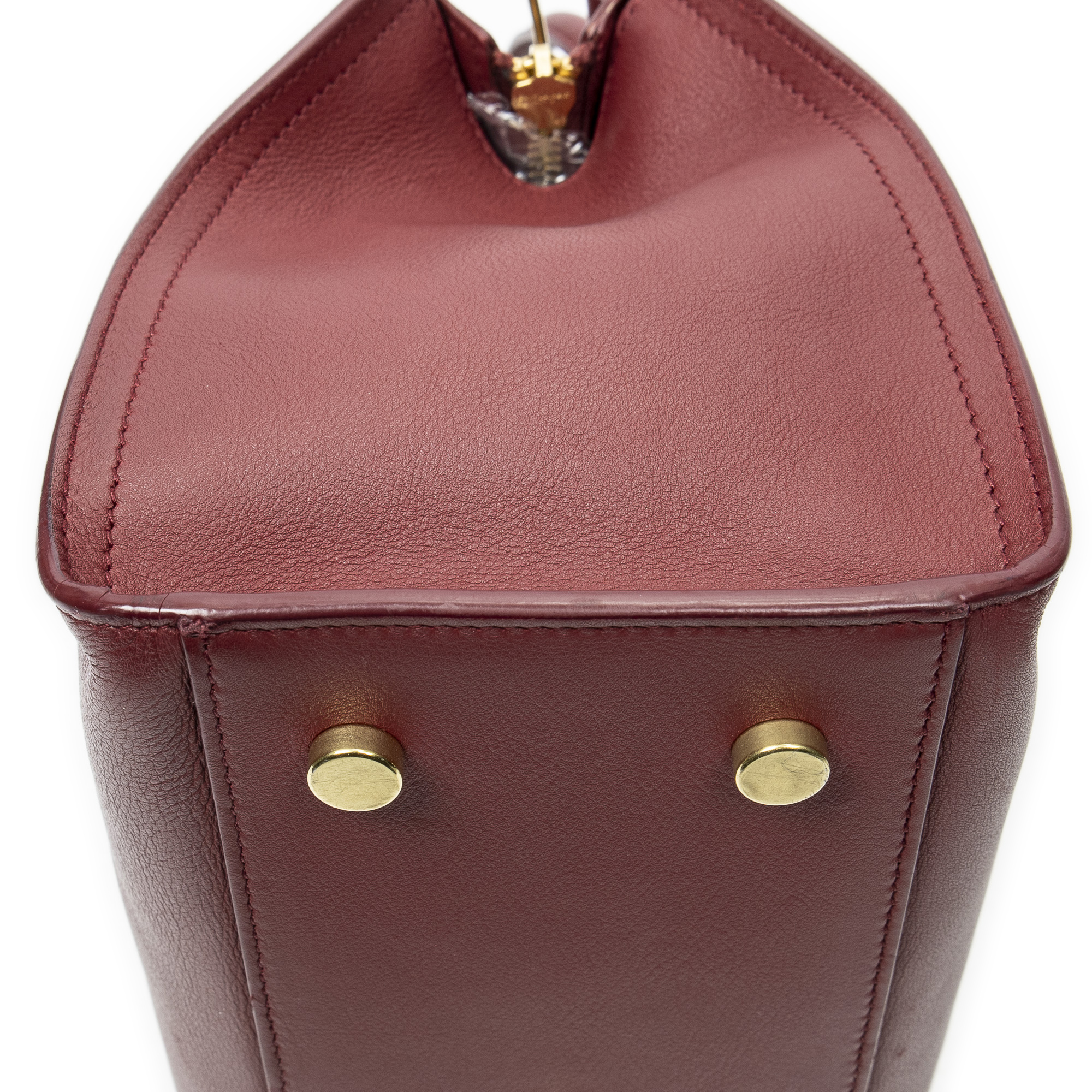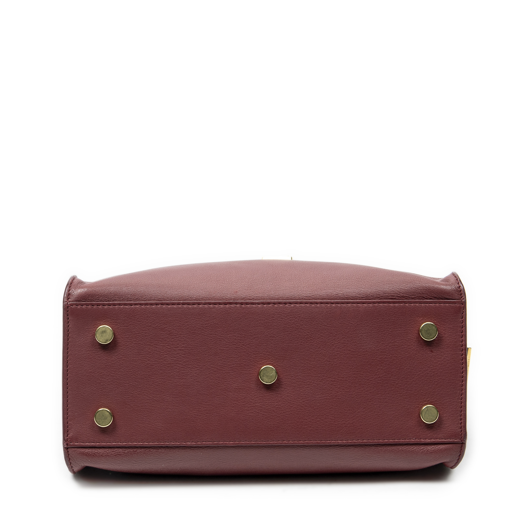 Yves Saint Laurent Sac à bandoulière Monogram Baby Cabas en Du cuir de veau Bourgogne et Gold. Le produit est en Excellent état (A).