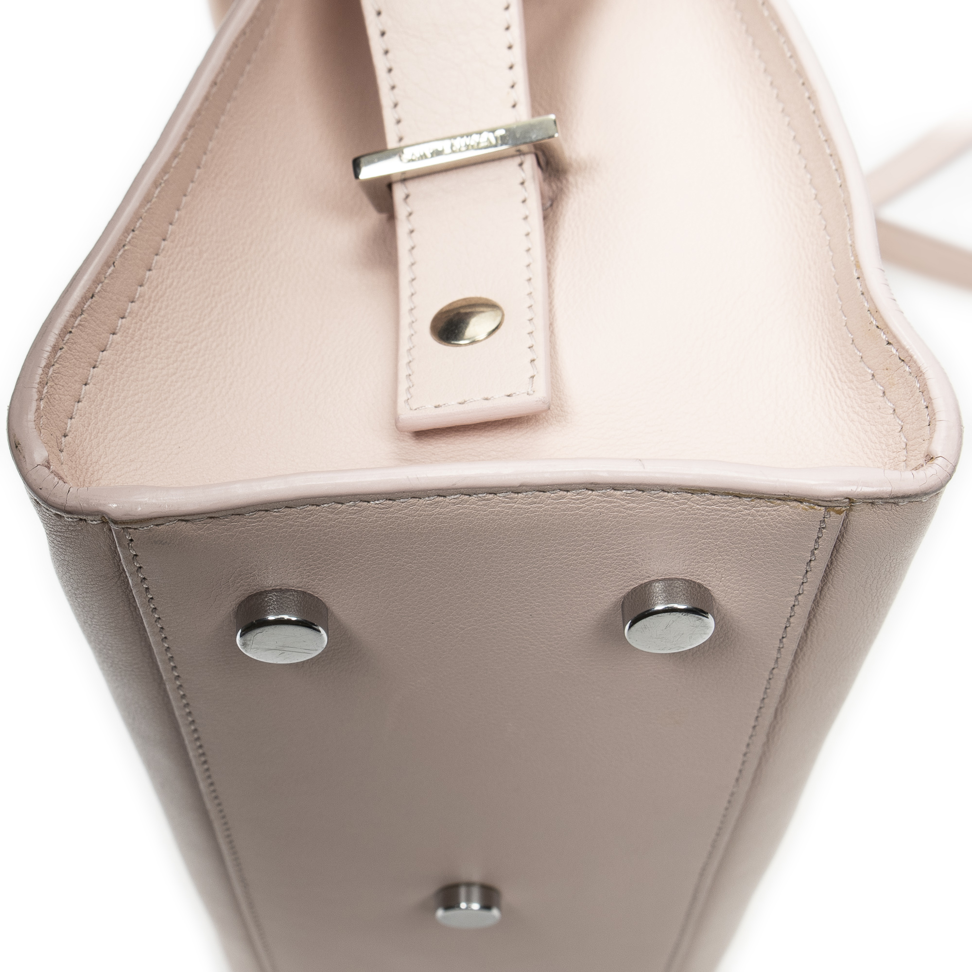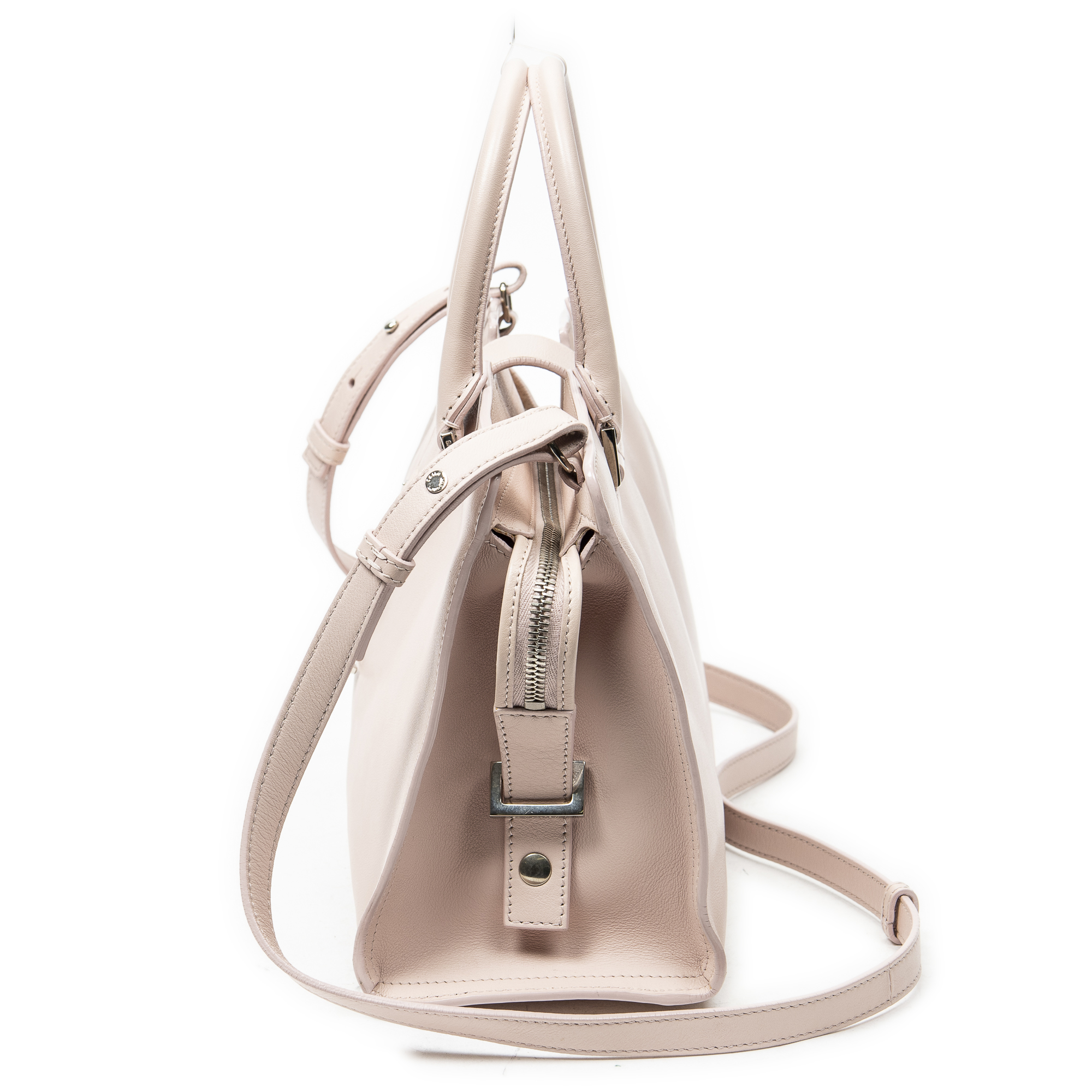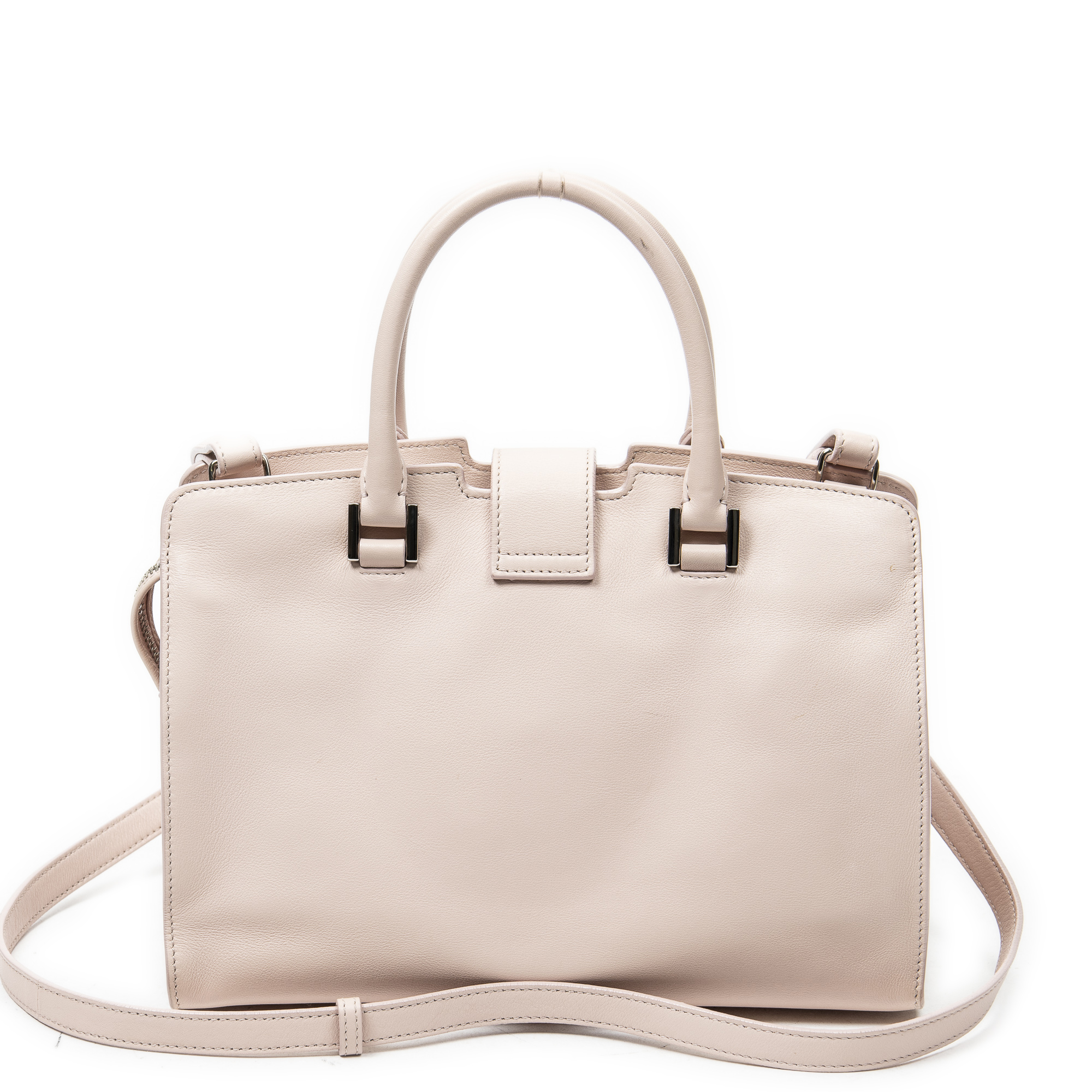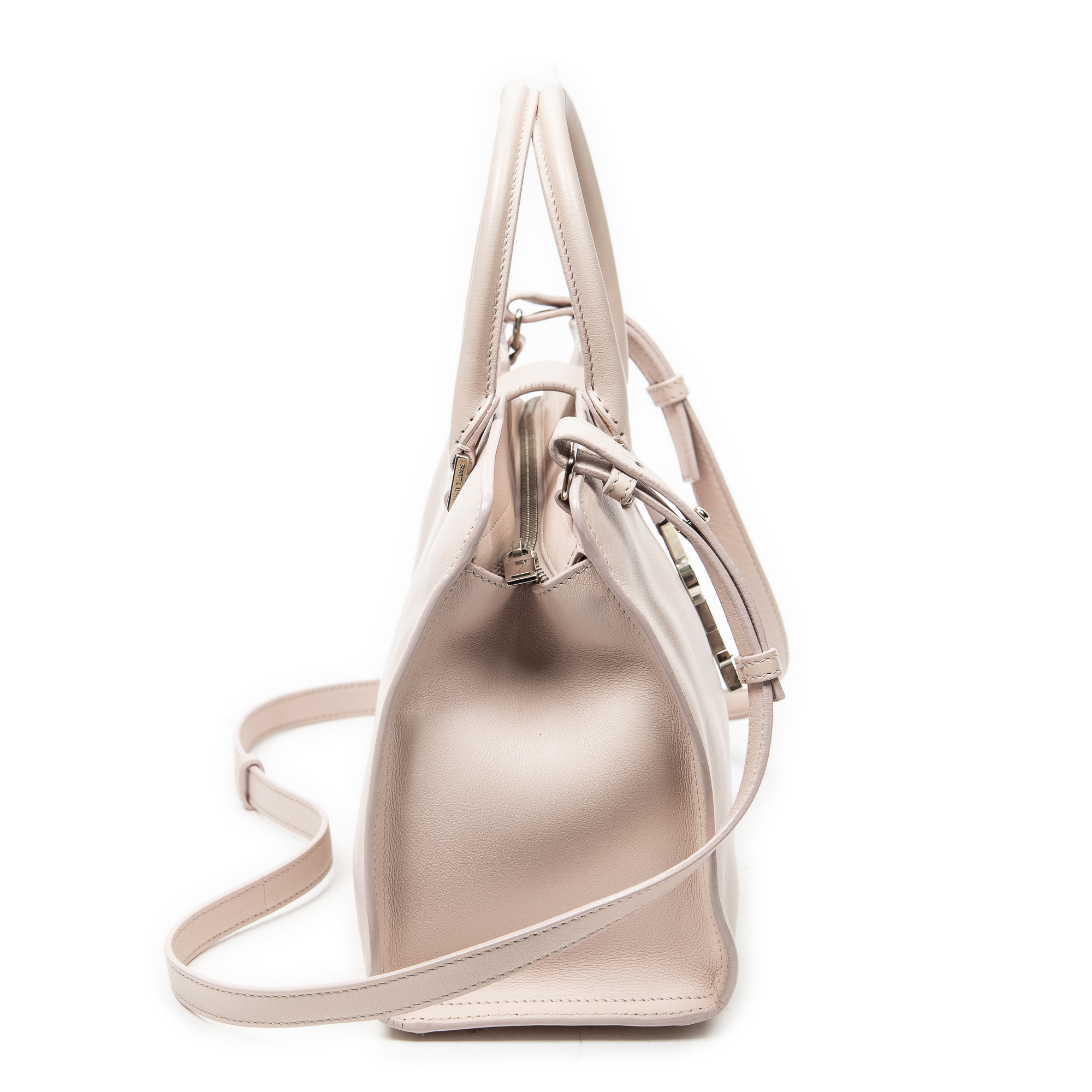Yves Saint Laurent Sac à bandoulière Monogram Baby Cabas en Du cuir de veau Rose clair et Argent. Le produit est en Excellent état (A).