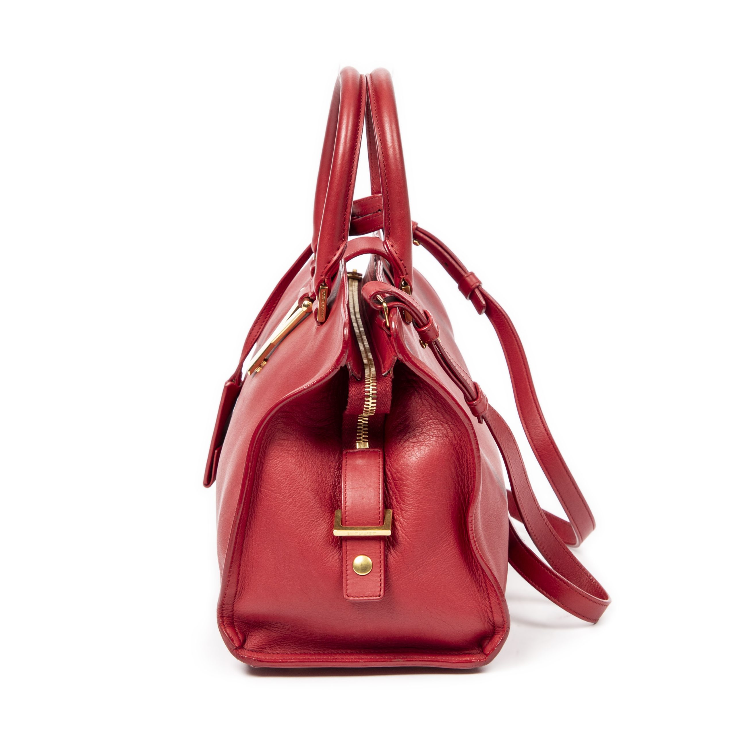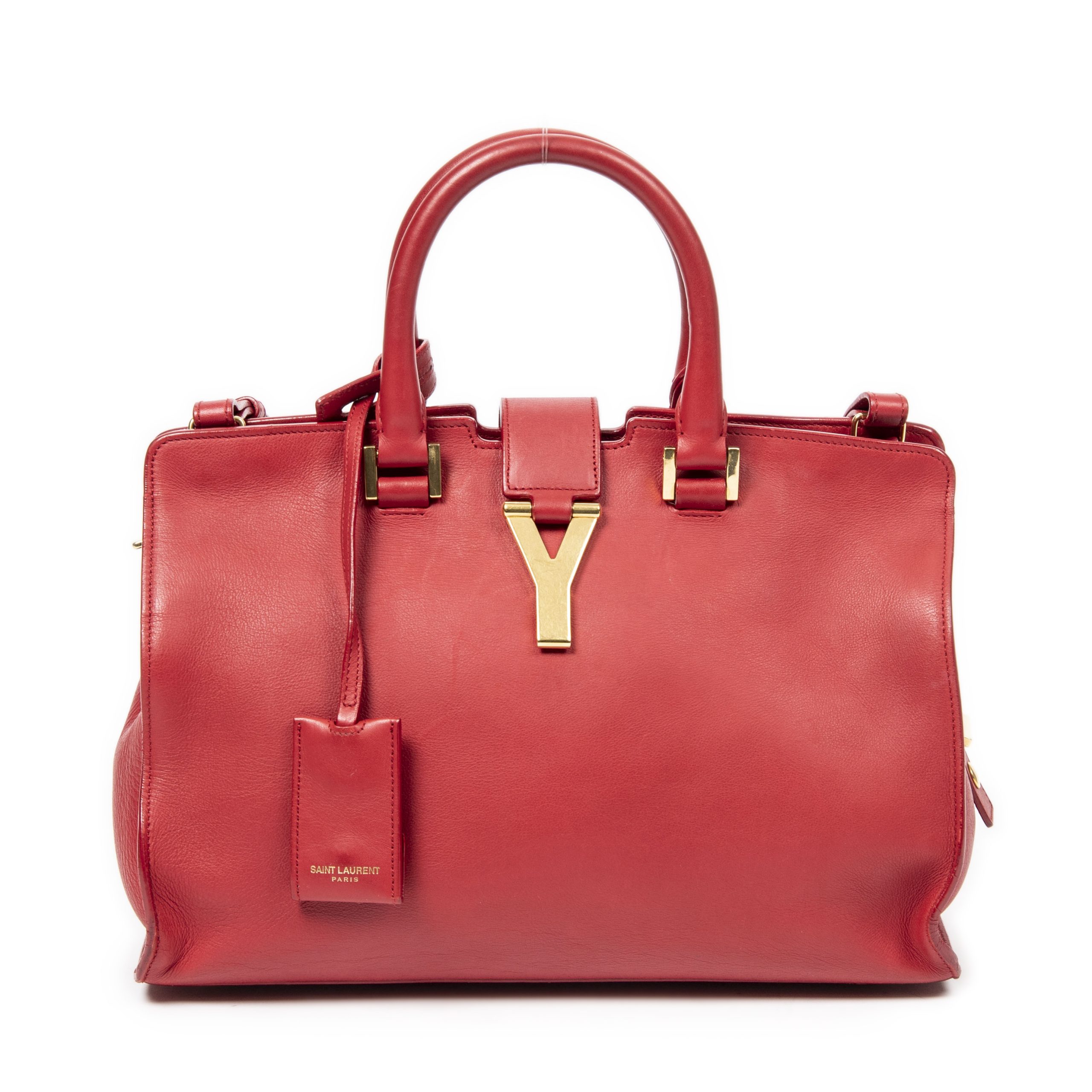 Yves Saint Laurent Sac à bandoulière Small Cabas ChYc en Rouge et Or. Le produit est en Très Bon état (AB).