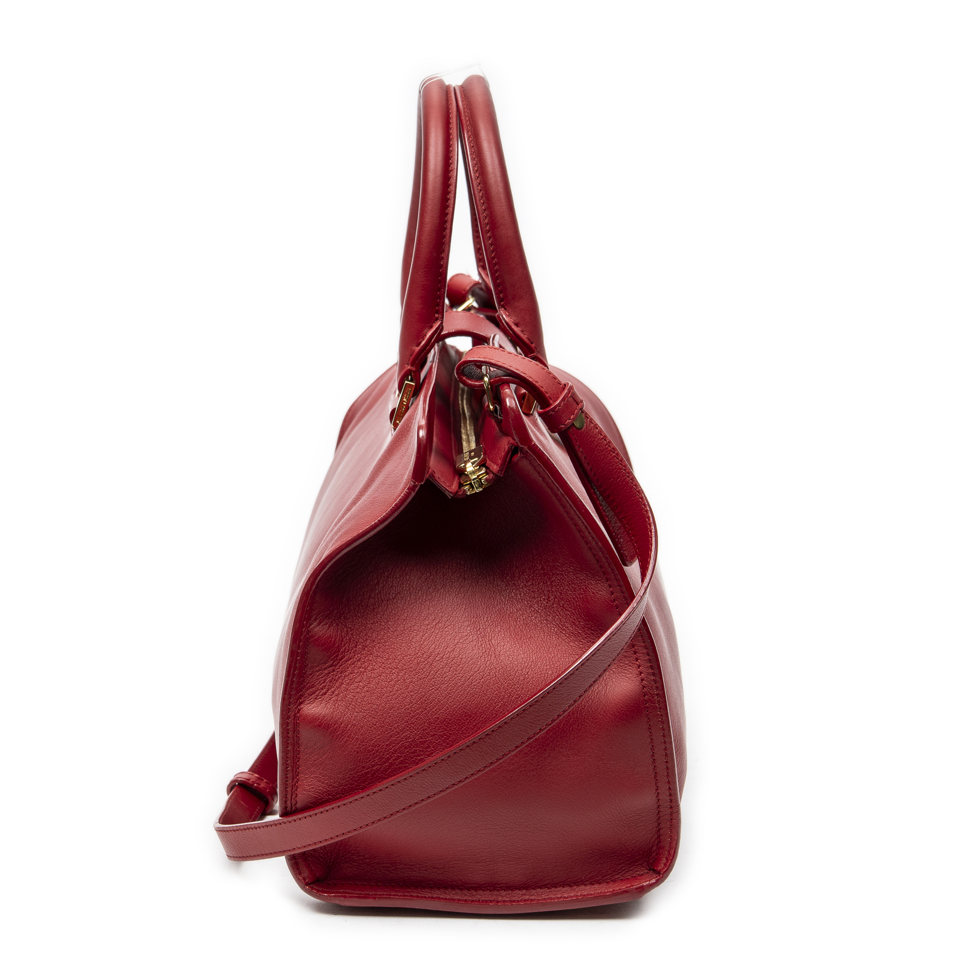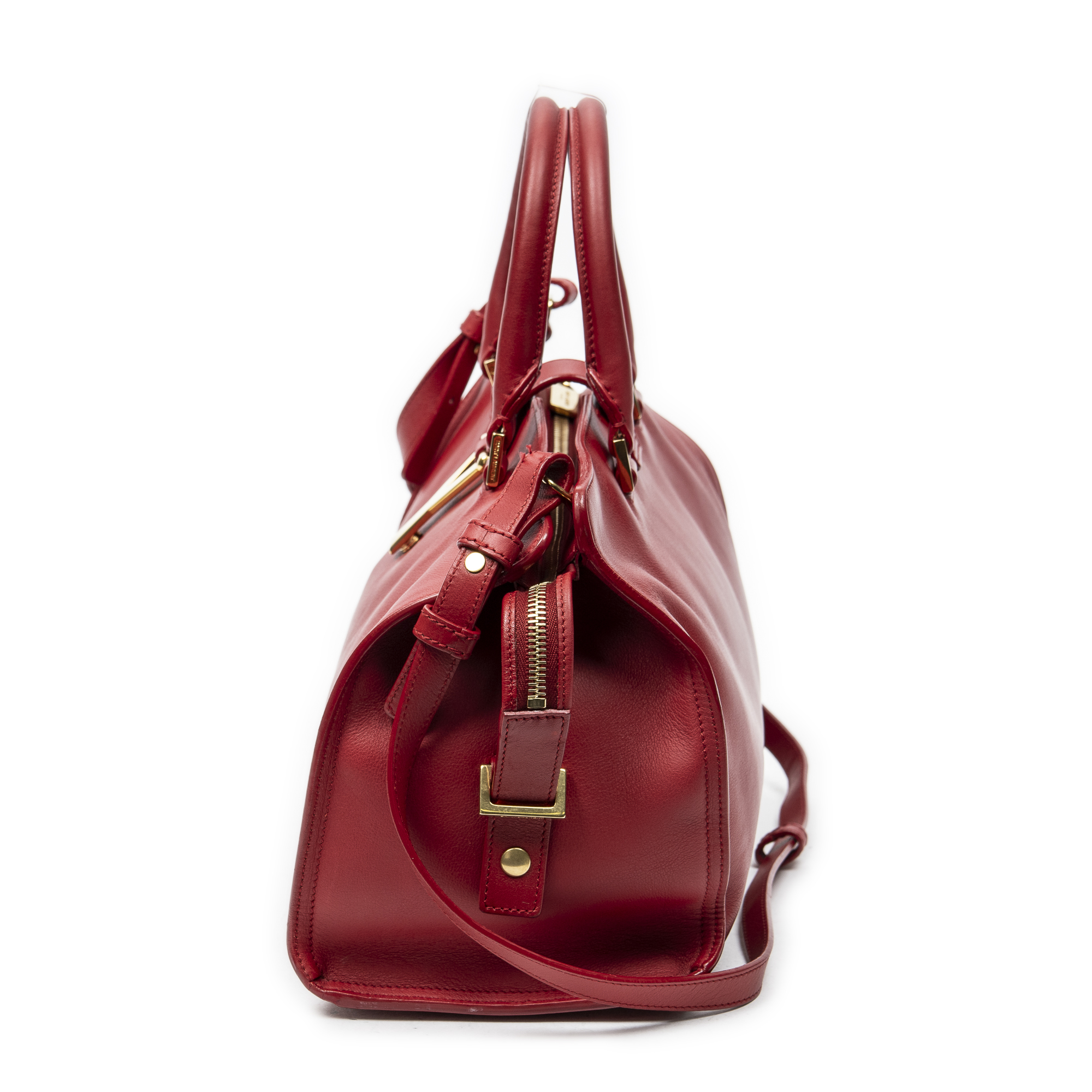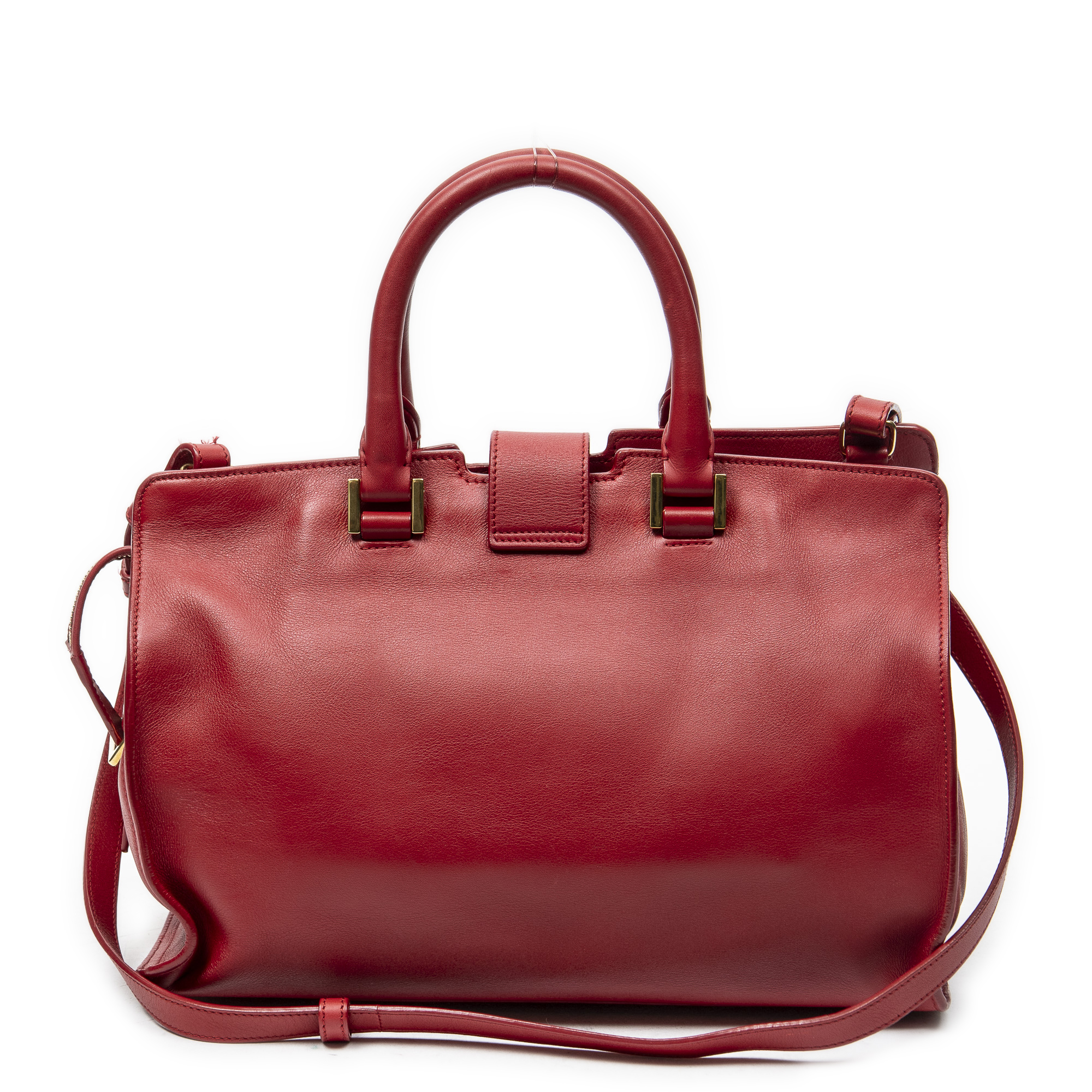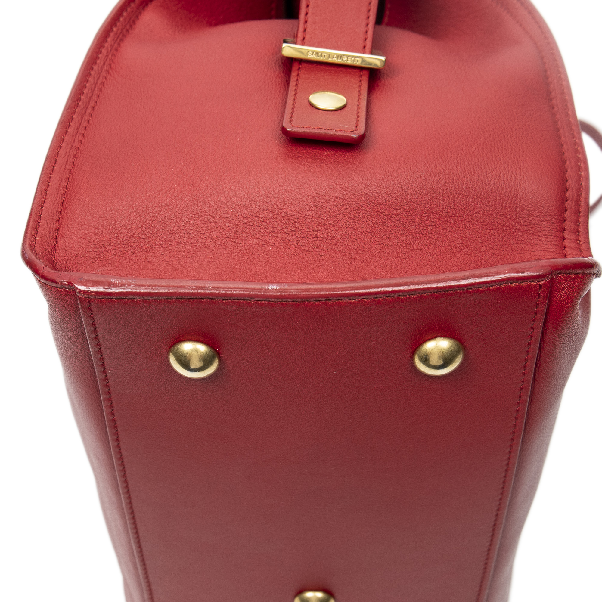 Yves Saint Laurent Sac à bandoulière Small Classic Y Cabas en Du cuir de veau Red et Gold. Le produit est en Excellent état (A).
