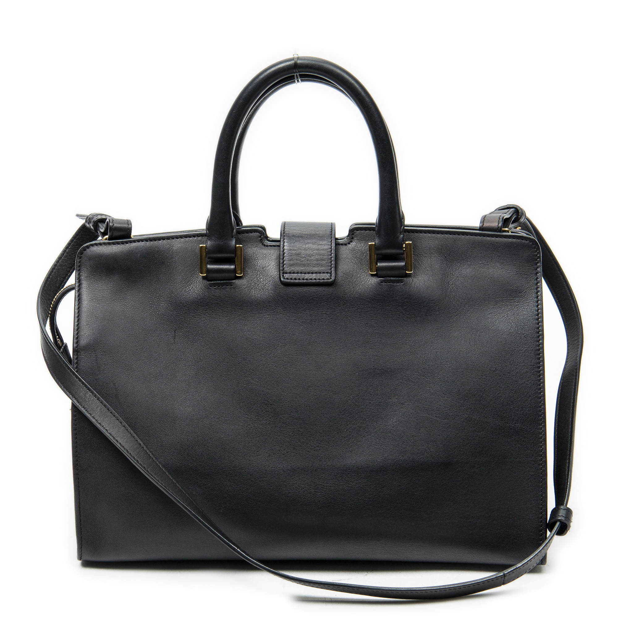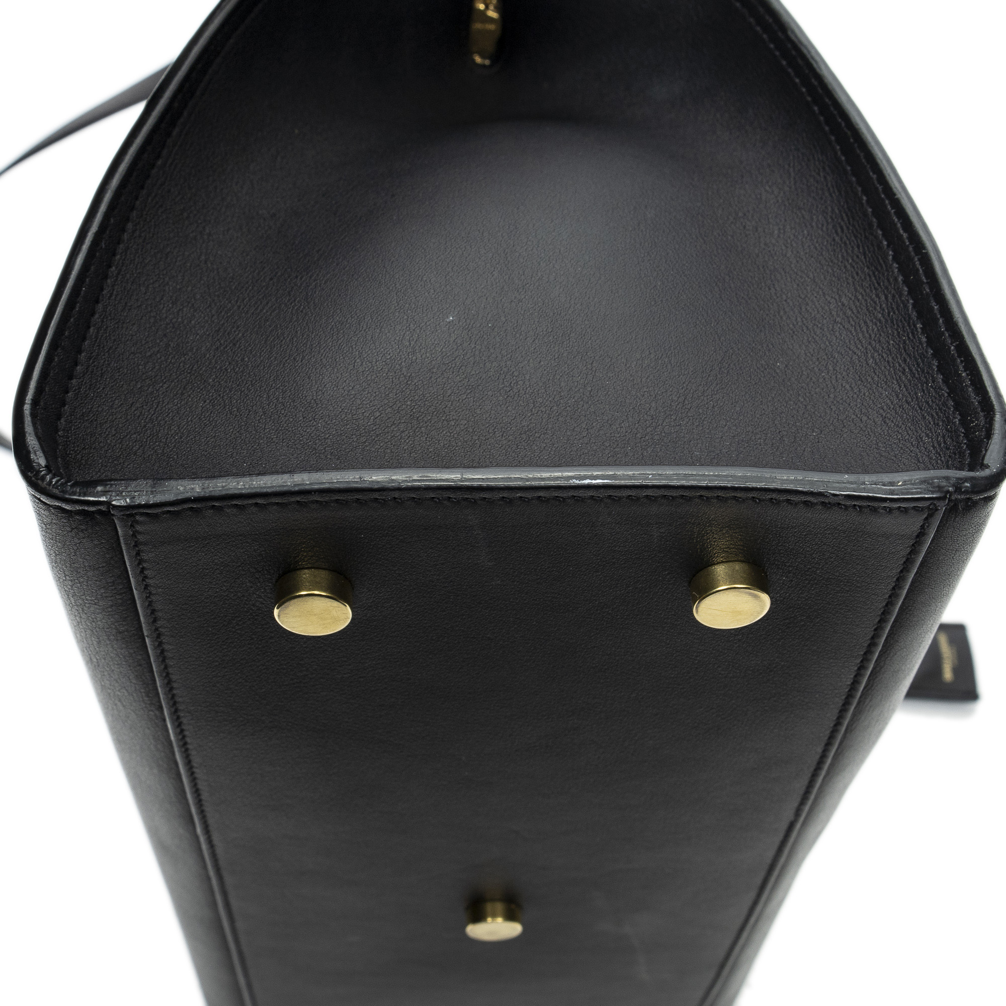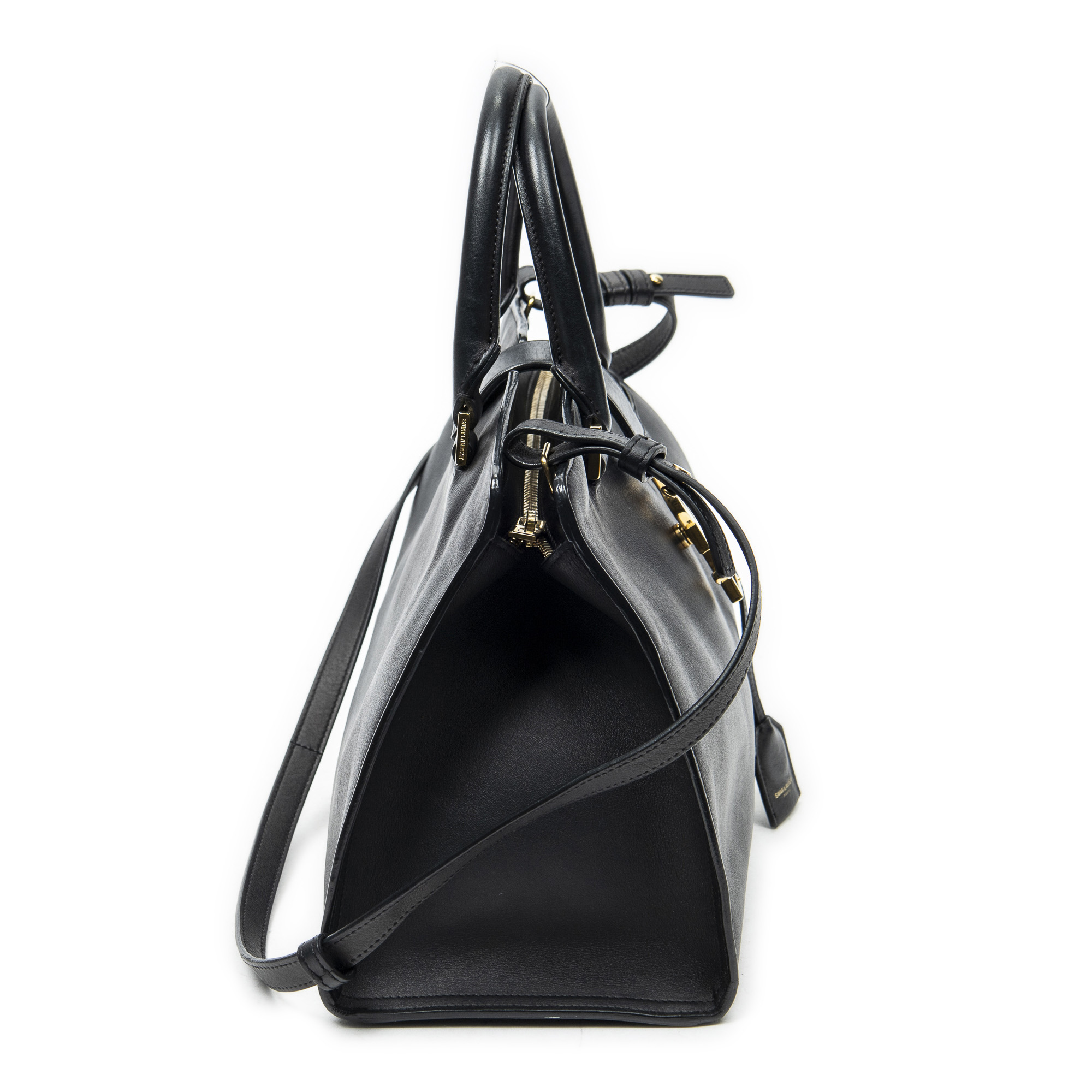 Yves Saint Laurent Sac à bandoulière Small Monogram Cabas en Du cuir de veau Black et Gold. Le produit est en Excellent état (A).