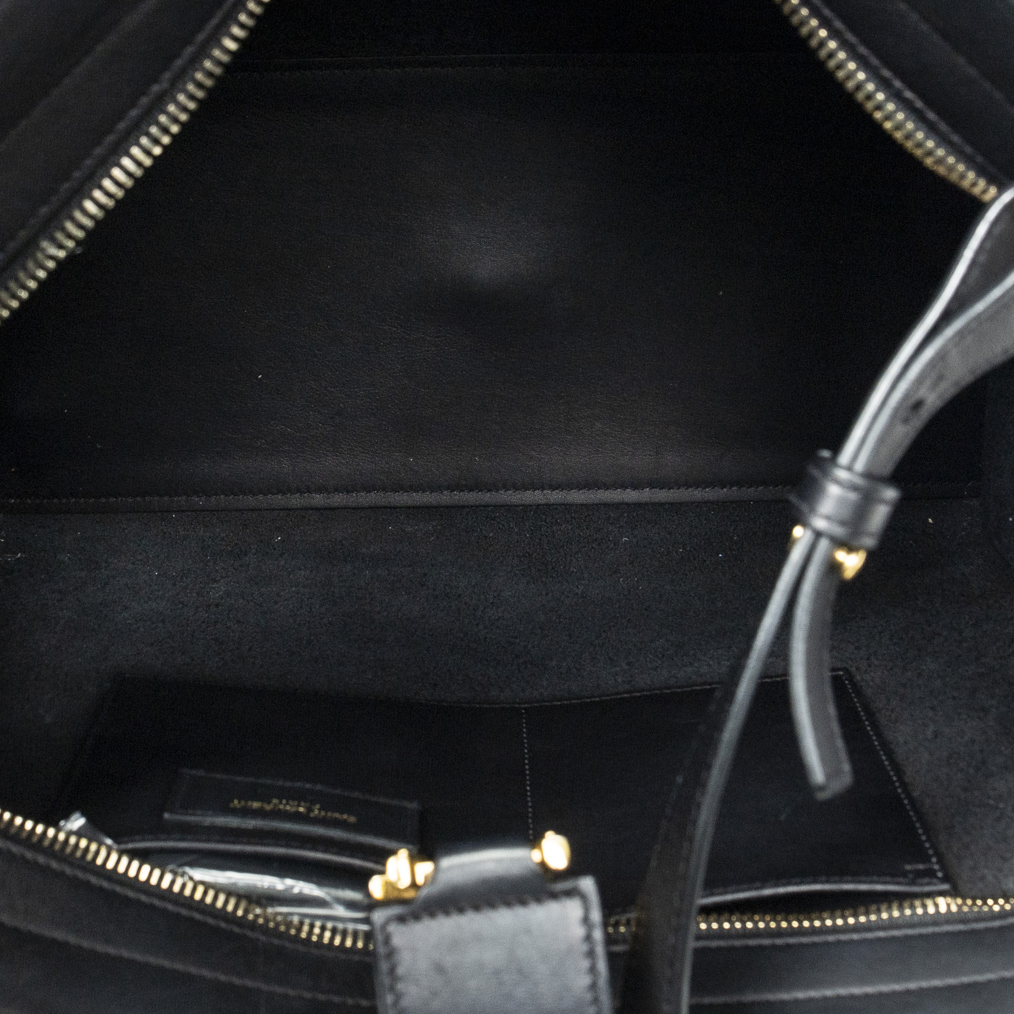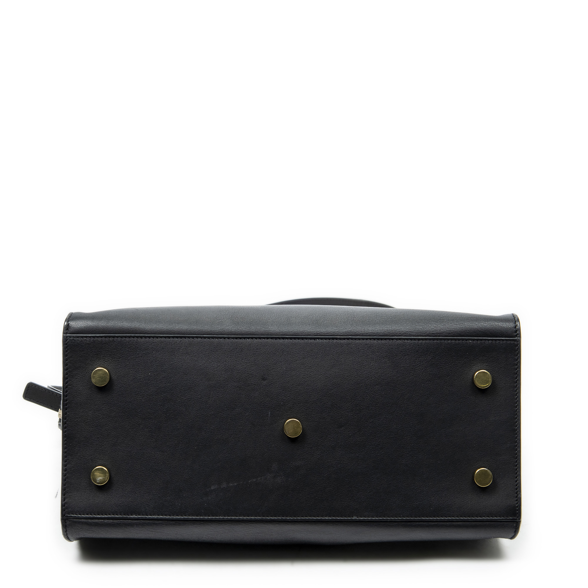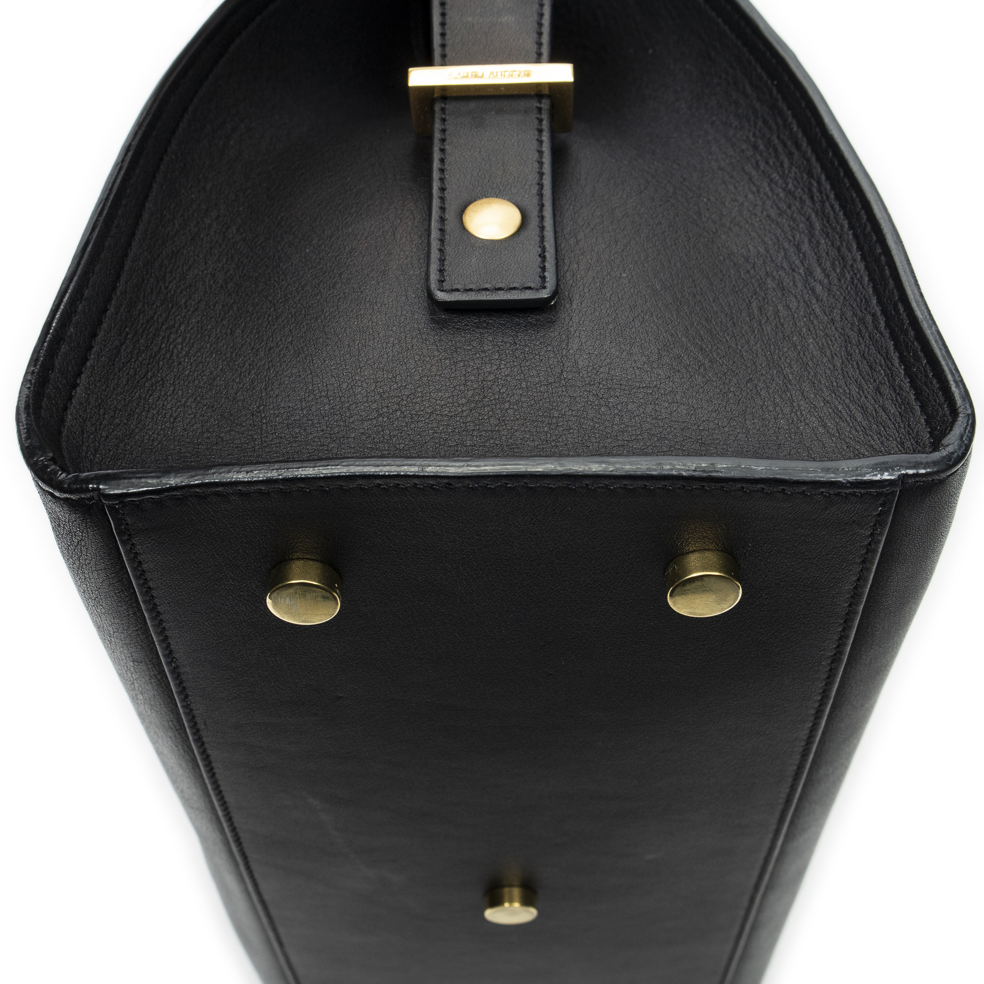 Yves Saint Laurent Sac à bandoulière Small Monogram Cabas en Du cuir de veau Black et Gold. Le produit est en Excellent état (A).