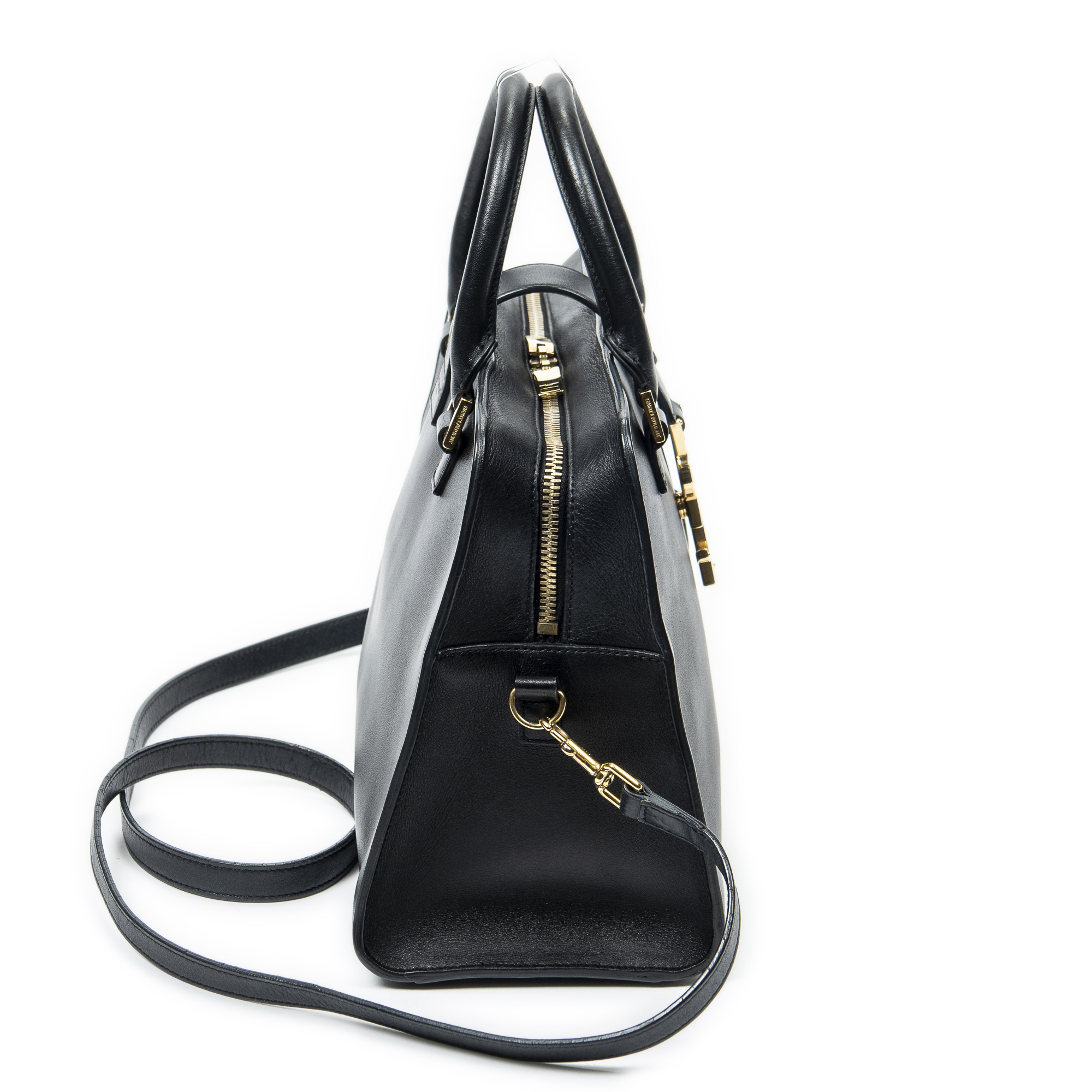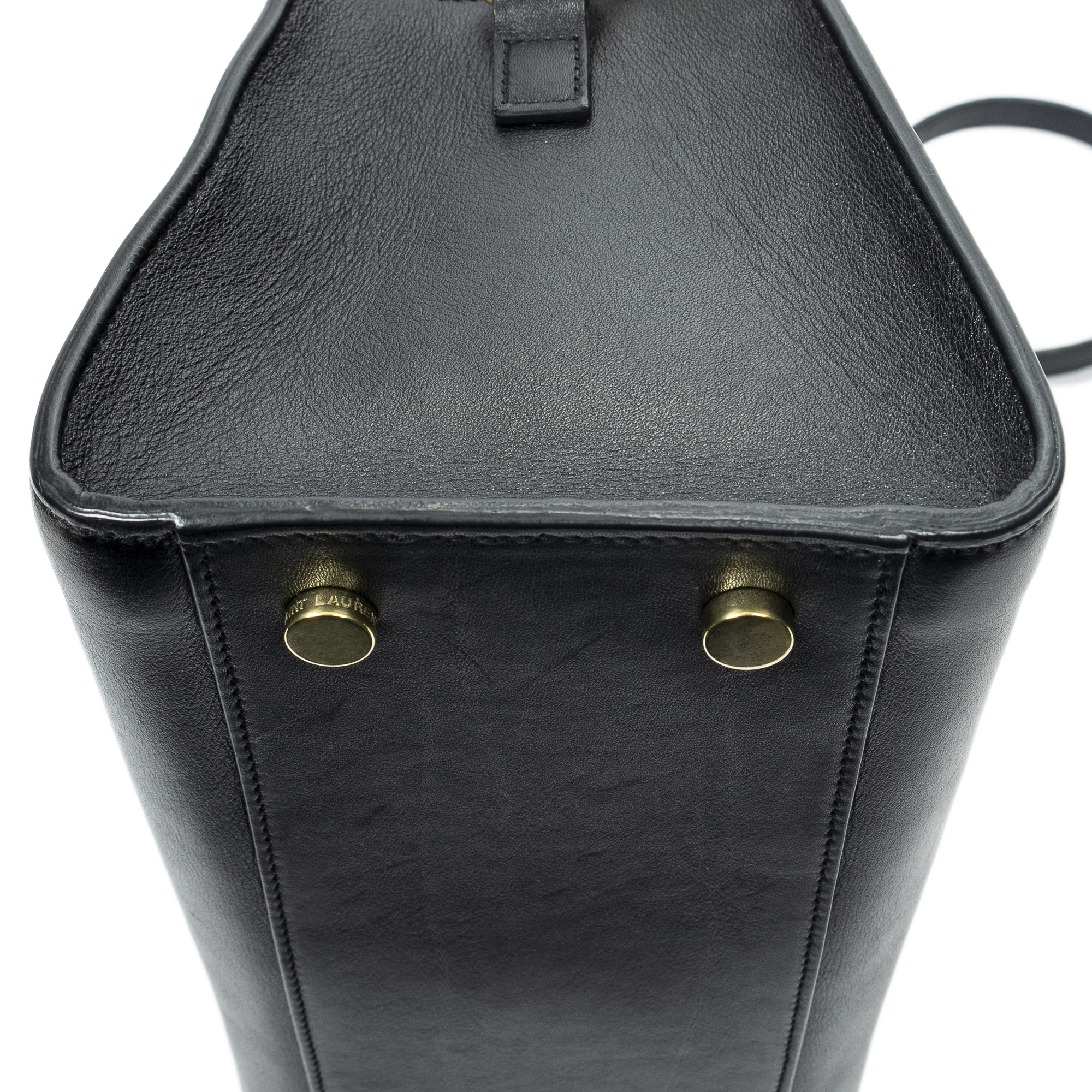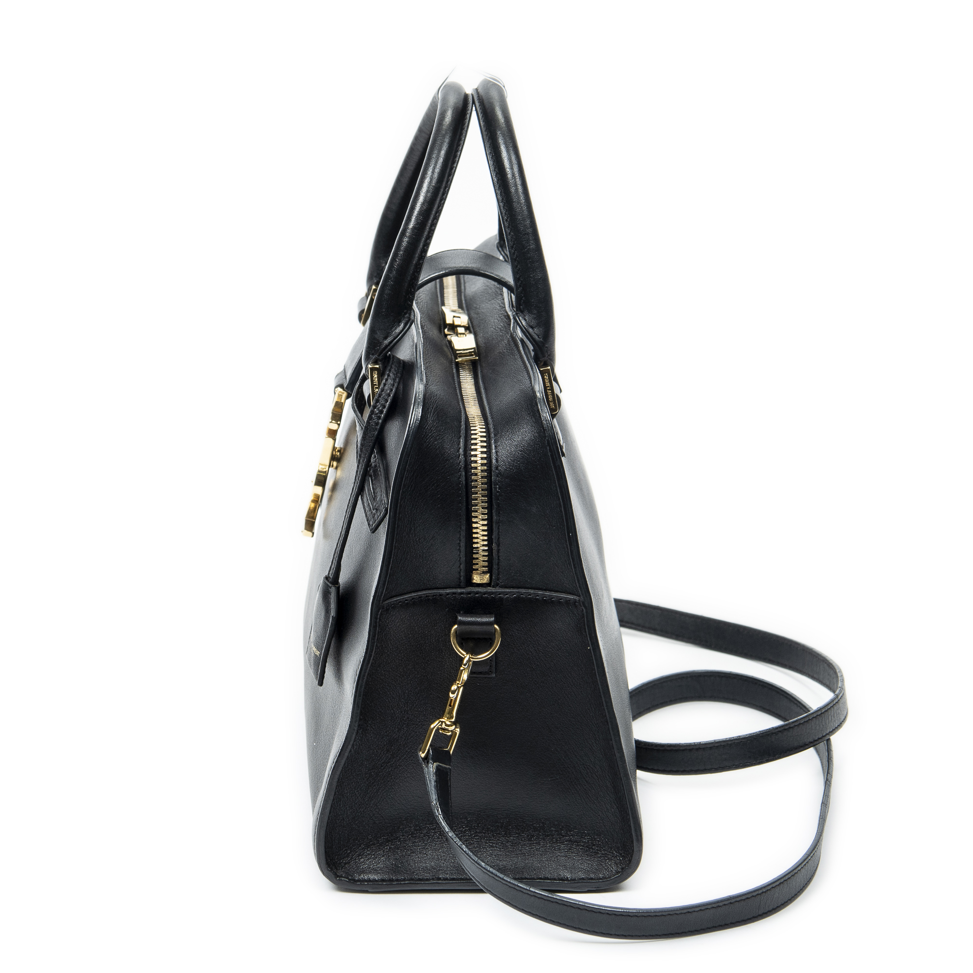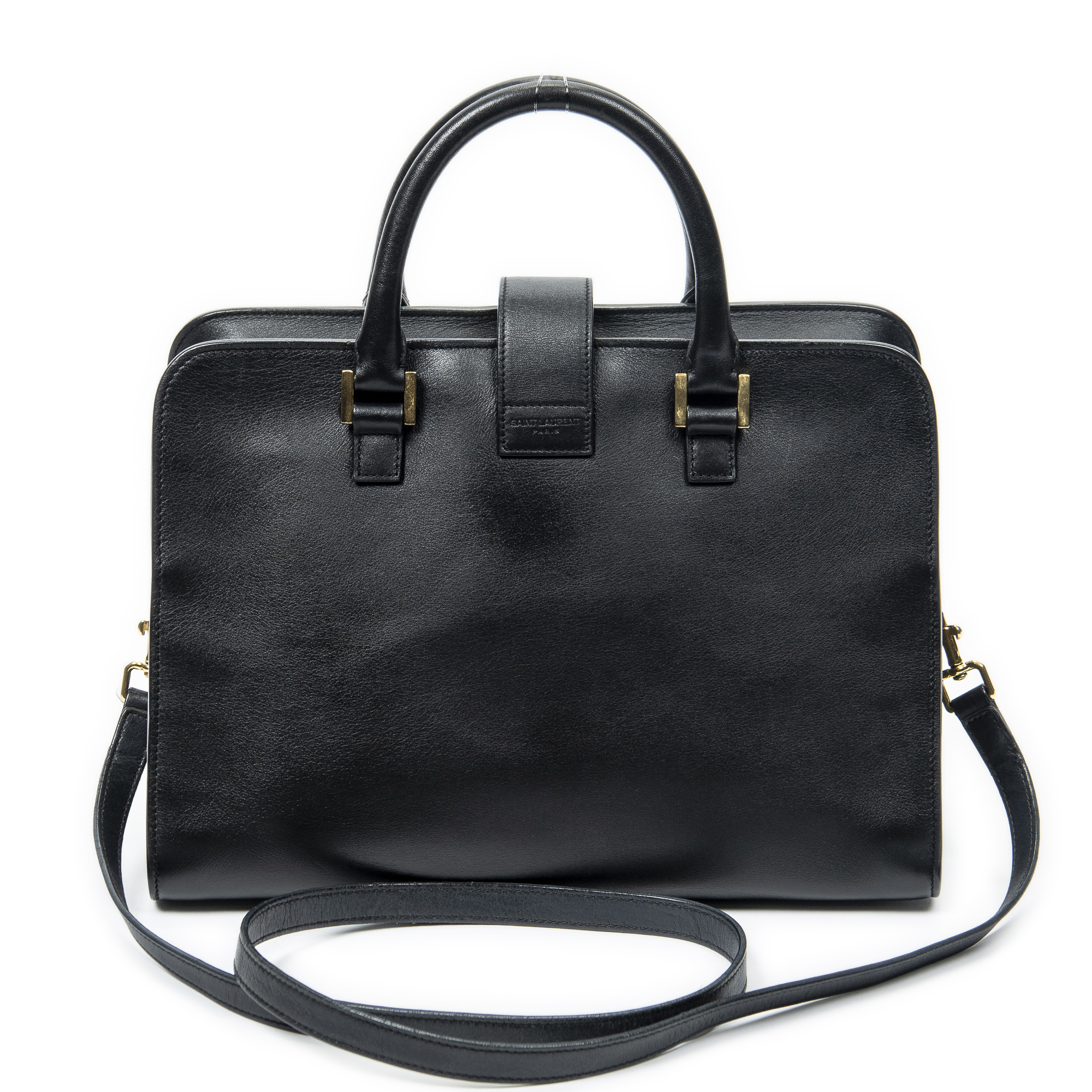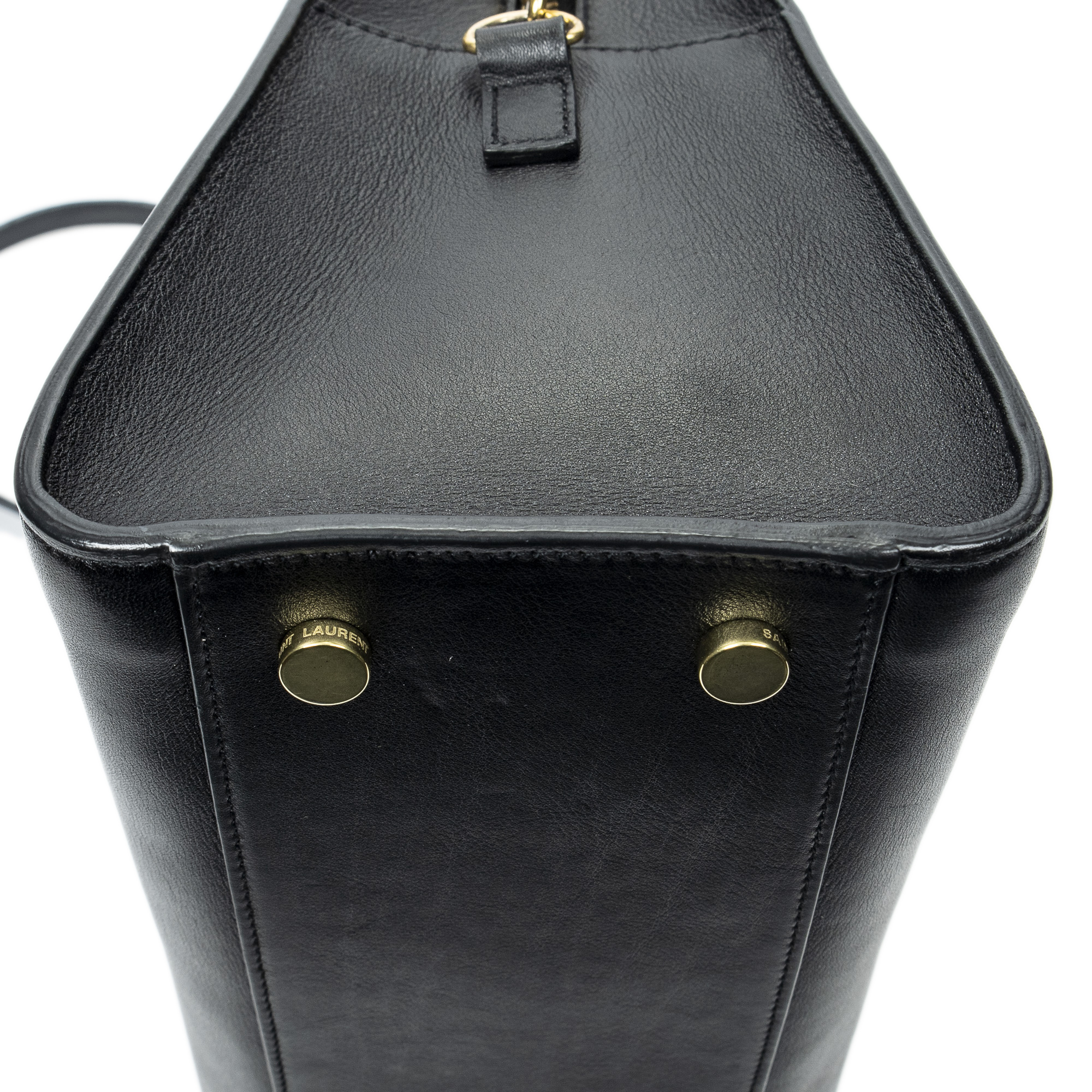 Yves Saint Laurent Sac à bandoulière Small Monogram Cabas en Du cuir de veau Black et Gold. Le produit est en Excellent état (A).