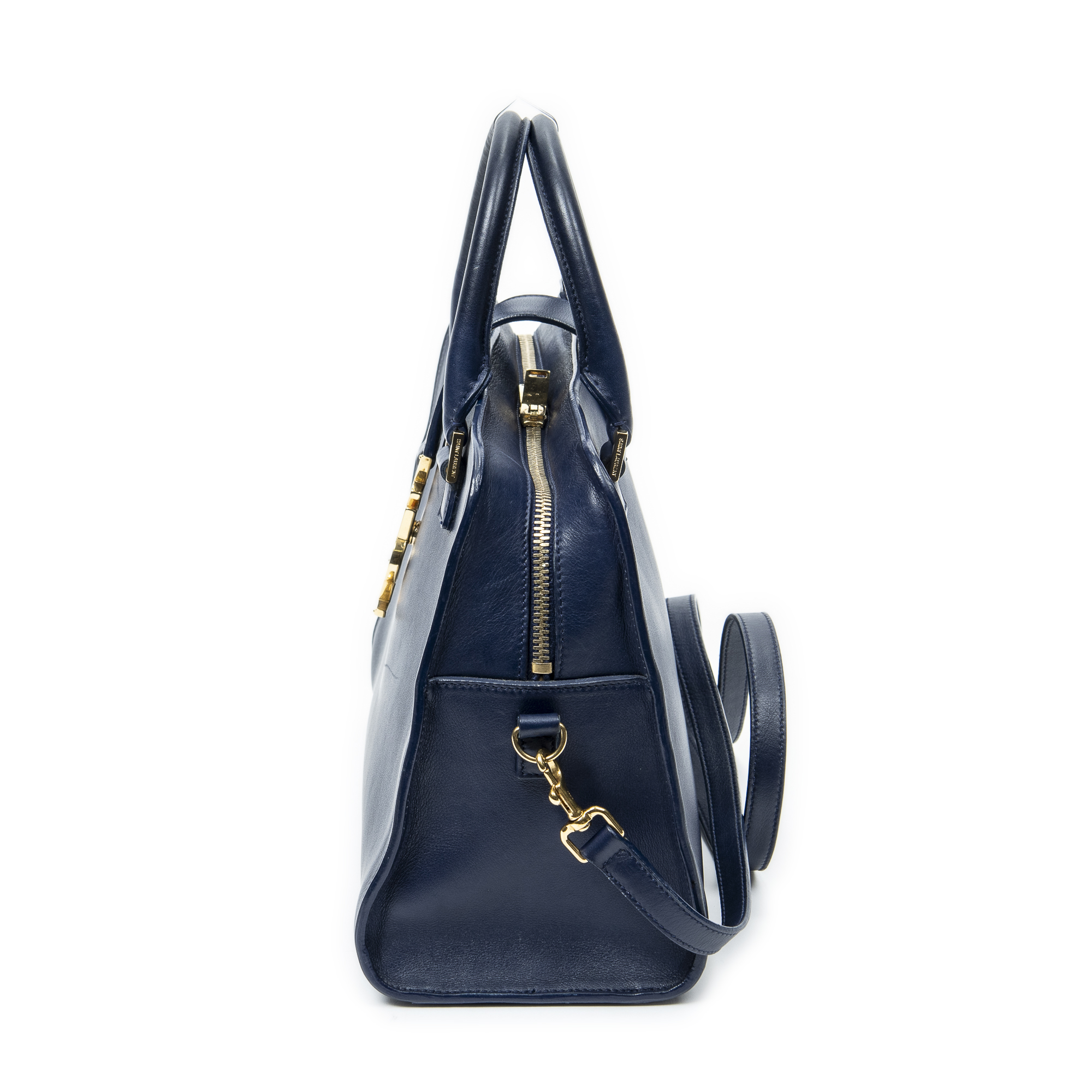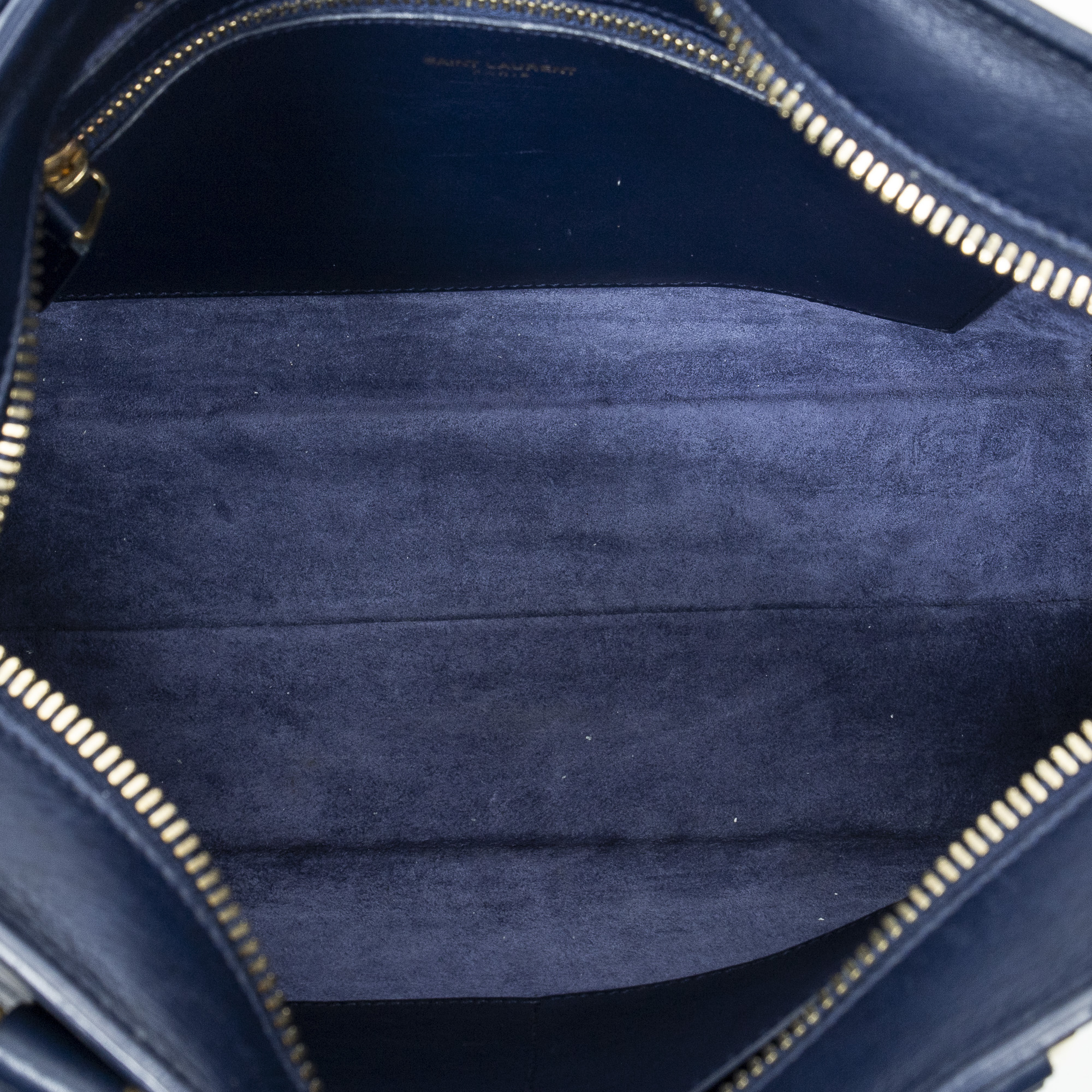 Yves Saint Laurent Sac à bandoulière Small Monogram Cabas en Blue et Gold. Le produit est en Excellent état (A).