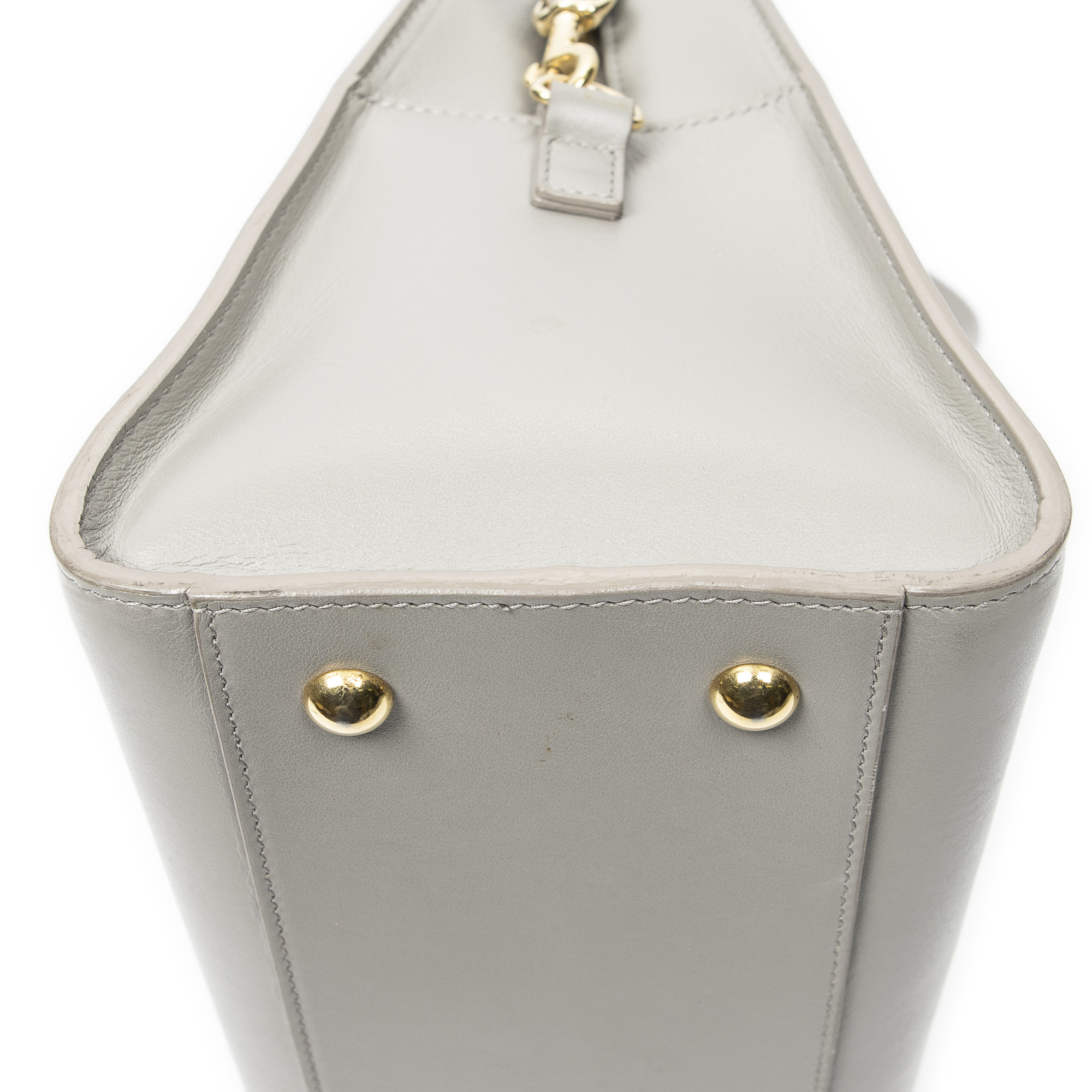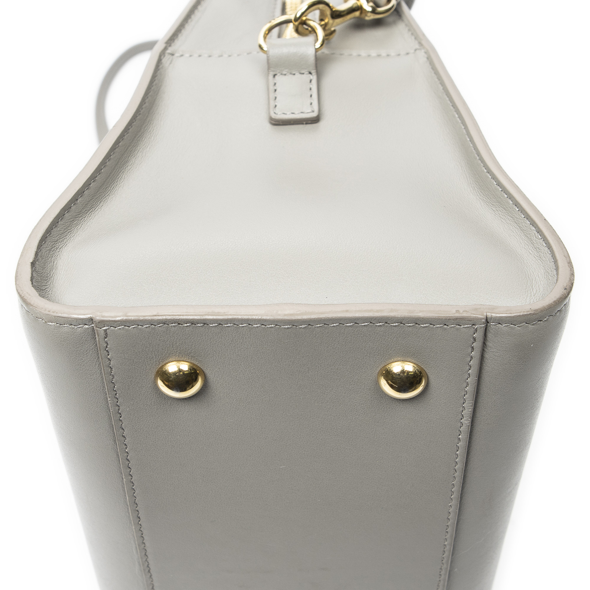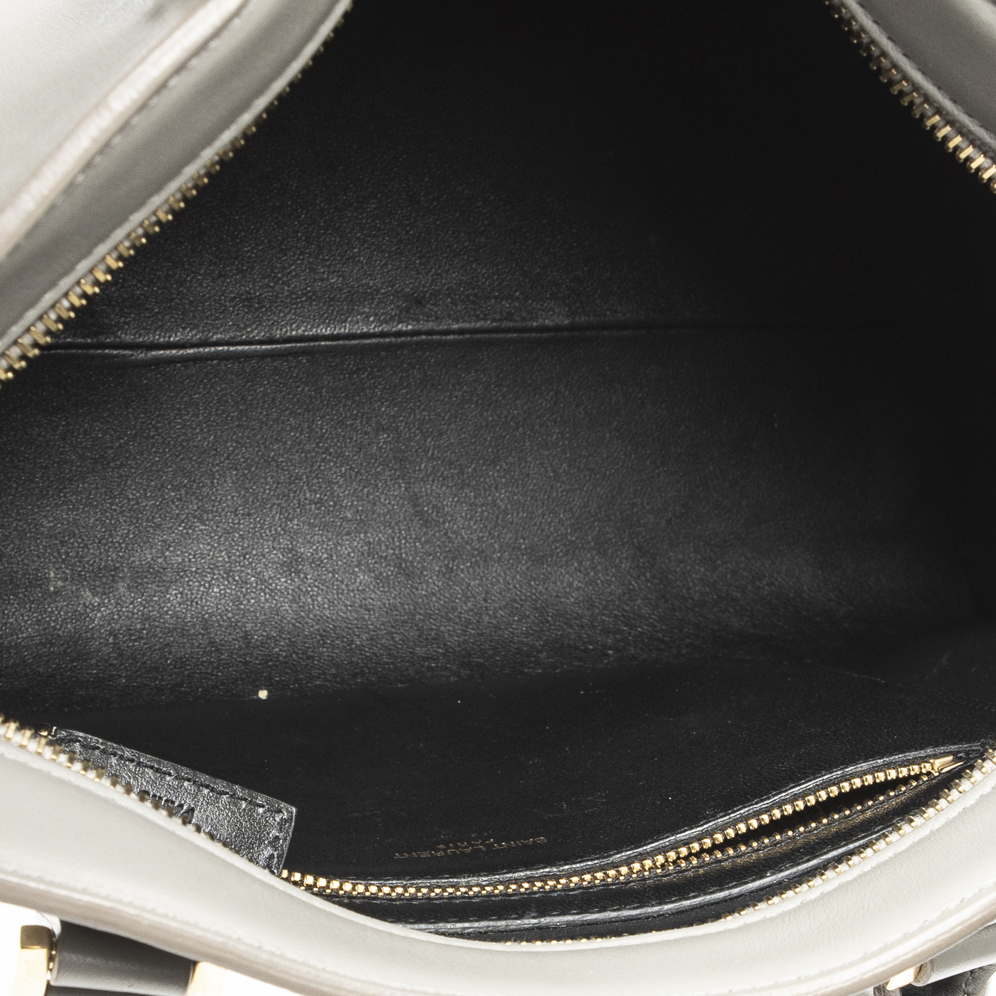 Yves Saint Laurent Sac à bandoulière Small Monogram Cabas en Du cuir de veau Grey et Gold. Le produit est en Excellent état (A).
