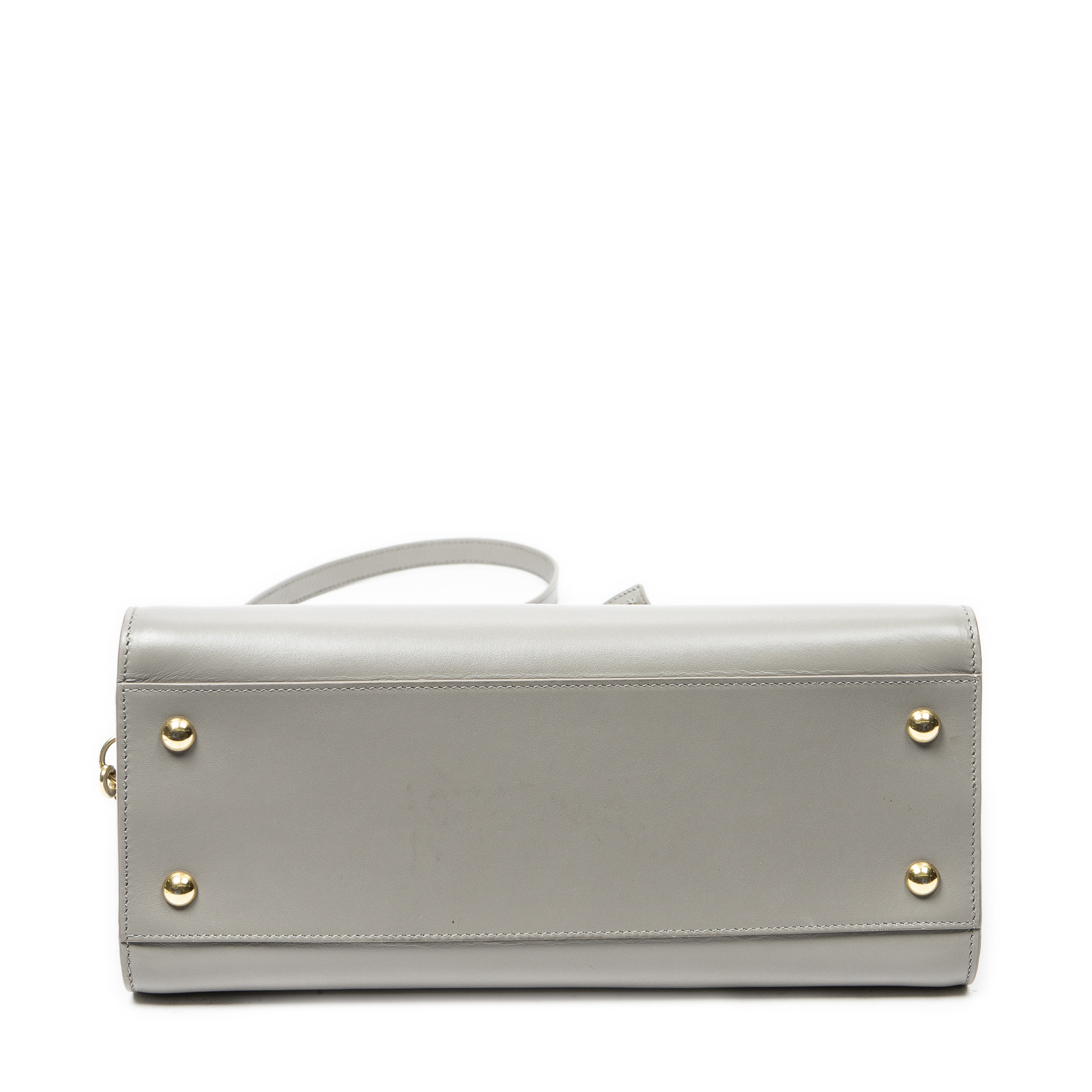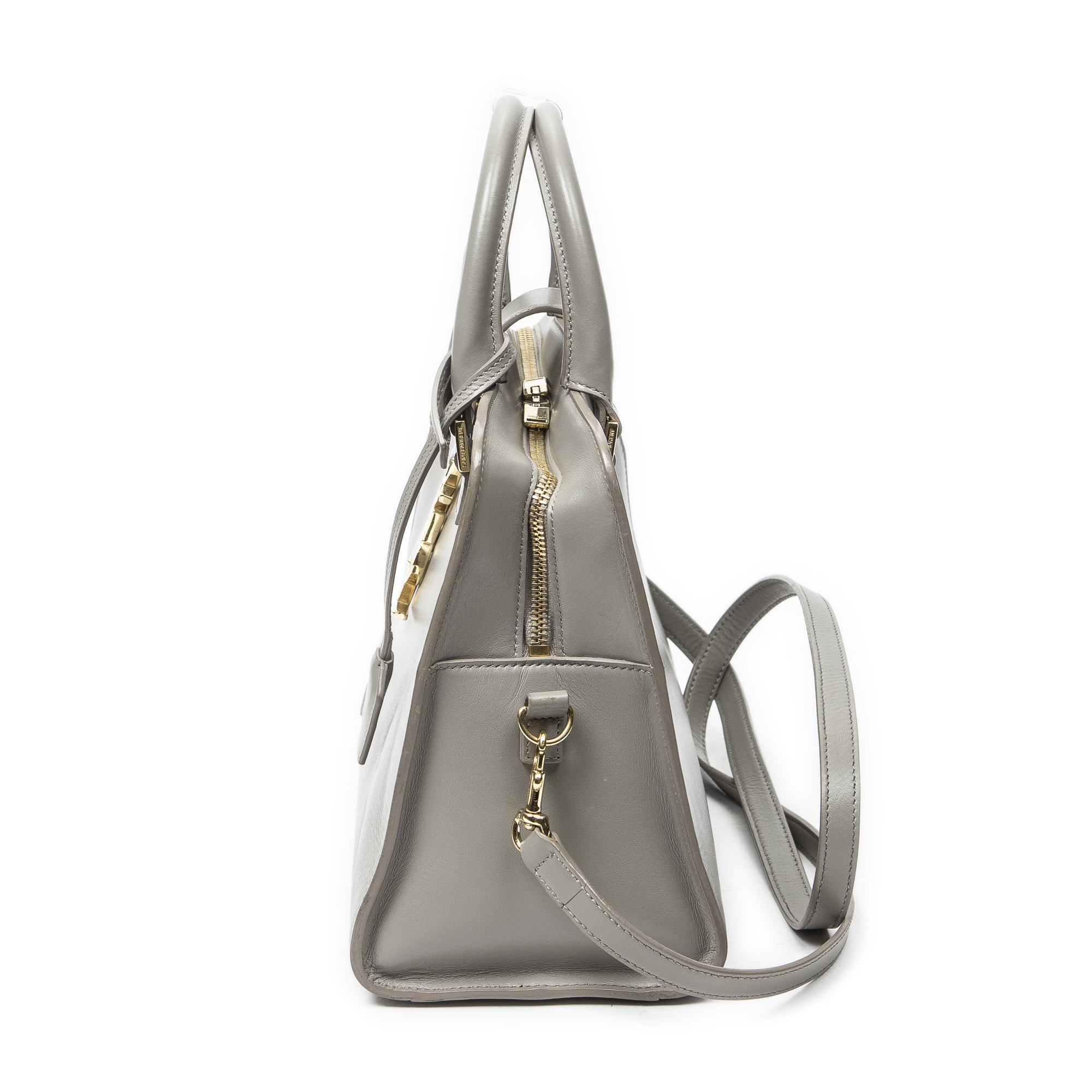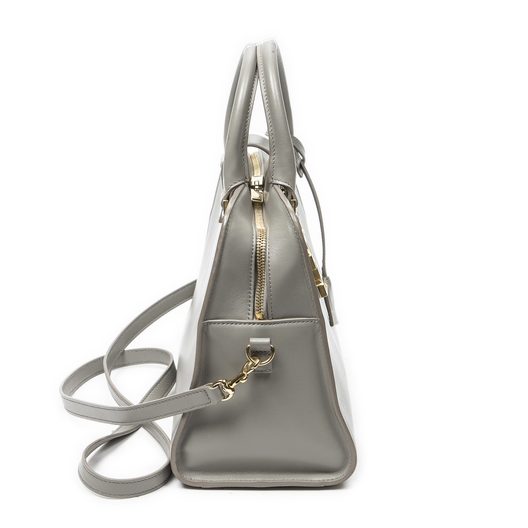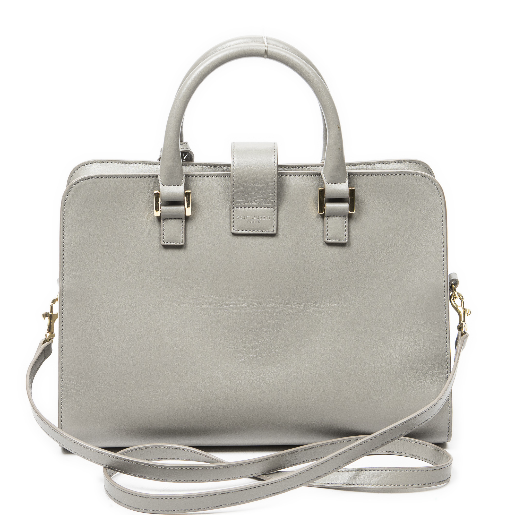 Yves Saint Laurent Sac à bandoulière Small Monogram Cabas en Du cuir de veau Grey et Gold. Le produit est en Excellent état (A).