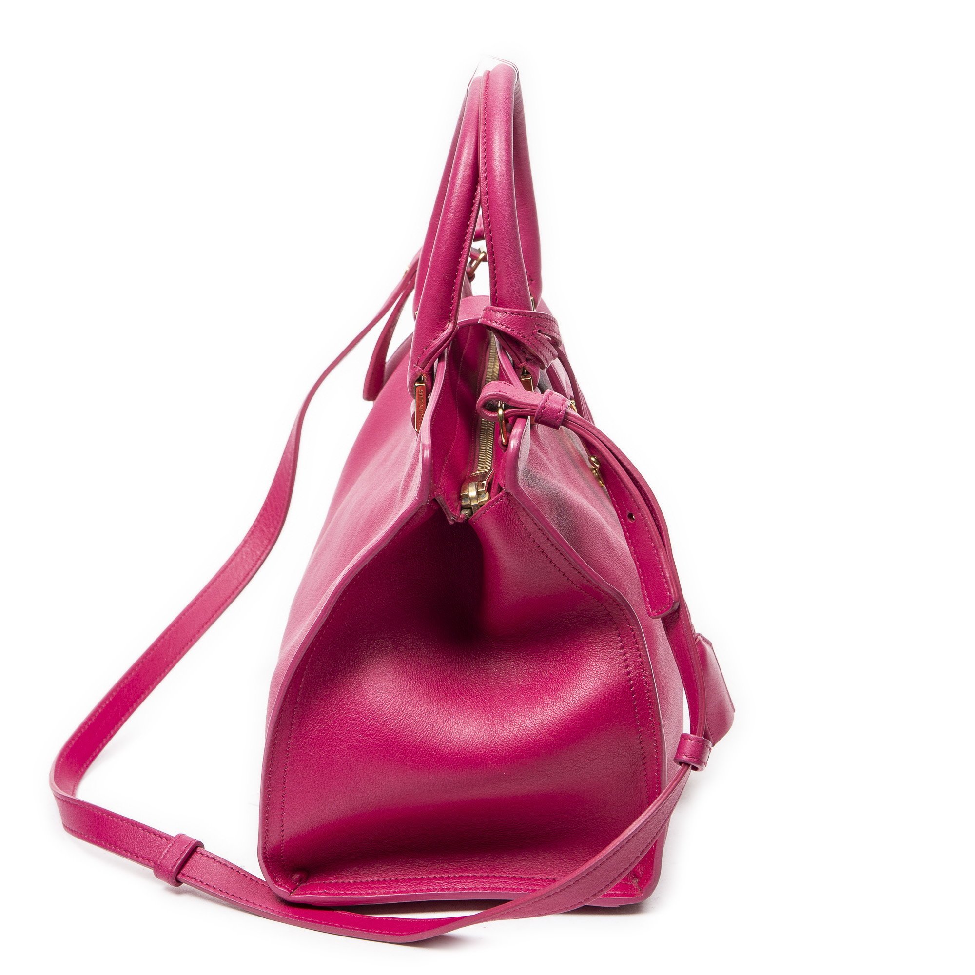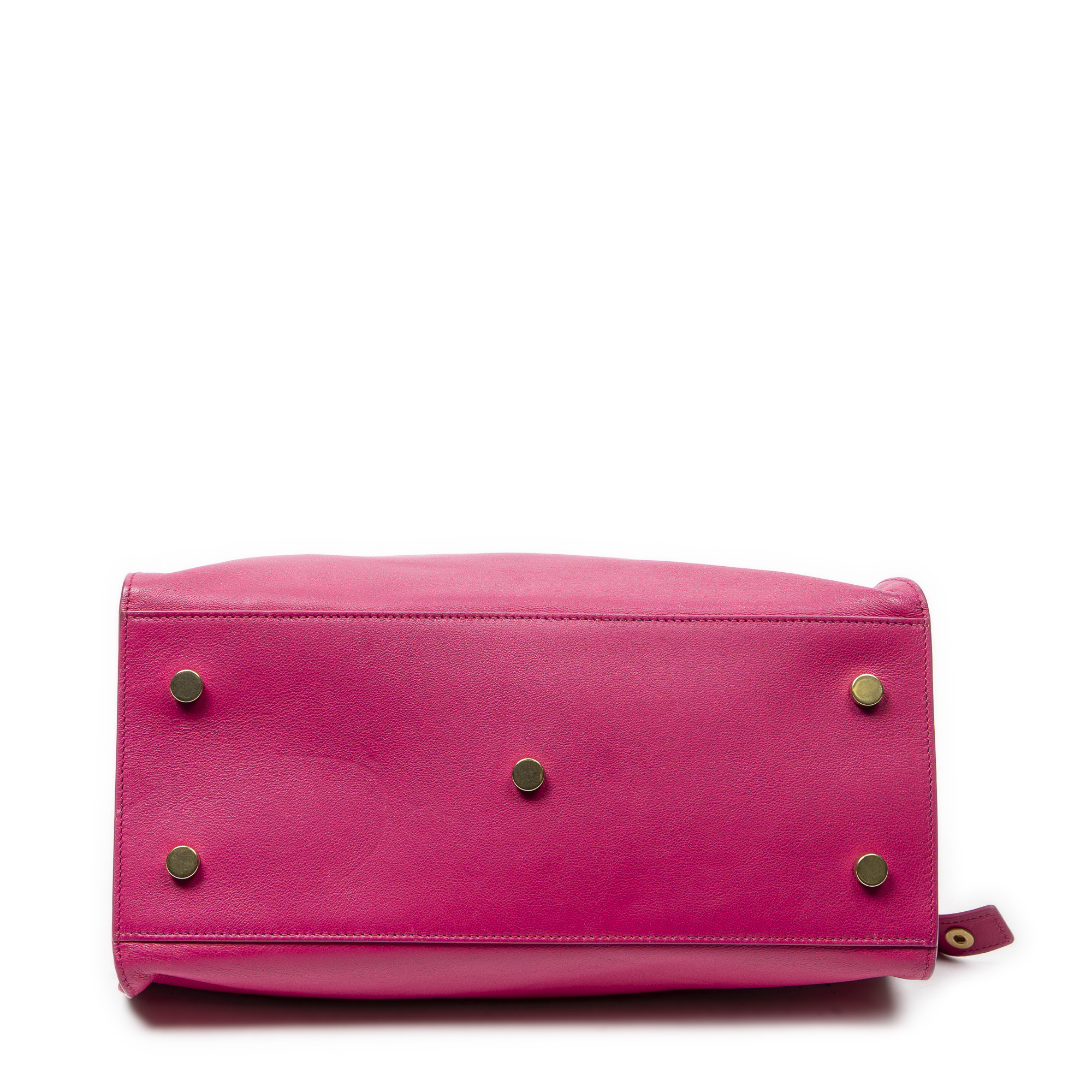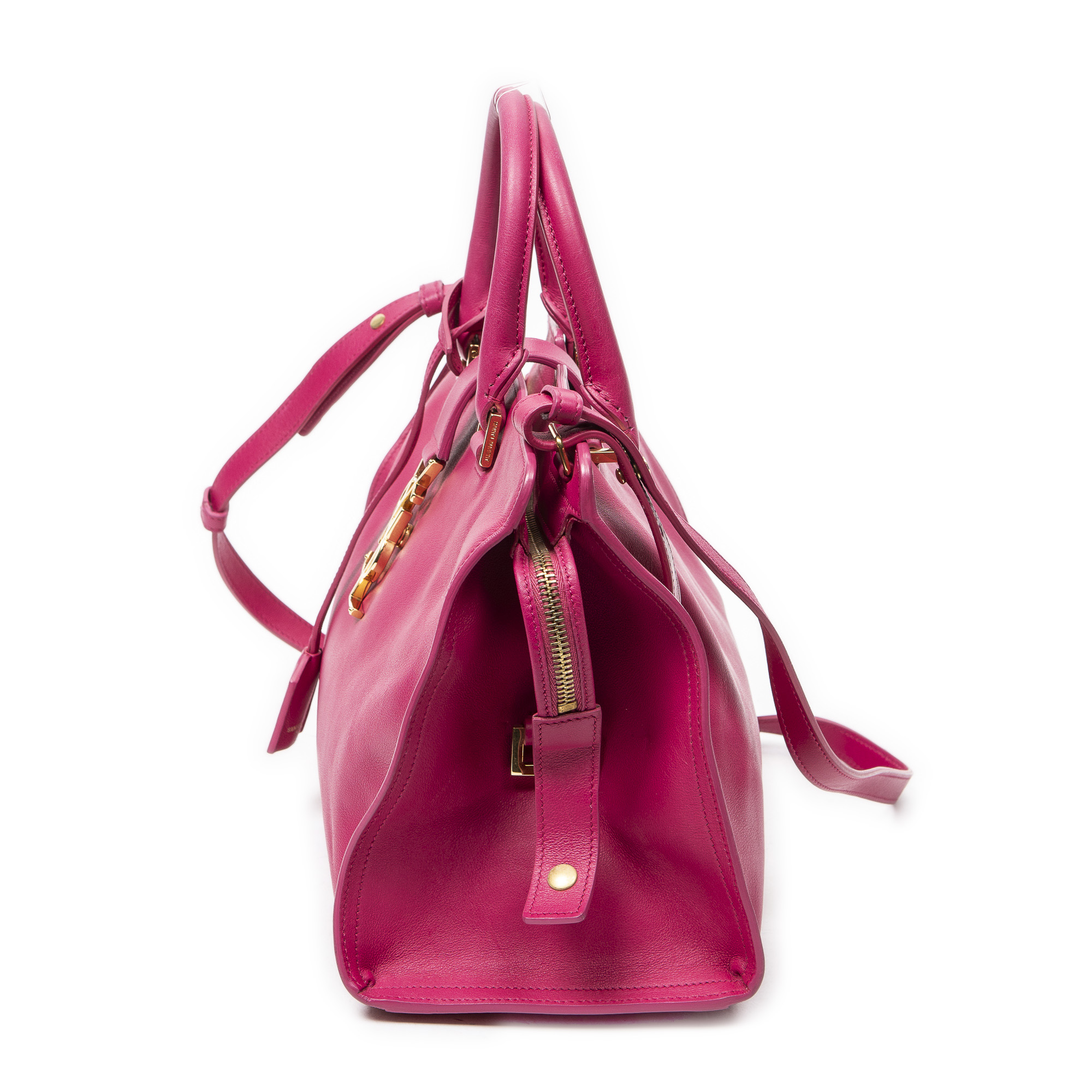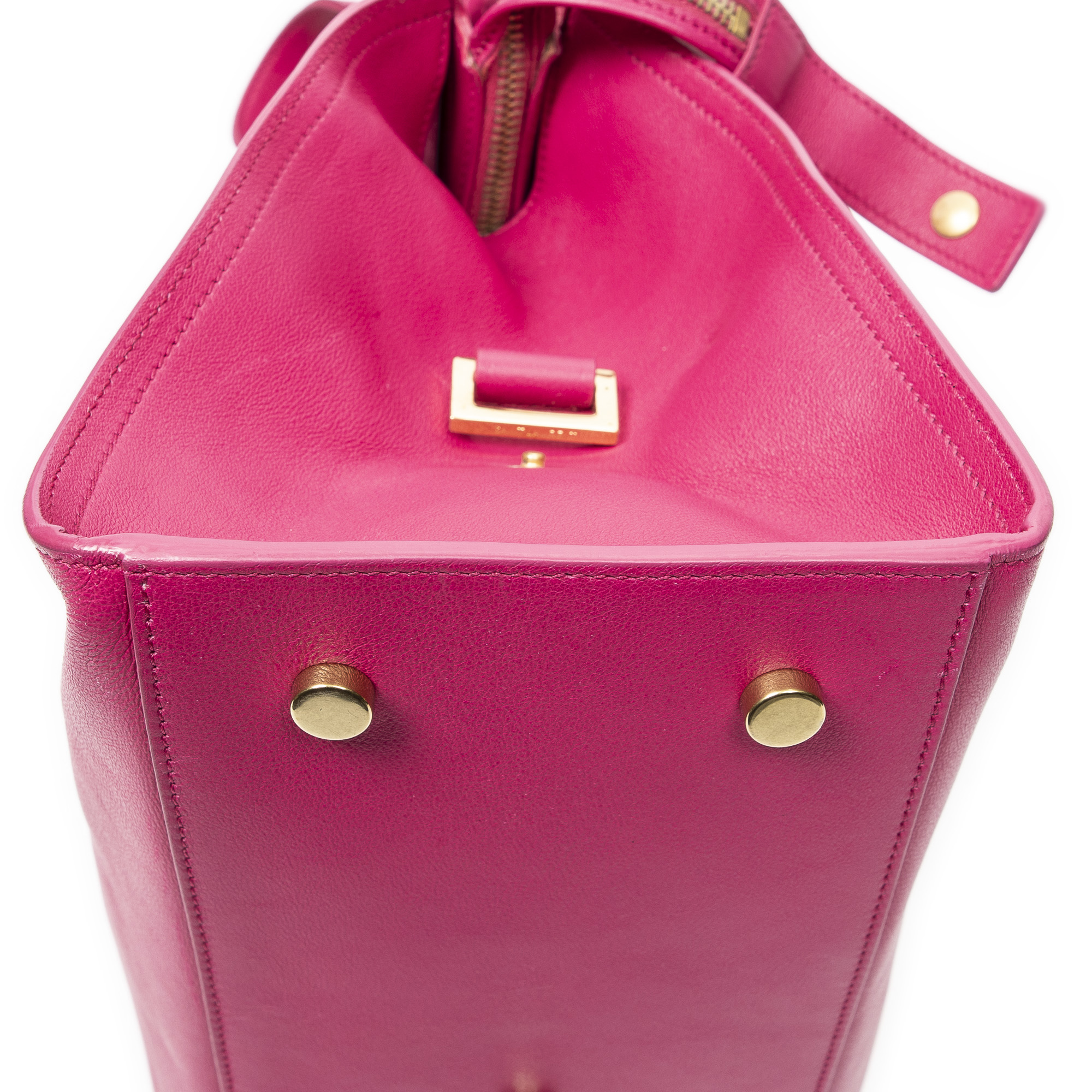 Yves Saint Laurent Sac à bandoulière Small Monogram Cabas en Du cuir de veau Rose et Gold. Le produit est en Excellent état (A).