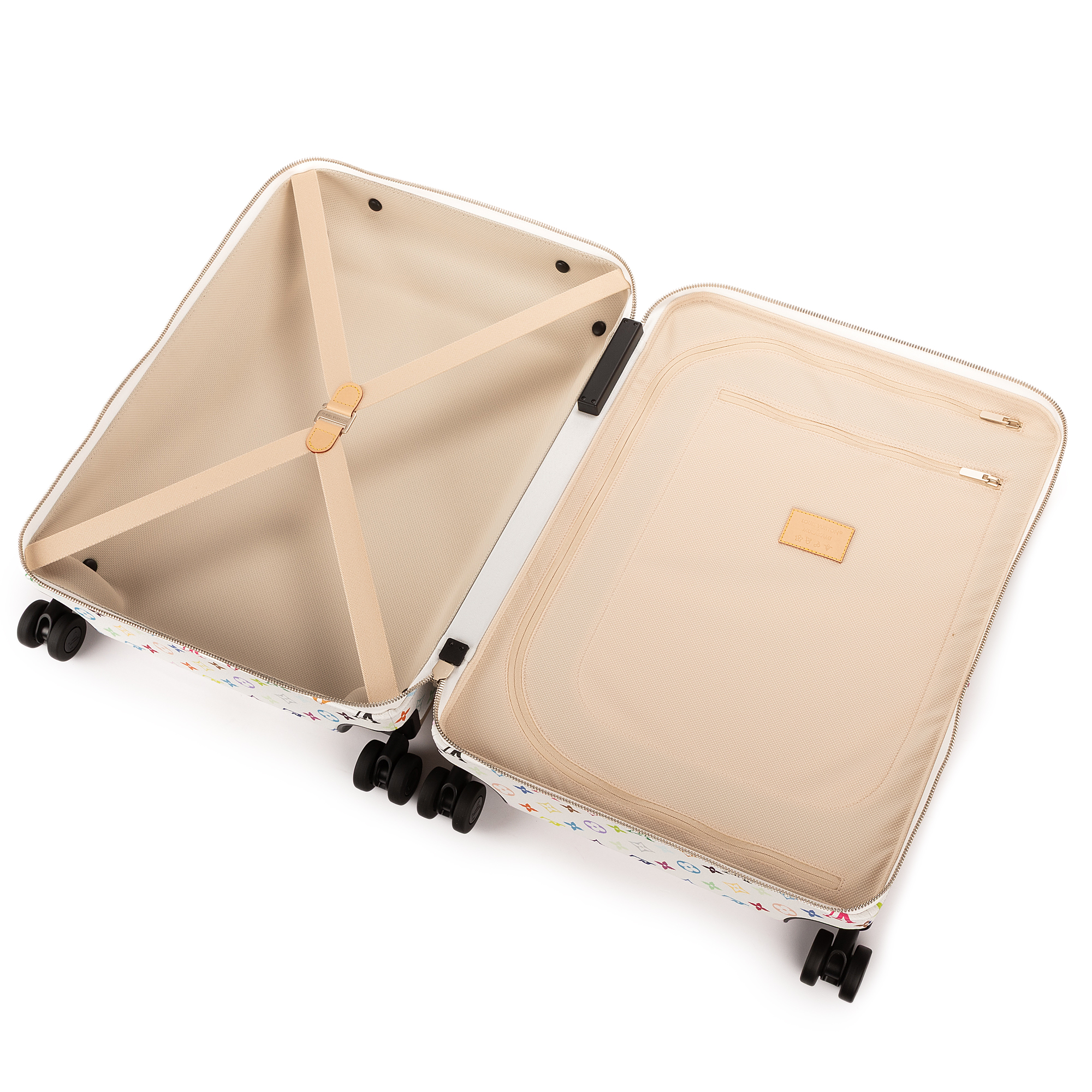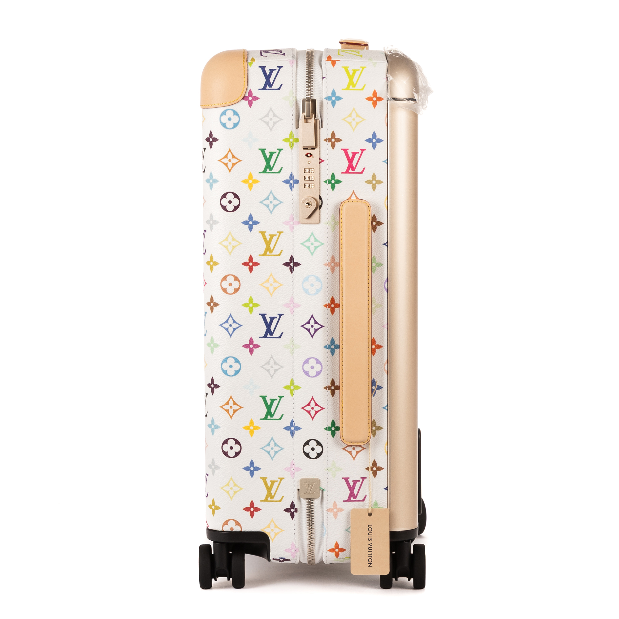 Louis Vuitton Valise Ltd. Ed. LV x Takashi Murakami Horizon 55 55 en Blanc/Multicolore et Champagne Or/Argent. Le produit est comme Neuf (N).