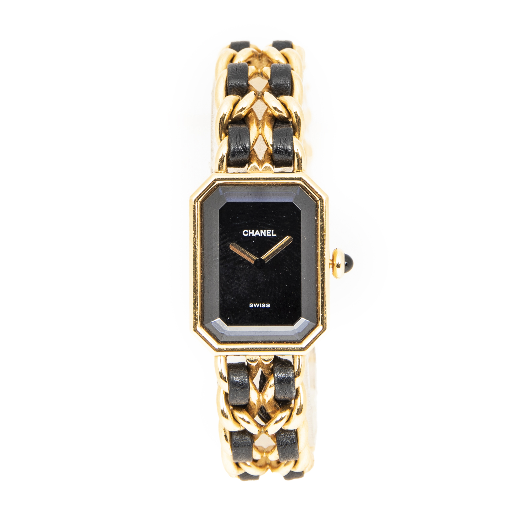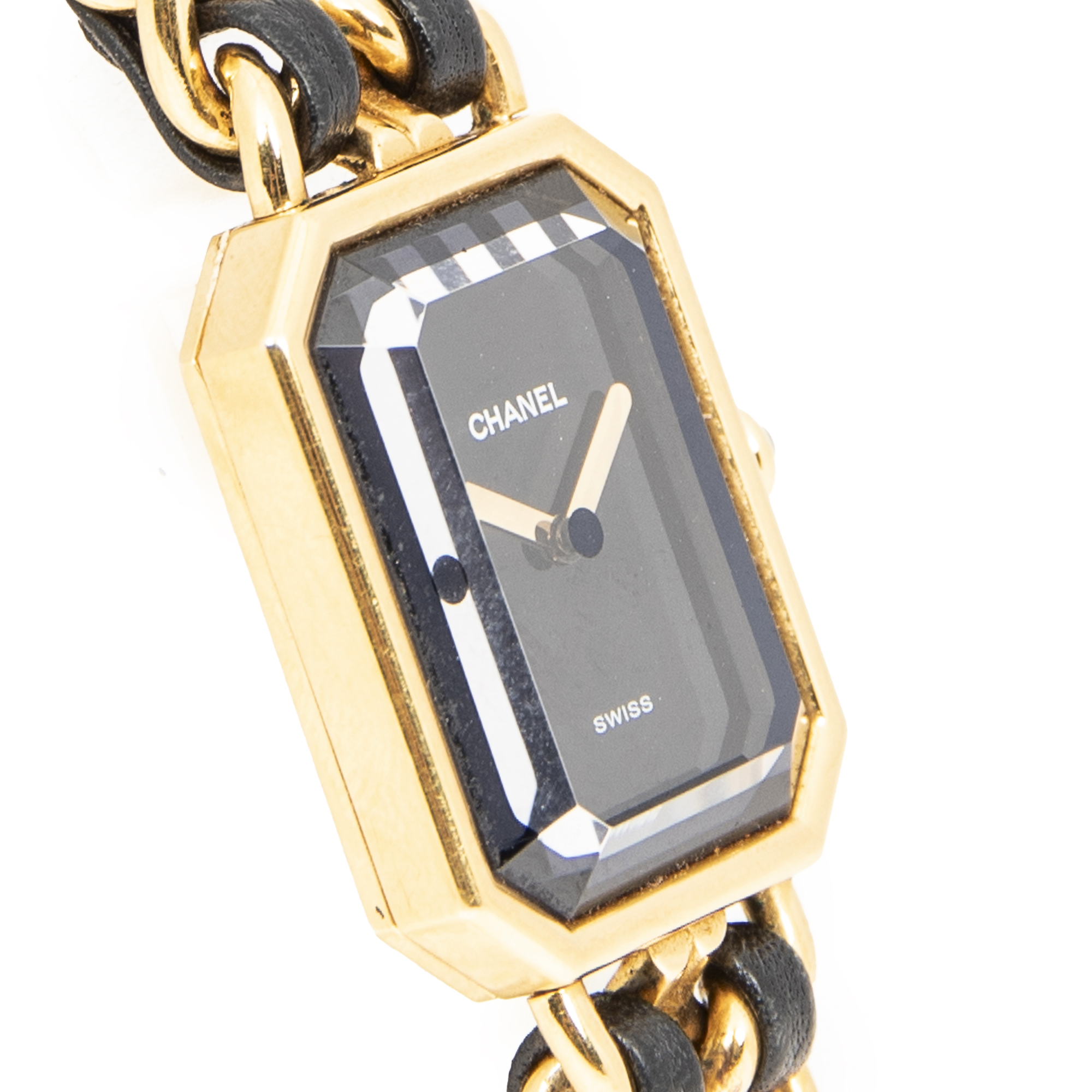 Chanel Regarder Premiere M en Noir/Or et Cadran noir. Le produit est en Excellent état (A).