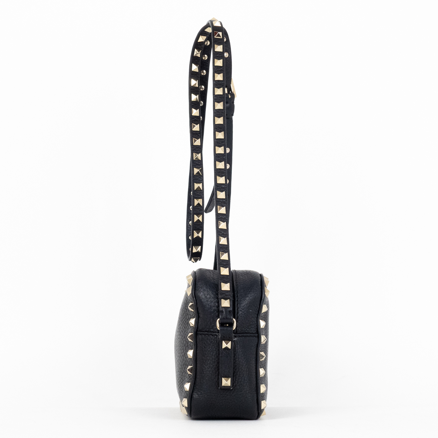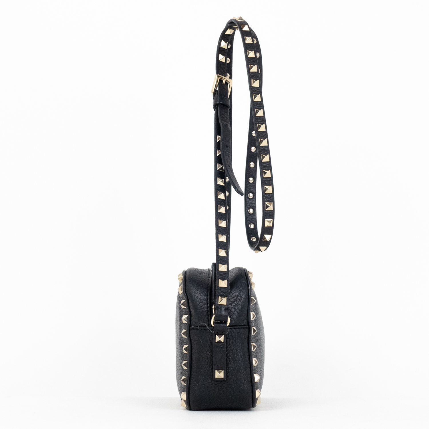 Valentino Bandoulière Rockstud Camera Small en Black et Argent. Le produit est en Parfait état (AA).