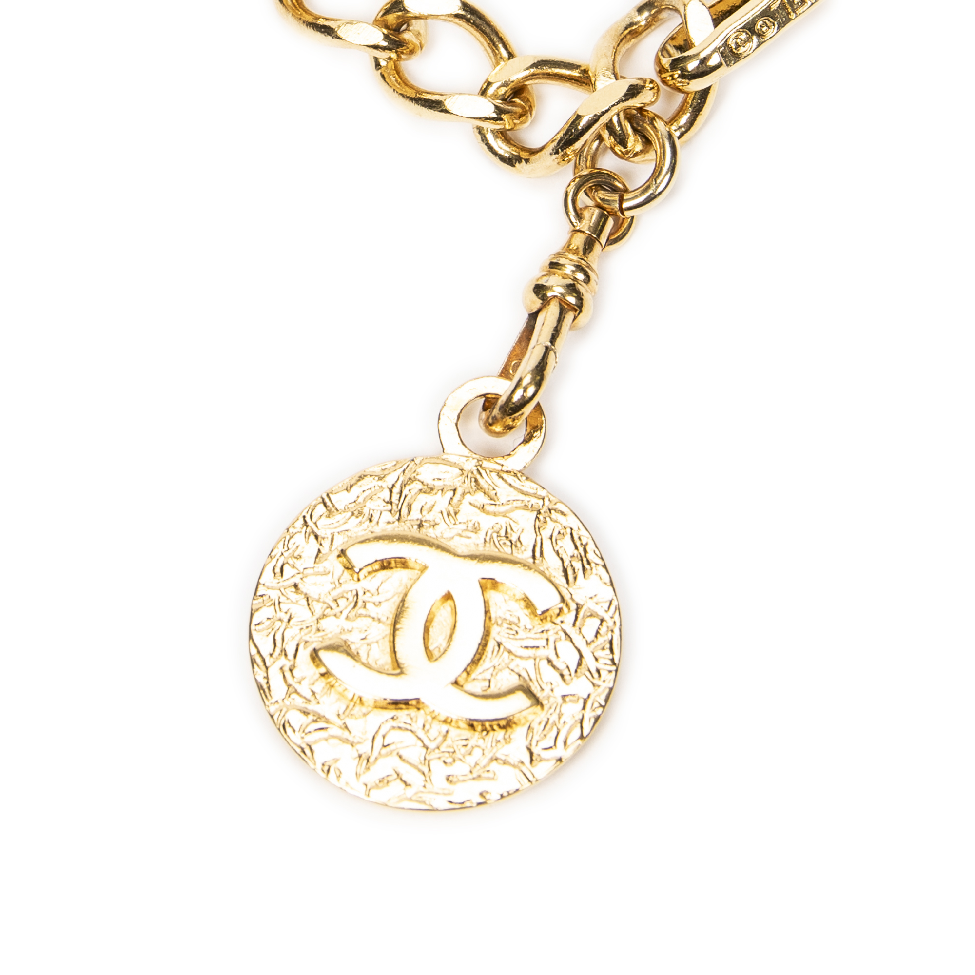 Chanel Ceinture CC Medallion Chain Belt en Or et Plaqué or. Le produit est en Excellent état (A).