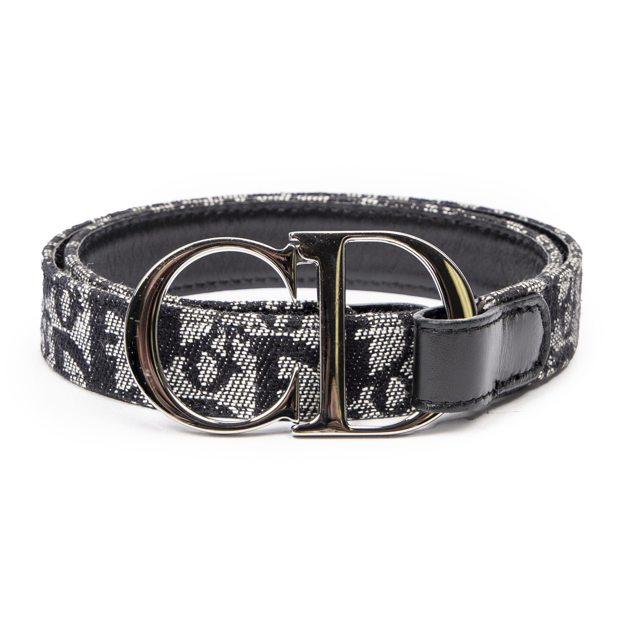 Dior Belt CD Logo Belt en Bleu marine/Beige et Argent. Le produit est en Excellent état (A).
