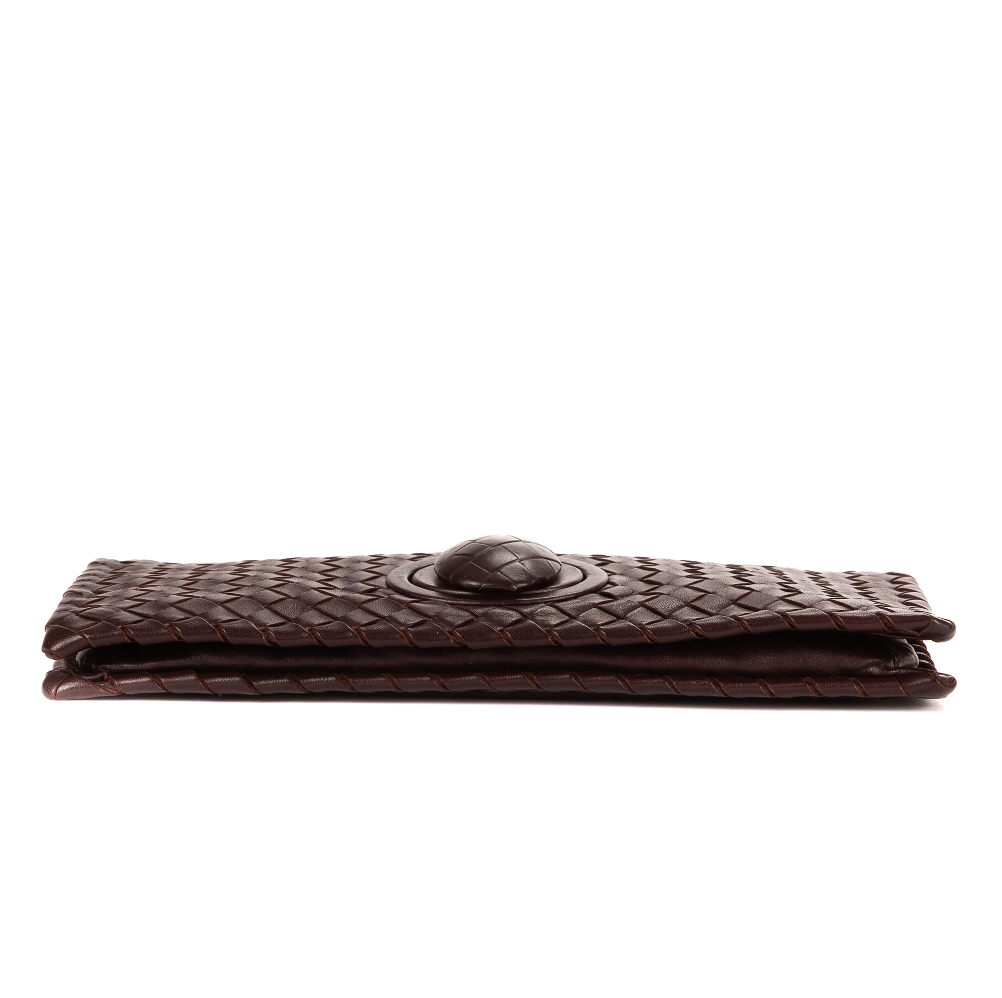 Bottega Veneta Embrayage Turn Lock Clutch en Bourgogne et Black Metal. Le produit est en Parfait état (AA).