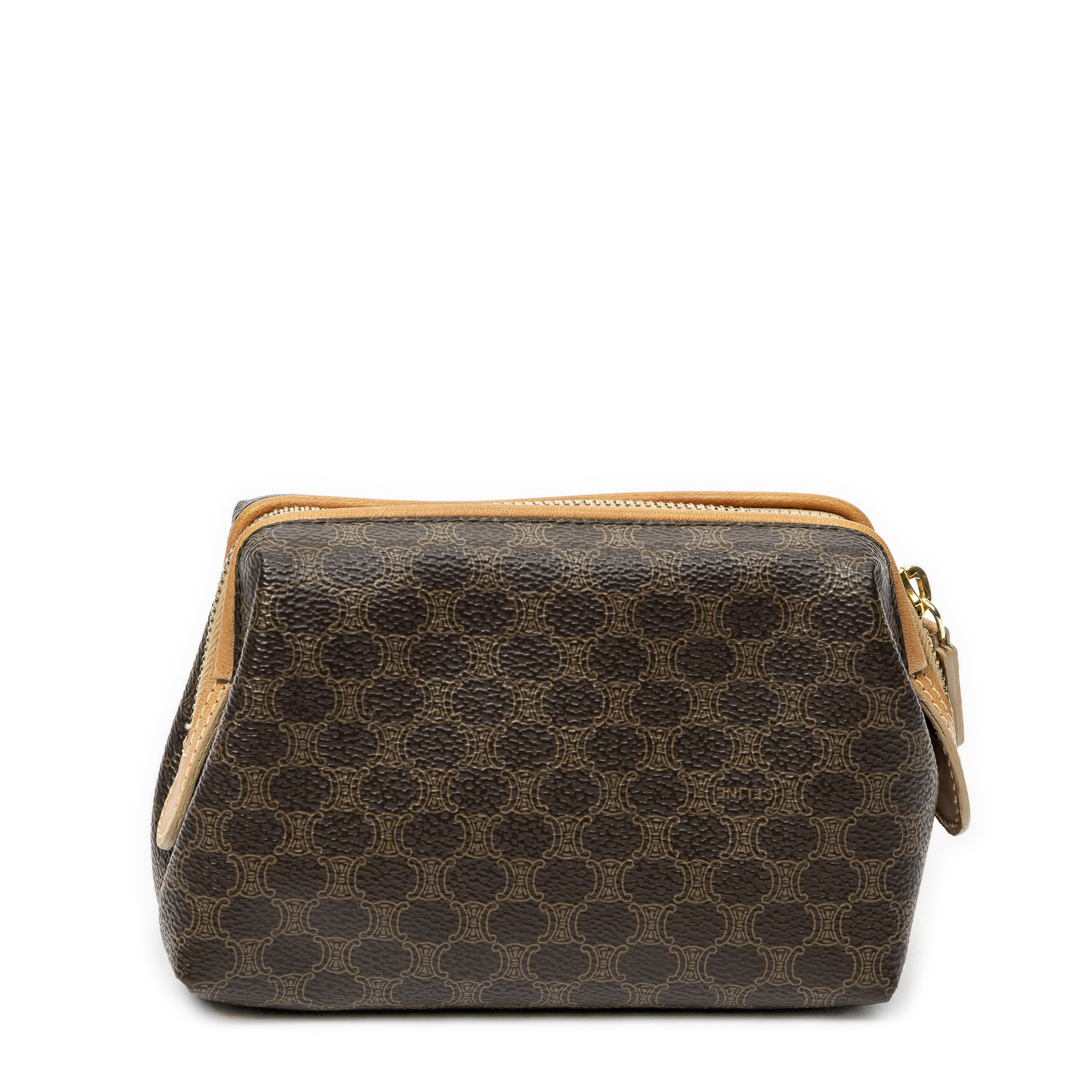 Celine Pouch Mini Frame Cosmetic Pouch en Brown et Gold. Le produit est en Excellent état (A).
