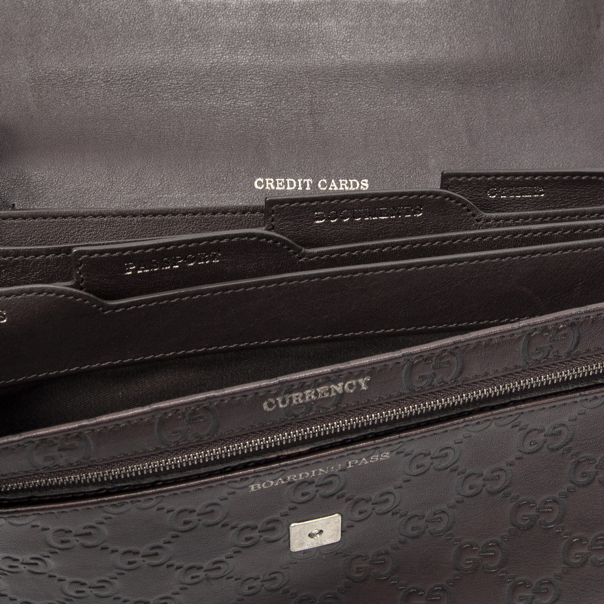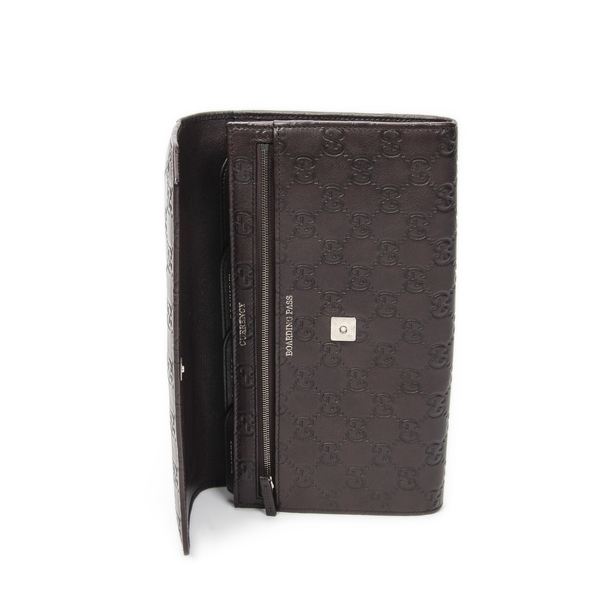Gucci Embrayage Travel Clutch en Marron foncé et Argent. Le produit est en Excellent état (A).