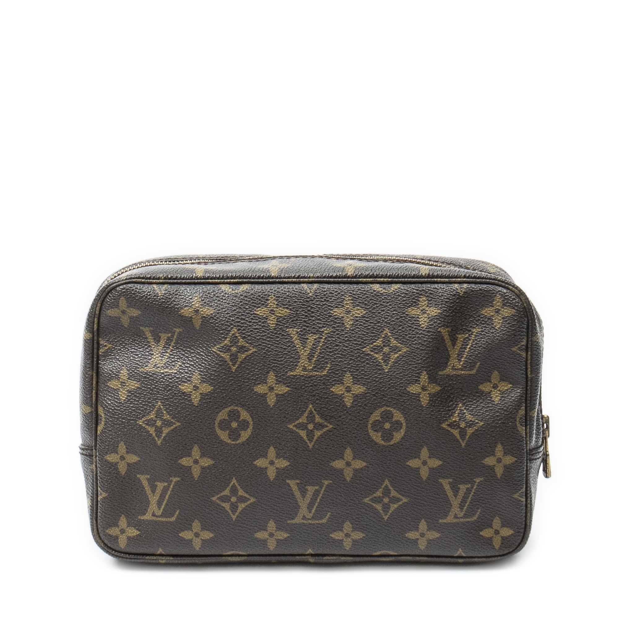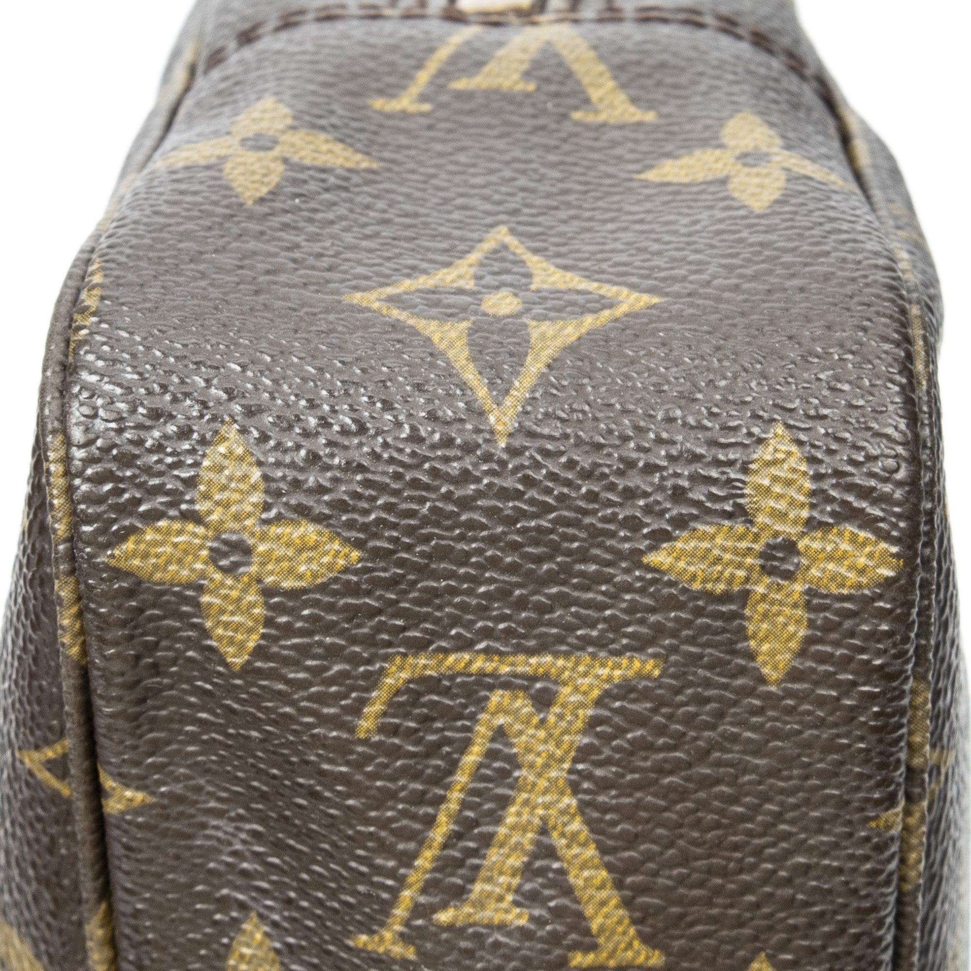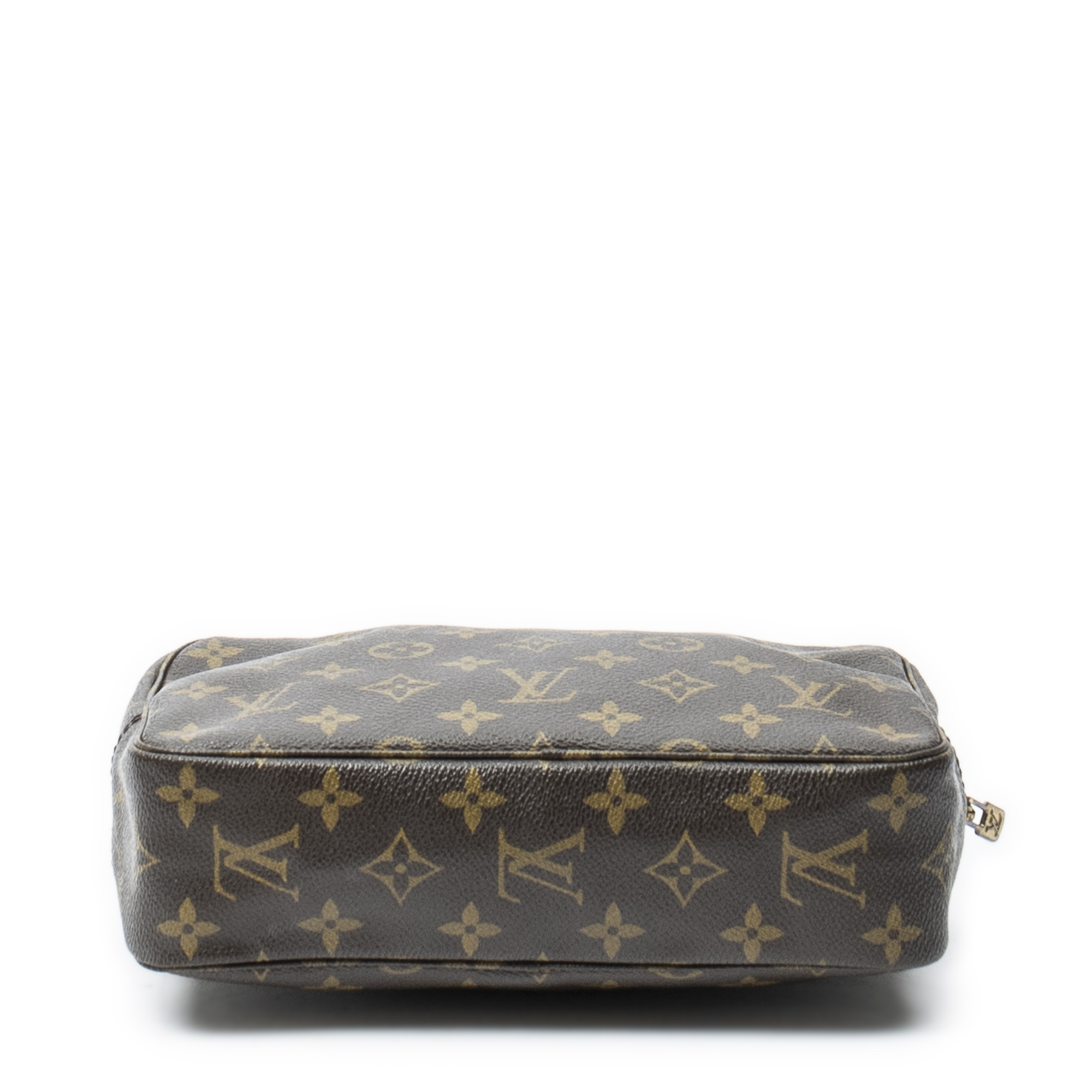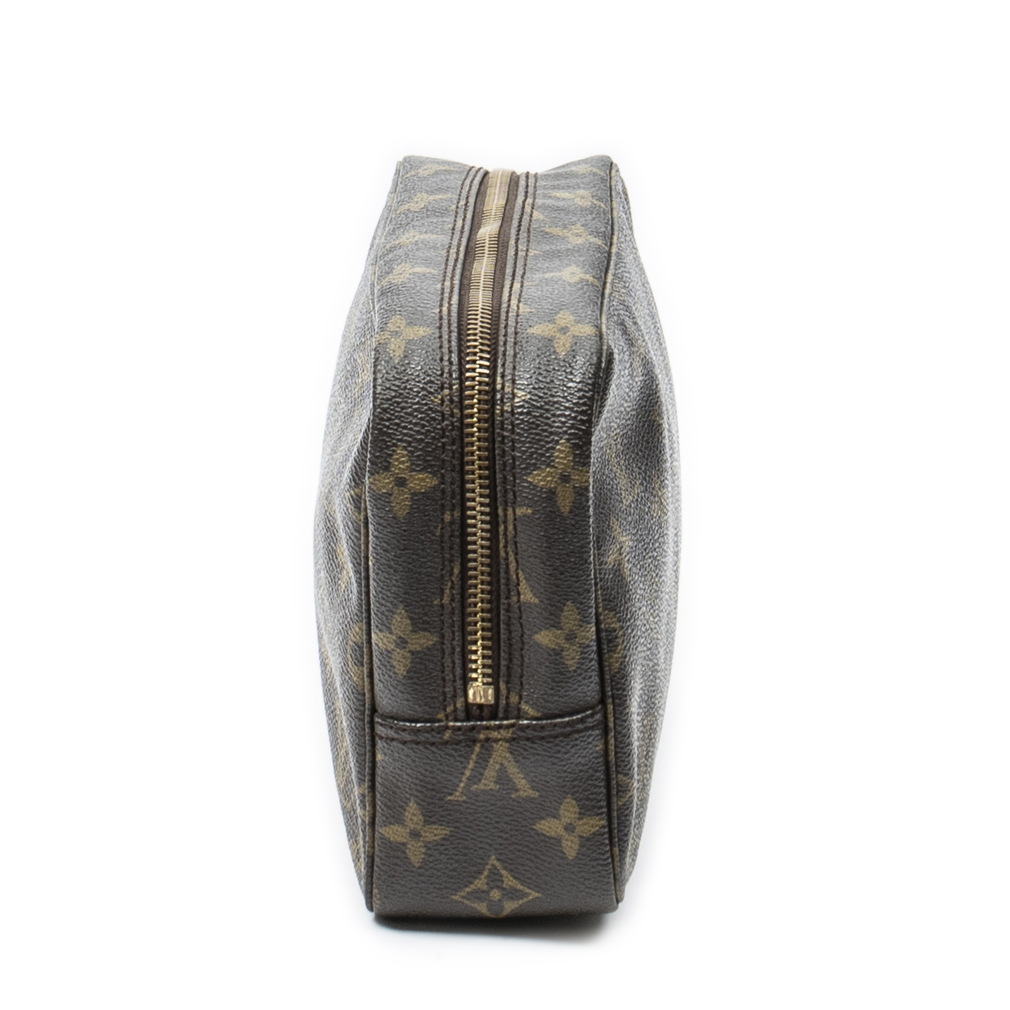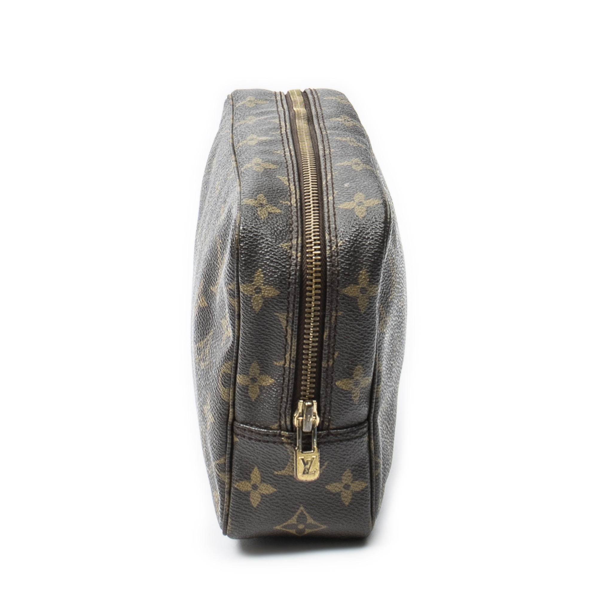 Louis Vuitton Pochette Toiletry Pouch PM en brun et laiton doré. Le produit est en Excellent état (A).