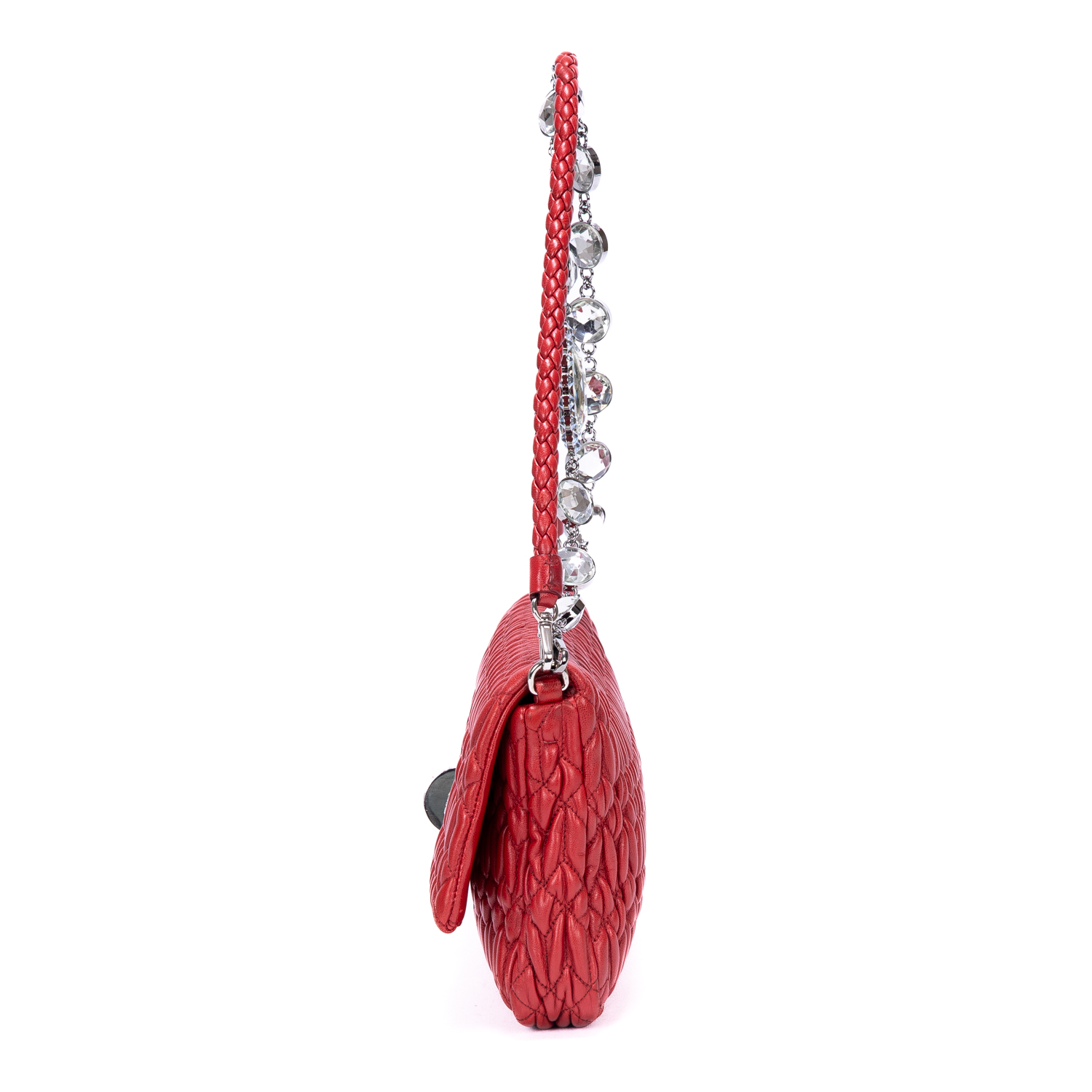 Miu Miu Embrayage Crystal Cloque en Red et Argent. Le produit est en Parfait état (AA).