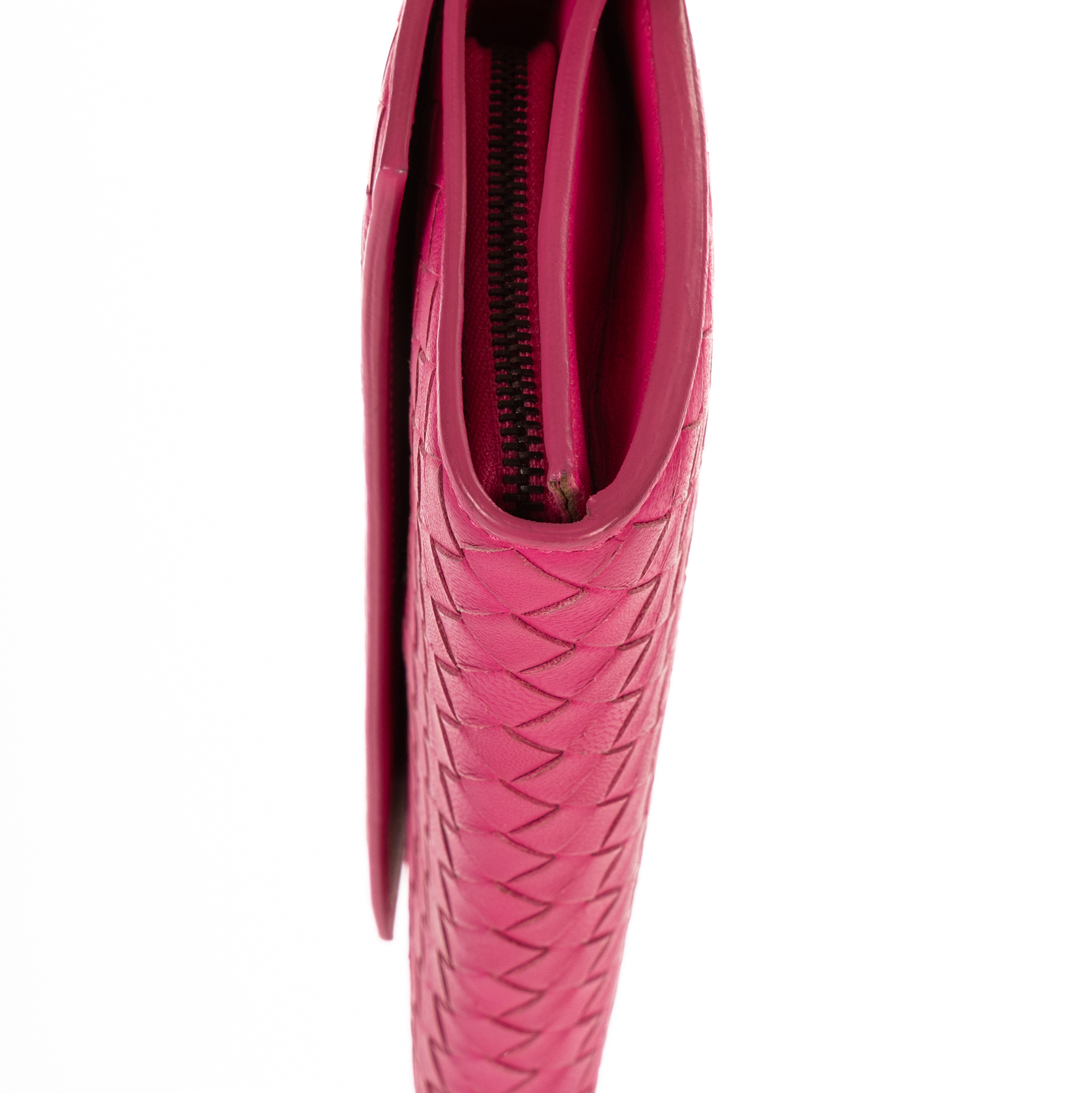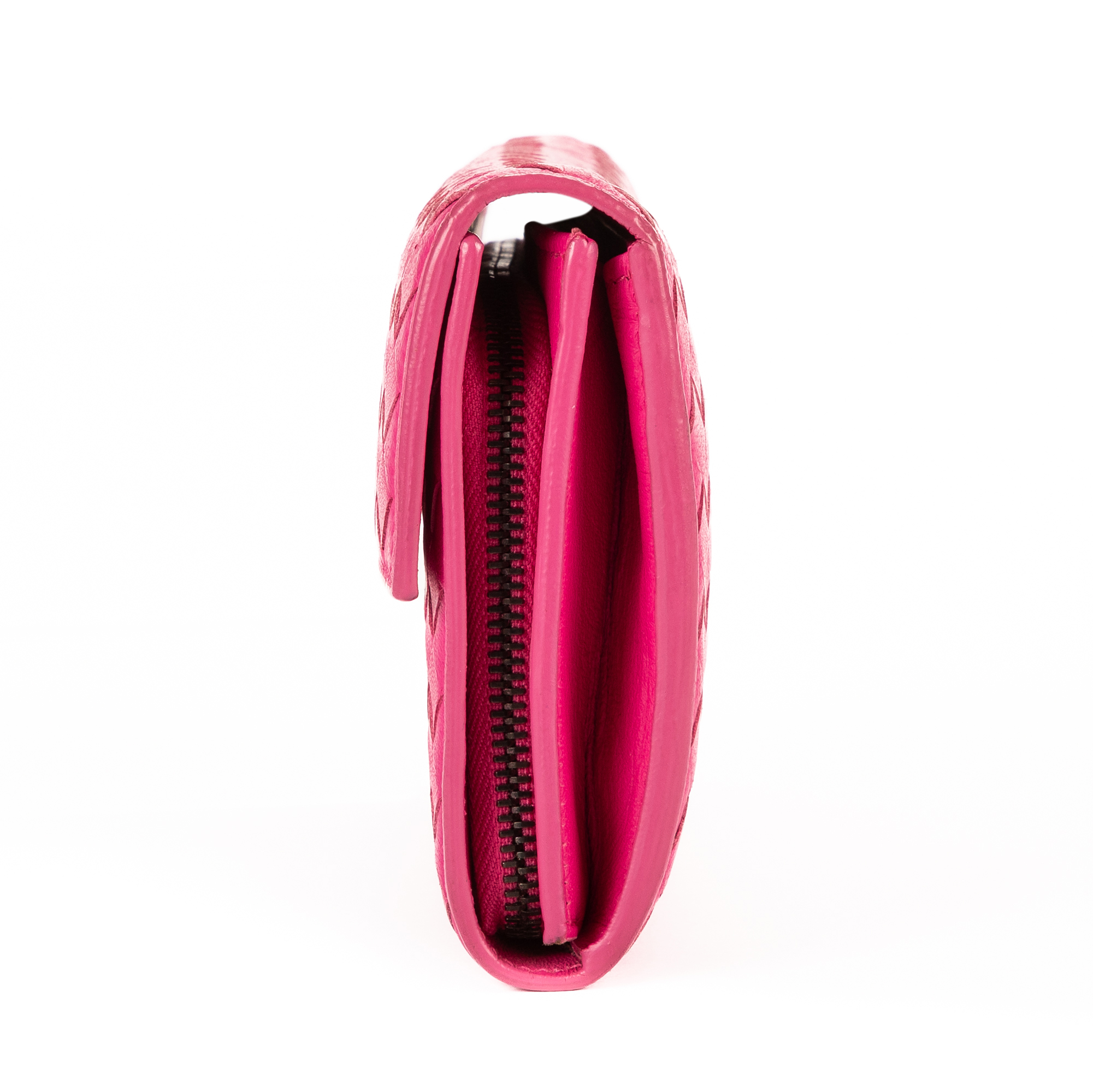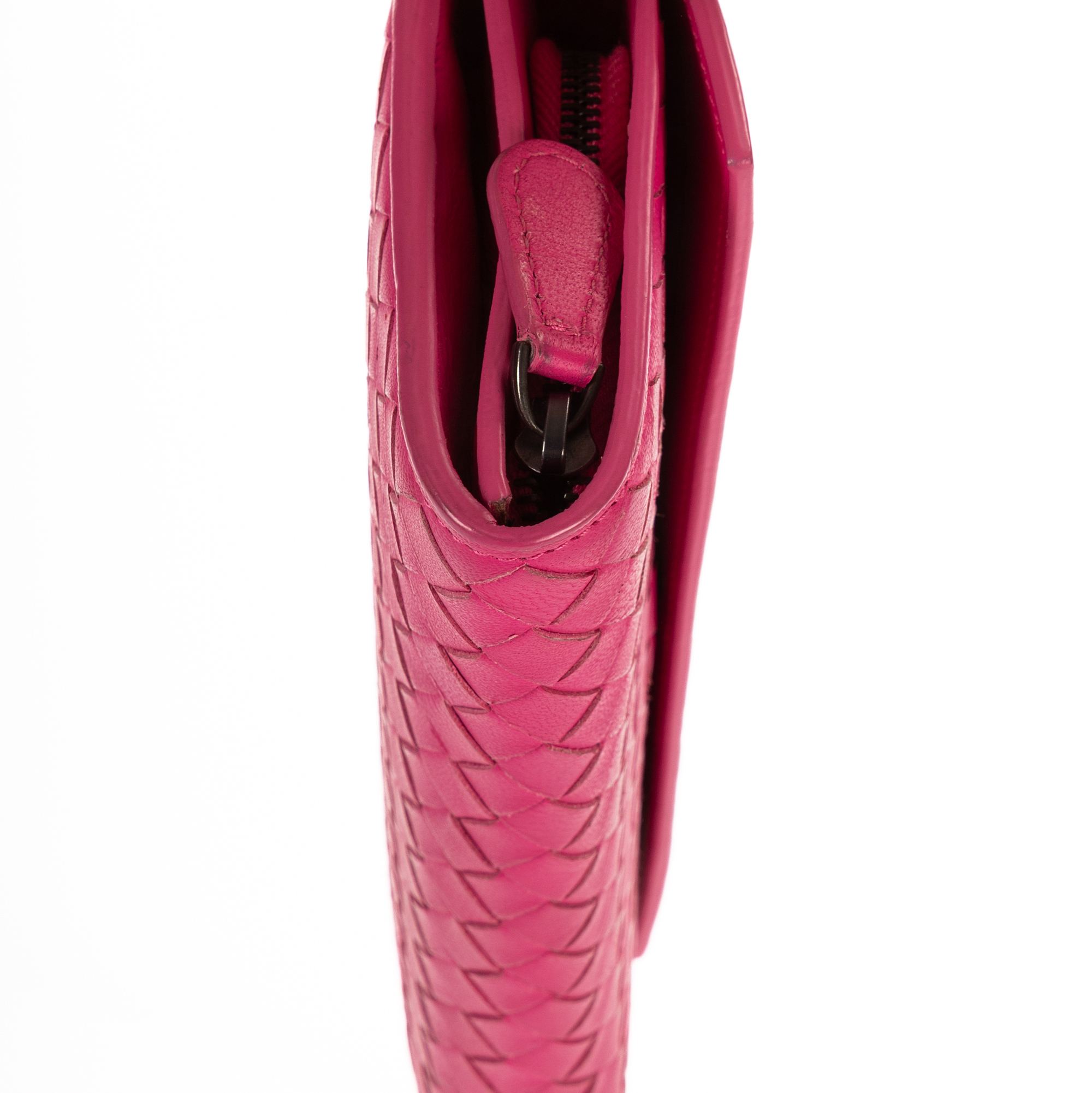 Bottega Veneta Portefeuille Flap Over Continental Long Wallet en Rose et Black Metal. Le produit est en Parfait état (AA).