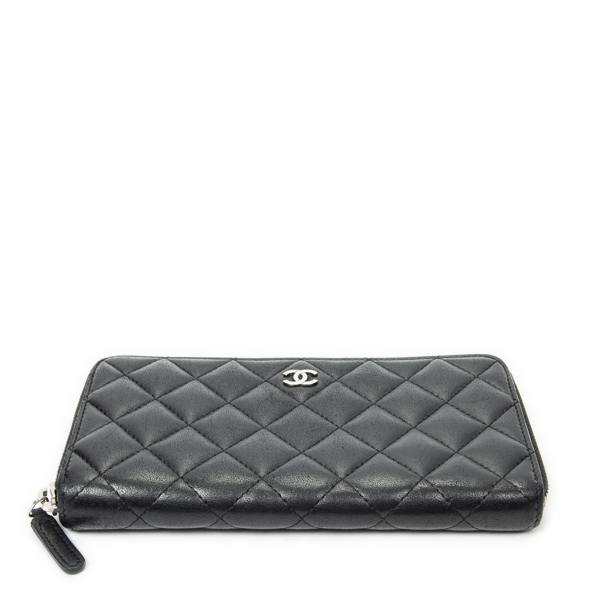 Chanel Portefeuille Classic Zip Around Wallet en noir et argent. Le produit est en Très Bon état (AB).