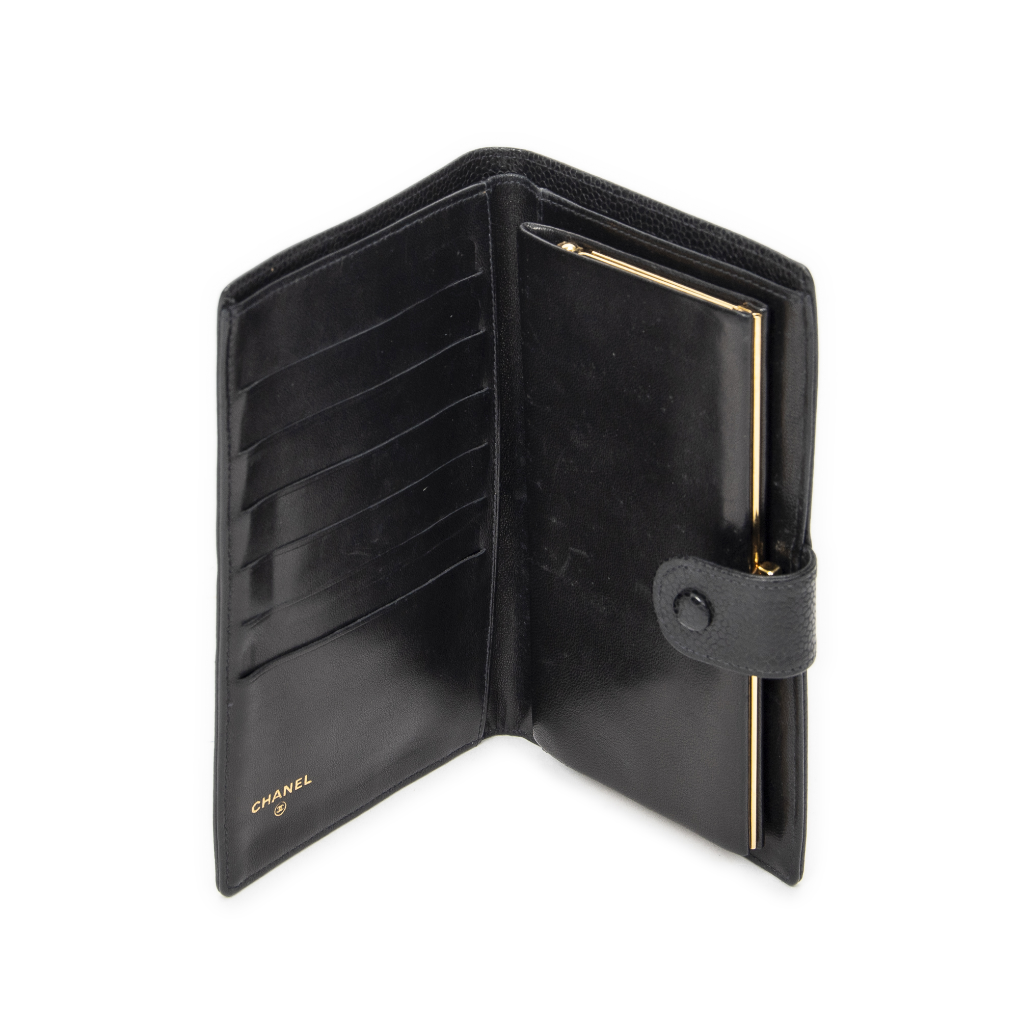 Chanel Portefeuille Timeless Long Bifold Wallet en Black et Gold. Le produit est en Très Bon état (AB).