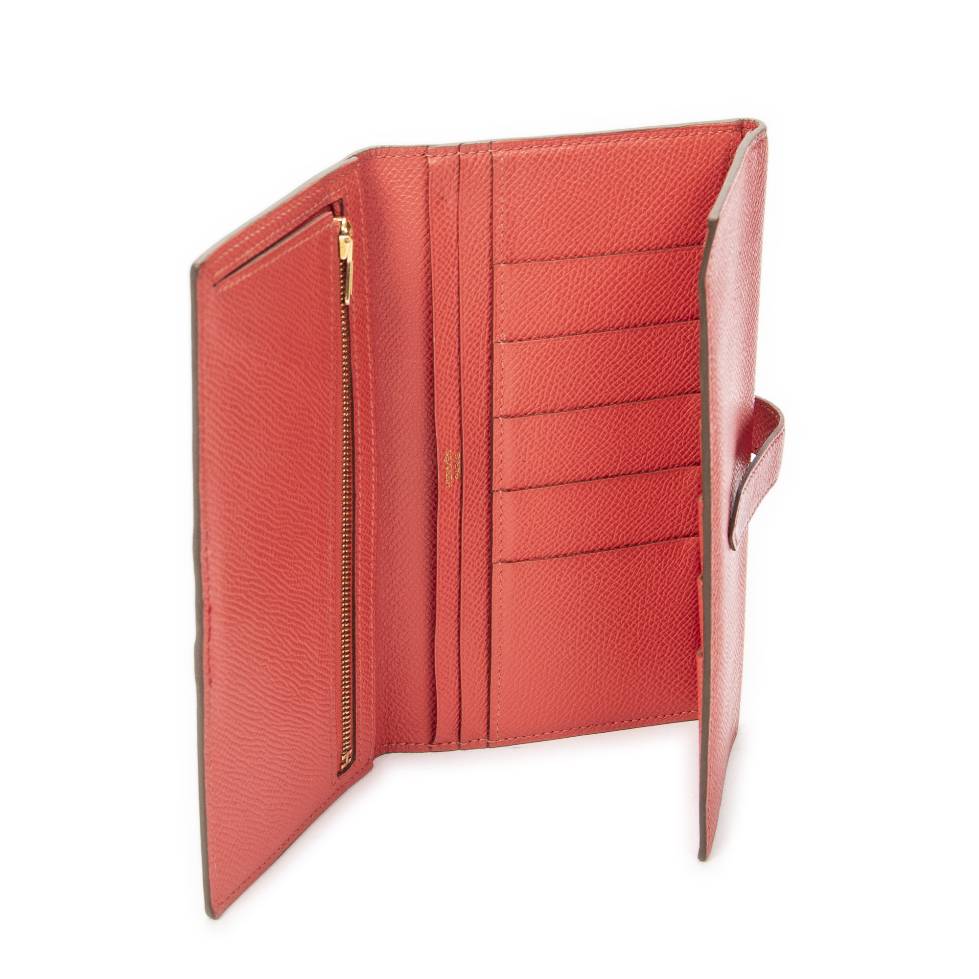 Hermès Portefeuille Bearn Wallet en Rouge et Gold. Le produit est en Excellent état (A).