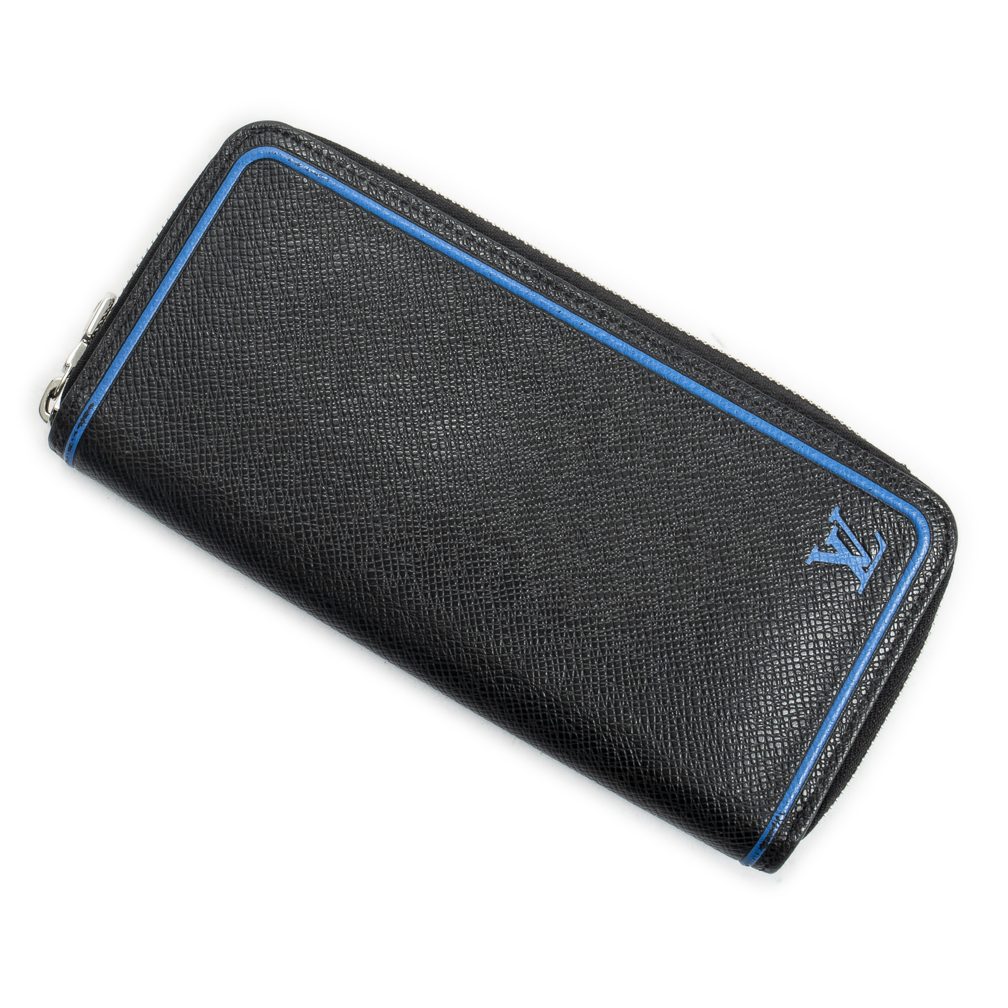 Louis Vuitton Portefeuille Zippy Wallet Vertical  en  Noir/Bleu et Argent. Le produit est en Excellent état (A).